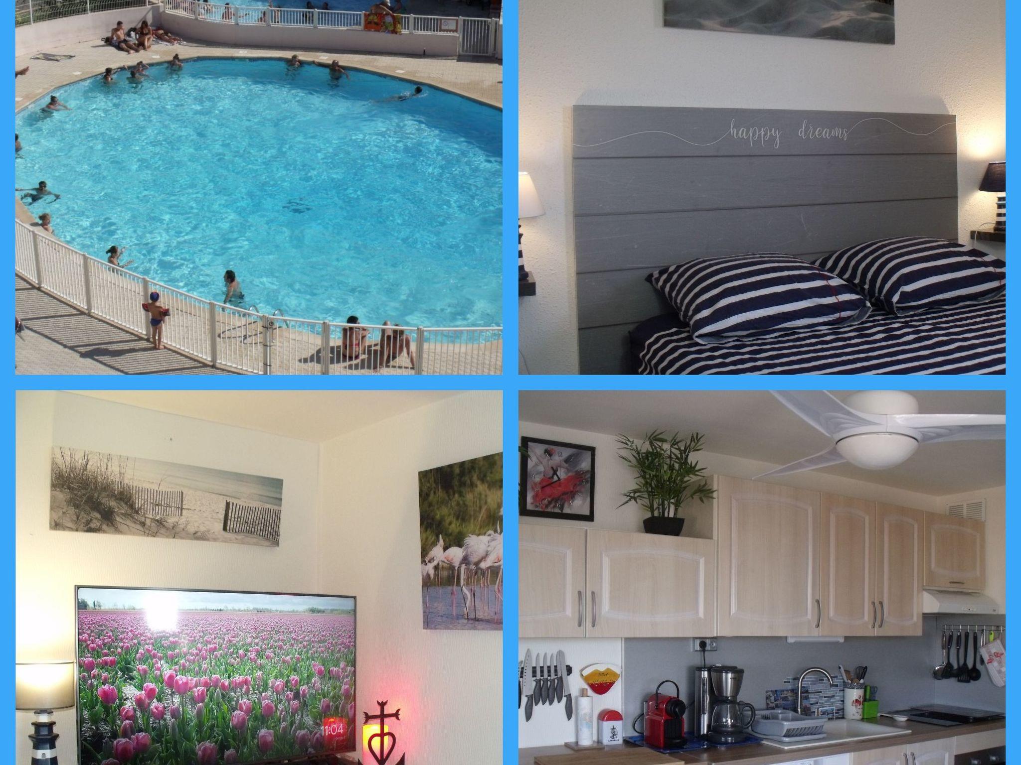 Our two-room flat (bedroom + kitchen) of 40 square meters is very comfortable. It has everything you need to feel at home. We have a 3 star rating and in general we are very quiet. The surface area is 40 square metres and we are only 300 metres from the sea and its beautiful sandy beaches. There are no neighbours and the wifi is totally free from June to September. There are two swimming pools, one for adults and one for young children. The residence has a lift. Your comfort: - Bedroom with double bed + flat screen TV + Dressing room, large ceiling fan, window to the outside with shutters. The living room has a sofa convertible into a very comfortable double bed, flat screen TV, radio, wardrobe, table, chairs, large ceiling fan, window to the outside and shutters. And for more comfort: very well equipped kitchen with ceramic hob, American fridge with freezer, microwave, Nespresso and filter coffee machine, toaster, juicer, kettle, classic oven and pizza oven, crockery and kitchenware for 4 people, balcony for 4 people with round table, TV, blinds and sun until sunset, bathroom with shower, hairdryer and radio, separate toilet for daily comfort, washing machine, iron and ironing board. We are sure you will enjoy your stay in our flat. Close to the residence you will find shops and entertainment options for the whole family. Grau du Roi is much more than miles of sandy beaches, it is also leisure time for the whole family and a beautiful landscape of our great city.