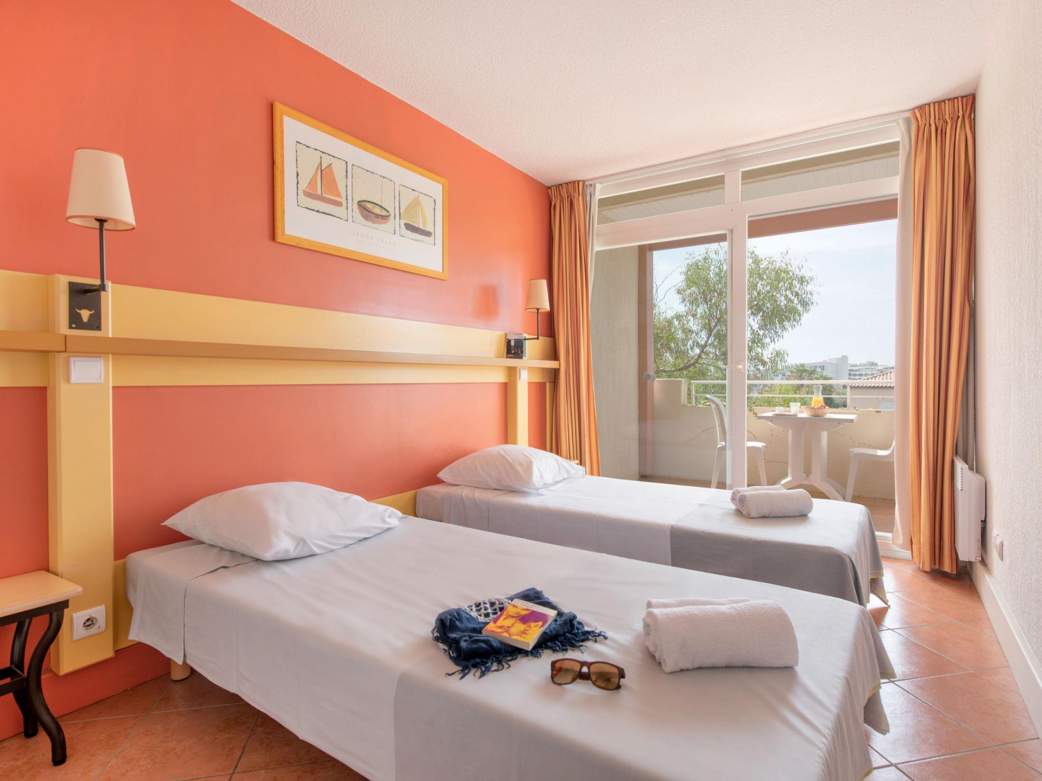 Holiday village "Sowell Résidence Les Sablons". 57 apartments in the residence. 3.5 km from the centre of Grau du Roi, 4 km from the centre of La Grande Motte, 9 km from the centre of Aigues Mortes, in the heart of the city, 50 m from the sea, 50 m from the beach, direct access to the beach. For shared use: well-kept garden 3 ha, swimming pool heated (100 m2, seasonal availability: 01.Jun. - 31.Sep.) with internal staircase. Children's pool, tennis (2 x hard court), table tennis, boccia, children's playground. In the complex: reception, bar, WiFi, solarium, washing machine, tumble dryer (extra). Breakfast and half board possible (extra). Parking. Grocery 2 km, bakery 2 km, bicycle rental 800 m, bus stop 150 m, railway station "Gare du Grau-du-Roi" 5 km, thermal baths "La Grande Motte" 2.5 km. Sports harbour 4 km, golf course (18 hole) 4 km, sailing school 800 m, riding stable 10 km. Nearby attractions: Parc Aquatique 2 km, Montpellier 28 km, Arles / Nîmes 50 km, Les Saintes Maries de la Mer 70 km, Uzès 80 km, Béziers 90 km. Please note: the photograph shows a typical example. The holiday properties may differ in living space, floorplan, equipment and furnishing.