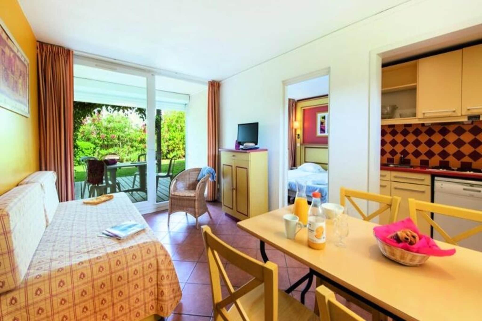 Beliggende ved havnefronten tilbyder dette feriehus en afslappende ferie i 2- eller 3-etagers komplekser, omgivet af en anlagt have med middelhavsplanter. Hver lejlighed har en stue med sovesofa eller udtræksseng, to soveværelser med enkeltsenge, et badeværelse med bruser, separat toilet og en privat terrasse eller balkon. Ejendommen er kæledyrsvenlig og tillader ét kæledyr pr. bolig. Der er gratis trådløs internetadgang overalt, og der tilbydes parkering ved indgangen med adgang for bevægelseshæmmede. Ejendommen er ideelt beliggende med direkte adgang til stranden, så gæsterne kan nyde vandaktiviteter. Du kan også udforske butikker, caféer og tjenester kun 2 km væk. Faciliteterne på stedet omfatter en opvarmet swimmingpool, et solarium og et spil petanque. Placeringen tilbyder en perfekt balance mellem afslapning og eventyr. Inde i lejlighederne finder du et fuldt udstyret køkken til at tilberede måltider, et babysæt tilgængeligt på anmodning, og sengetøj og håndklæder inkluderet. Boligen tilbyder også slutrengøring. En pakket morgenmad er tilgængelig mod et ekstra gebyr, og den opvarmede pool er åben hele sæsonen. Ejendommen tilbyder specifikt udstyr til gæster med nedsat mobilitet.