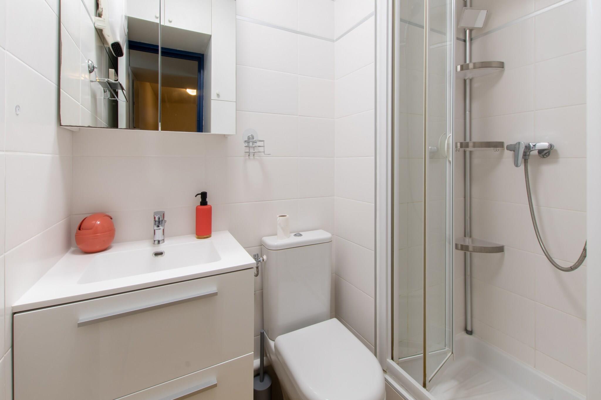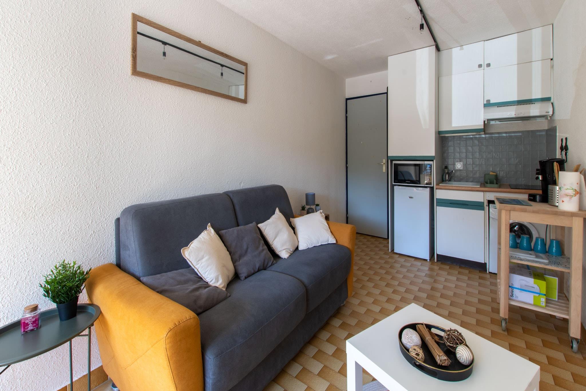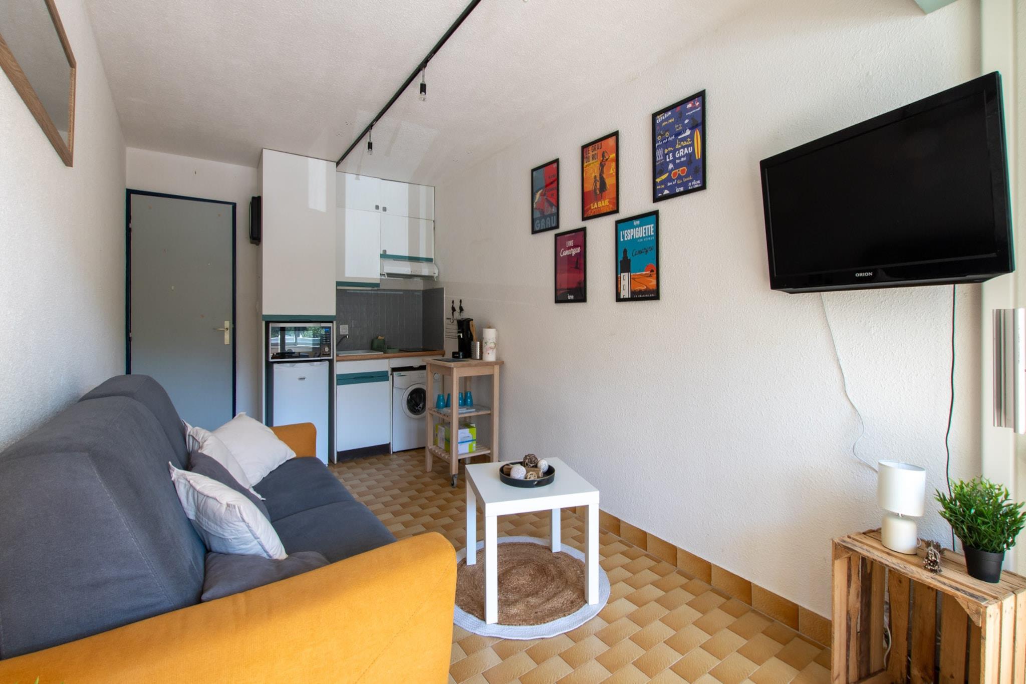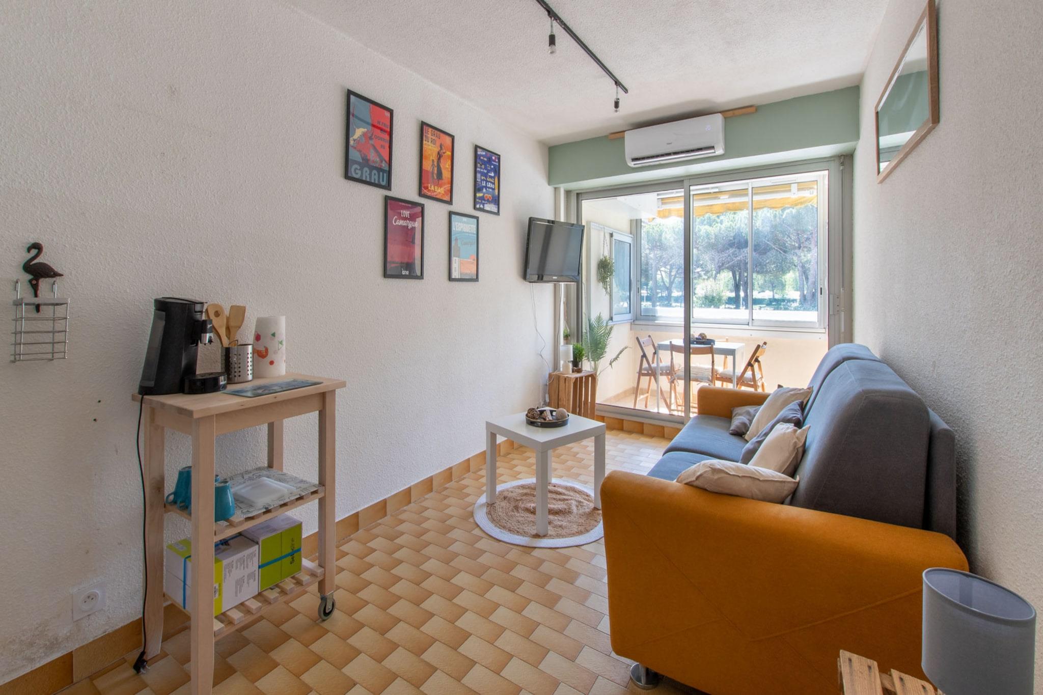 Kun få skridt fra Le Grau-du-Rois gyldne sand, tilbyder denne hyggelige 27 m² store studio et lyst og indbydende oase for op til 4 gæster. Beliggende i et familievenligt område, er det perfekt placeret med et supermarked og restaurant kun 20 meter væk, og stranden kun 100 meter fra din dør. Den åbne planløsning omfatter et komfortabelt opholdsrum med to dobbelte sovesofaer og et tv, ideel til at slappe af efter en dag i solen. Det veludstyrede køkken har en elektrisk kogeplade, køleskab, mikroovn, kaffemaskine, brødrister og kedel, alt hvad du behøver til nemme måltider derhjemme. Et moderne badeværelse med bruser og vaskemaskine tilføjer bekvemmelighed, mens elvarme og aircondition sikrer komfort året rundt. Udemøbler på den private terrasse indbyder til at nyde morgenkaffe eller aftendrinks i haven. Med udendørs parkering i samme bygning og alt det nødvendige inden for gåafstand, er dette studie en perfekt base for strandelskere og afslappede opdagelsesrejsende. Uanset om du er her for en weekendophold eller et længere ophold ved havet, tilbyder det enkelhed, charme og enestående beliggenhed.