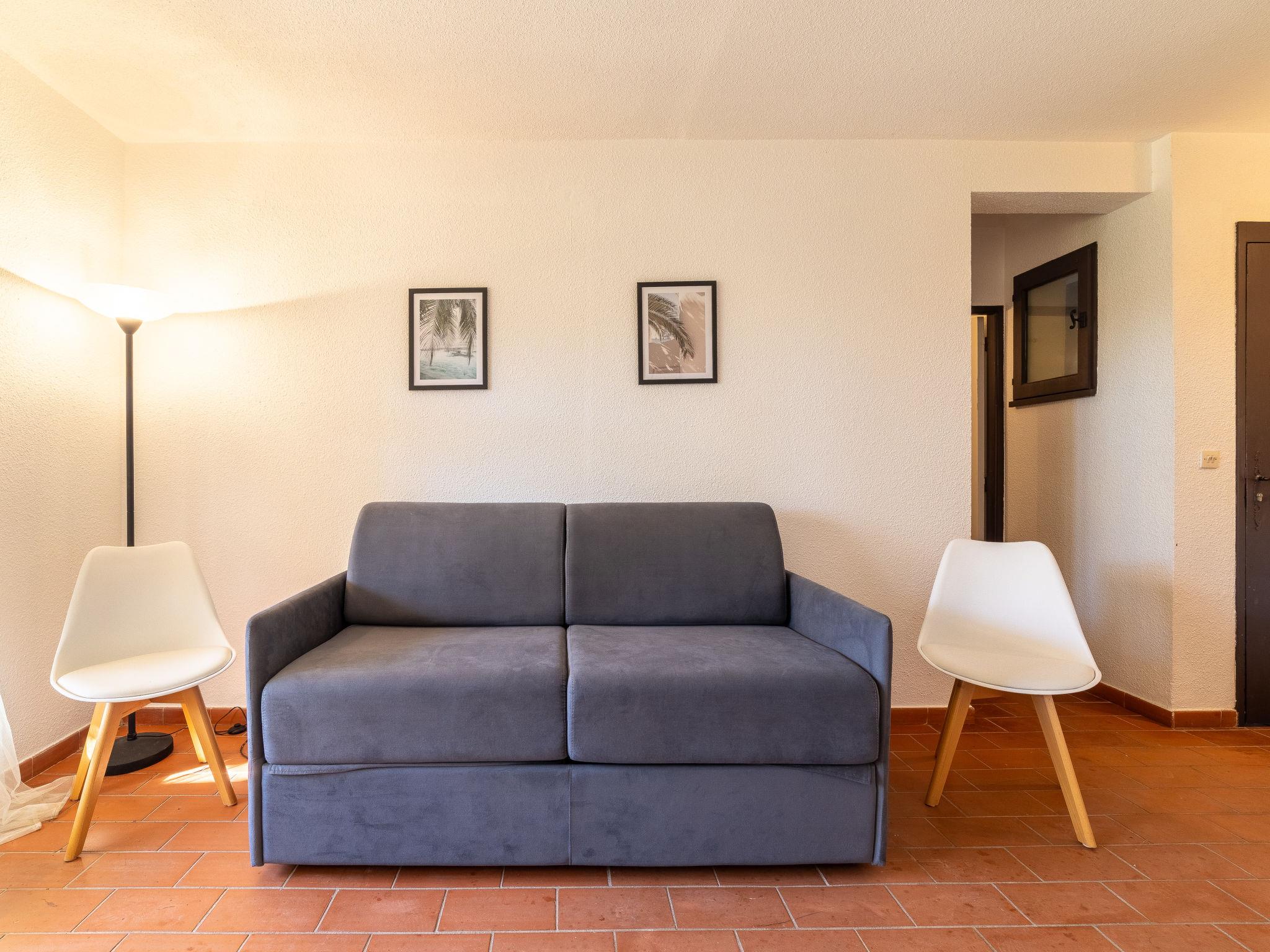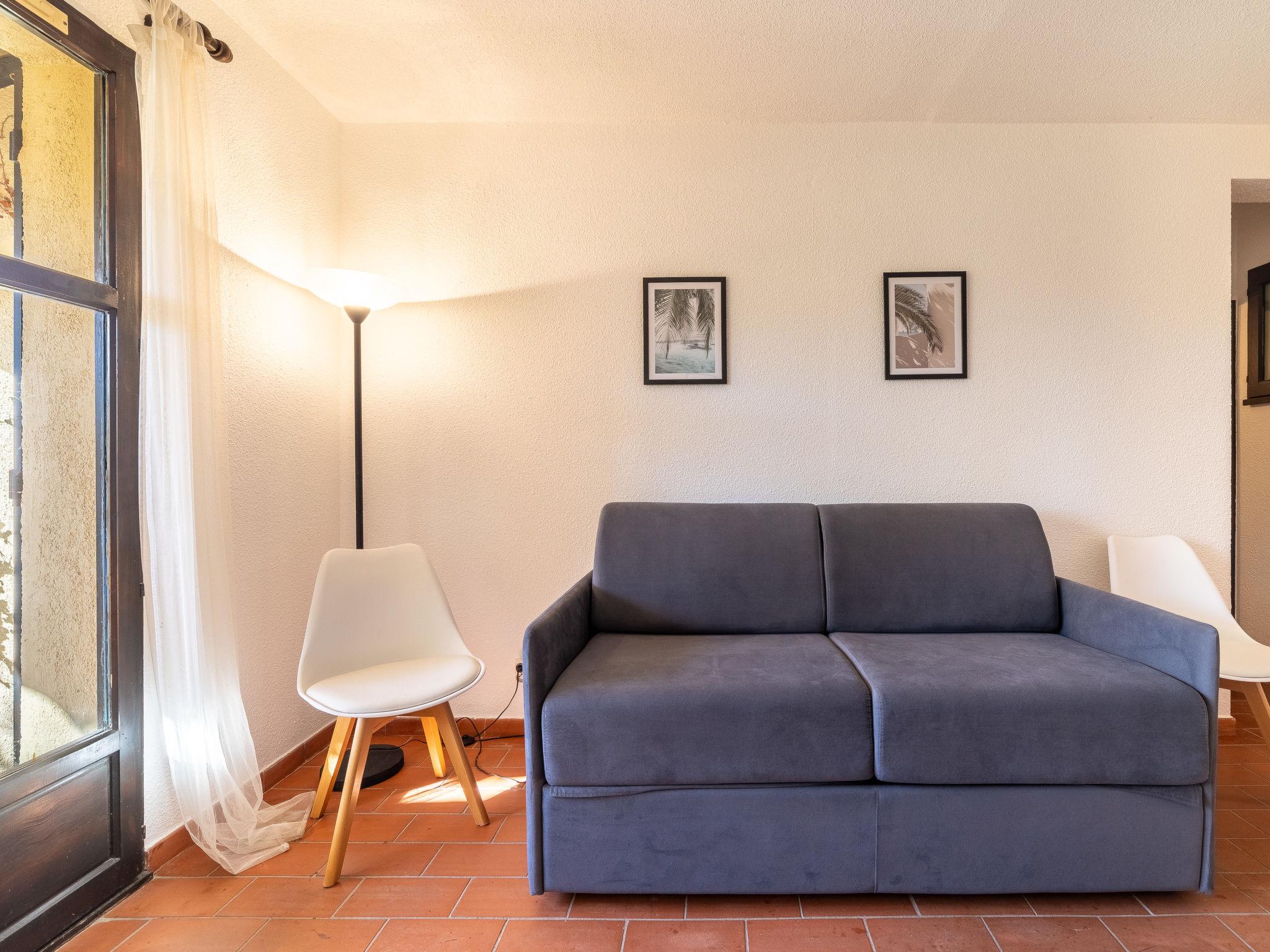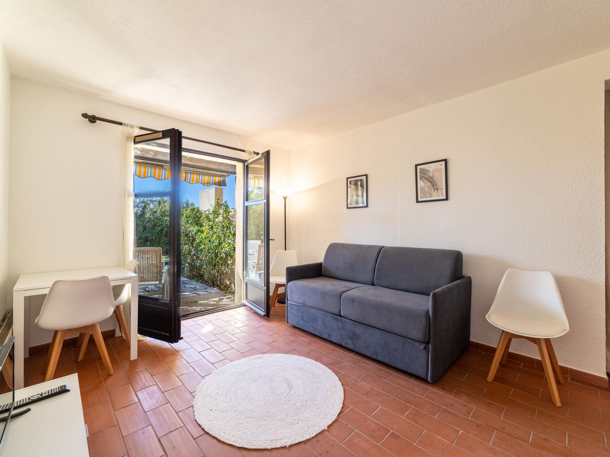 1-room studio 20 m2. Simple and beautiful furnishings: Studio with 1 double sofabed (140 cm, length 190 cm), TV (flat screen). Exit to the terrace, to the patio. Kitchenette (dishwasher, 2 ceramic glass hob hotplates, toaster, kettle, microwave, electric coffee machine). Bath/WC. Electric heating. Small terrace, patio. Terrace furniture. Facilities: iron, hair dryer. Internet (WiFi, extra). Parking. Please note: non-smokers only. TV only FR. Smoke alarm. 83070000767Z3