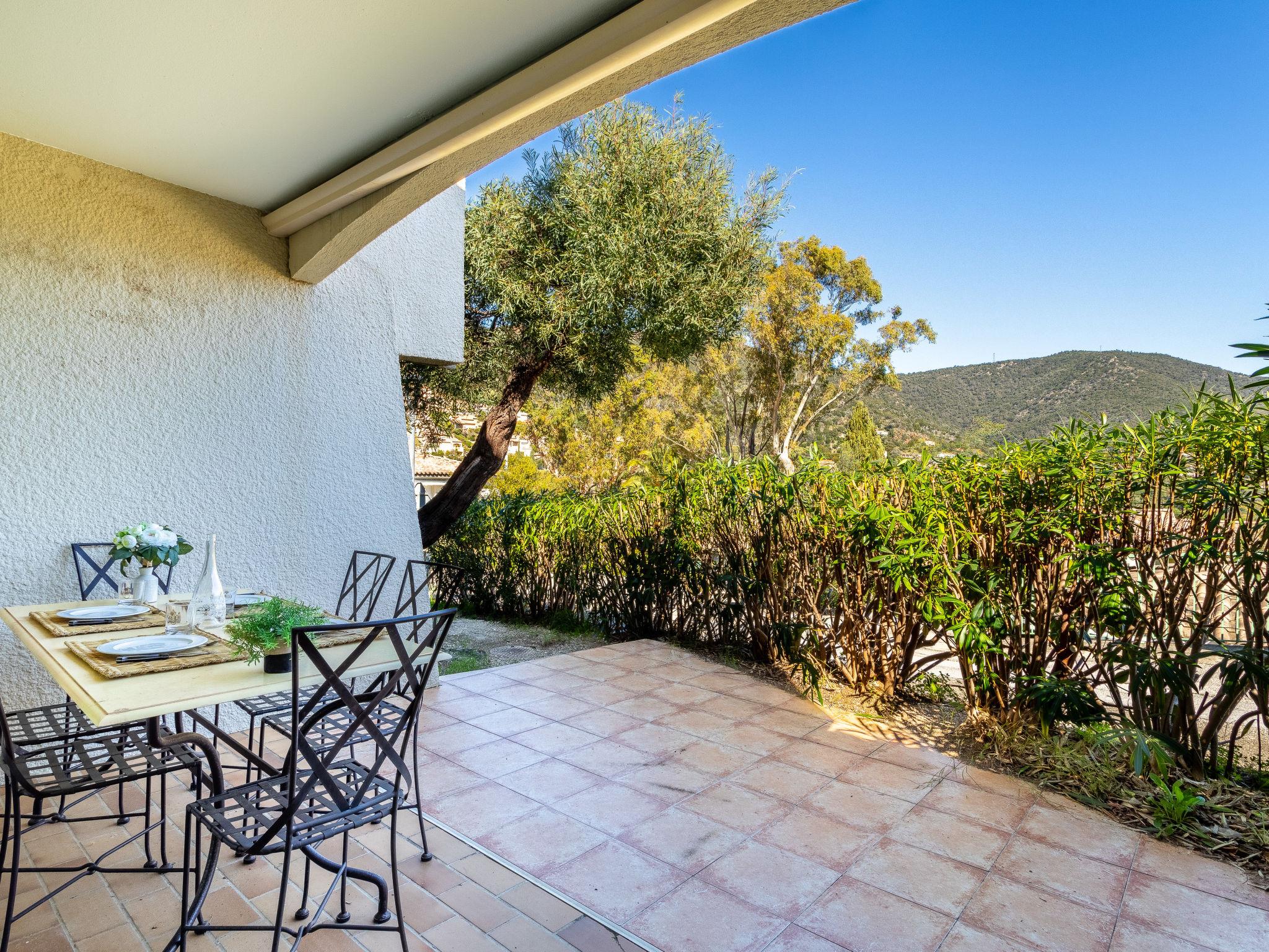 Pramousquier 8 km from Le lavandou: Beautiful, cosy, comfortable residence "Cap Négre: Domaine de la Pinède", terraced, surrounded by trees. 100 m from the sea, direct access to the beach. For shared use: well-kept garden (not fenced) with plants and flowers, swimming pool heated, with privacy, fenced (17 x 9 m, depth 55 - 260 cm, seasonal availability: 06.Apr. - 30.Oct.). Outdoor shower, boccia. In the complex: washing machine (for shared use, extra). Stepped path to the house. Parking. Grocery 2 km, supermarket 8 km, restaurant 500 m, bus stop "Lavandou Gare routière" 6 km, sandy beach "de Pramousquier" 100 m. Sports harbour 8 km. Please note: the keys‘ handover takes place by the agency -------- in Le Lavandou, 9 km. Additional accommodations can be booked.