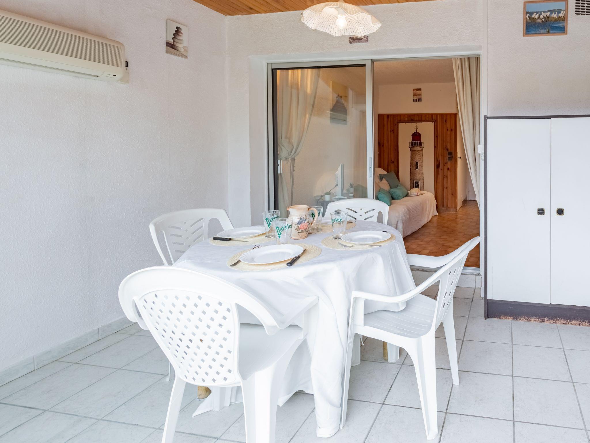 1-room studio 24 m2, on the ground floor. Object suitable for 2 adults + 2 children. Beautiful furnishings: living/dining room with panoramic window with 1 double sofabed (140 cm, length 190 cm), 1 x 2 bunk beds (90 cm, length 190 cm), TV (flat screen), air conditioning. Exit to the garden. Small kitchenette (2 ceramic glass hob hotplates, toaster, kettle, microwave, electric coffee machine, Capsules for coffee machine (Senseo) extra). Shower/WC. Electric heating. Small terrace. Terrace furniture. Facilities: hair dryer. Internet (WiFi, extra). Parking space n 134. Please note: non-smokers only. Smoke alarm. 83070001486VF