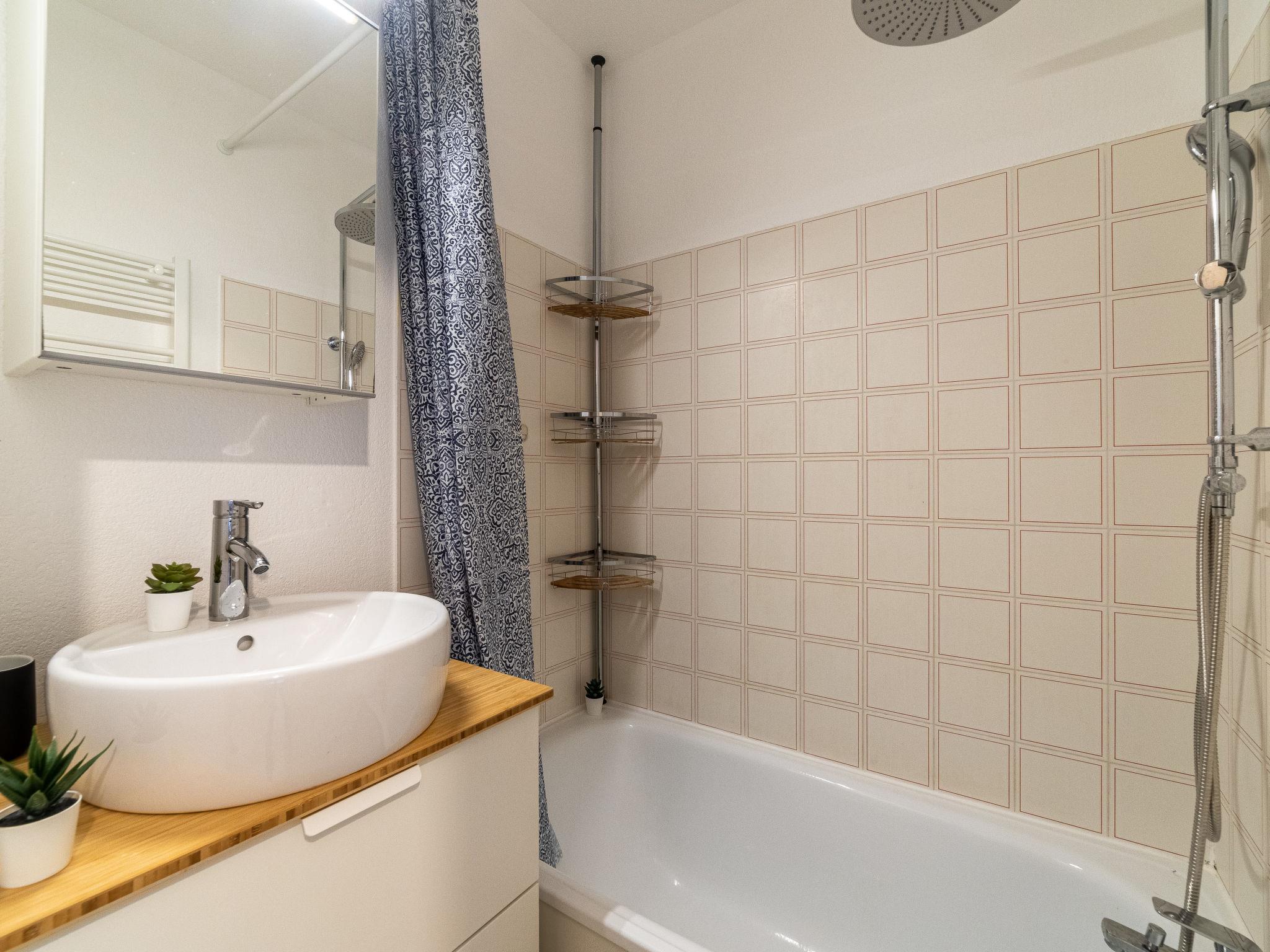 2-room apartment 27 m2 on 1st floor. Object suitable for 2 adults + 2 children. Living/dining room with 1 sofabed (140 cm, length 190 cm), TV (flat screen). 1 room with sliding door with 1 french bed (140 cm, length 190 cm). Kitchenette (2 hot plates, mini-oven, oven, 2 induction hot plates, toaster, kettle, microwave, electric coffee machine). Bathroom, sep. WC. Electric heating, air-conditioning. Balcony 8 m2, north-east facing position. Balcony furniture. Facilities: washing machine. Internet (WiFi, extra). Please note: apartment courtyard side. No parking. Maximum 1 pet/ dog allowed. TV only FR. Smoke alarm. Instead of an enclosed bedroom, some sleeping areas are located in an open-plan area (gallery, alcove, etc.). 83070000779SP