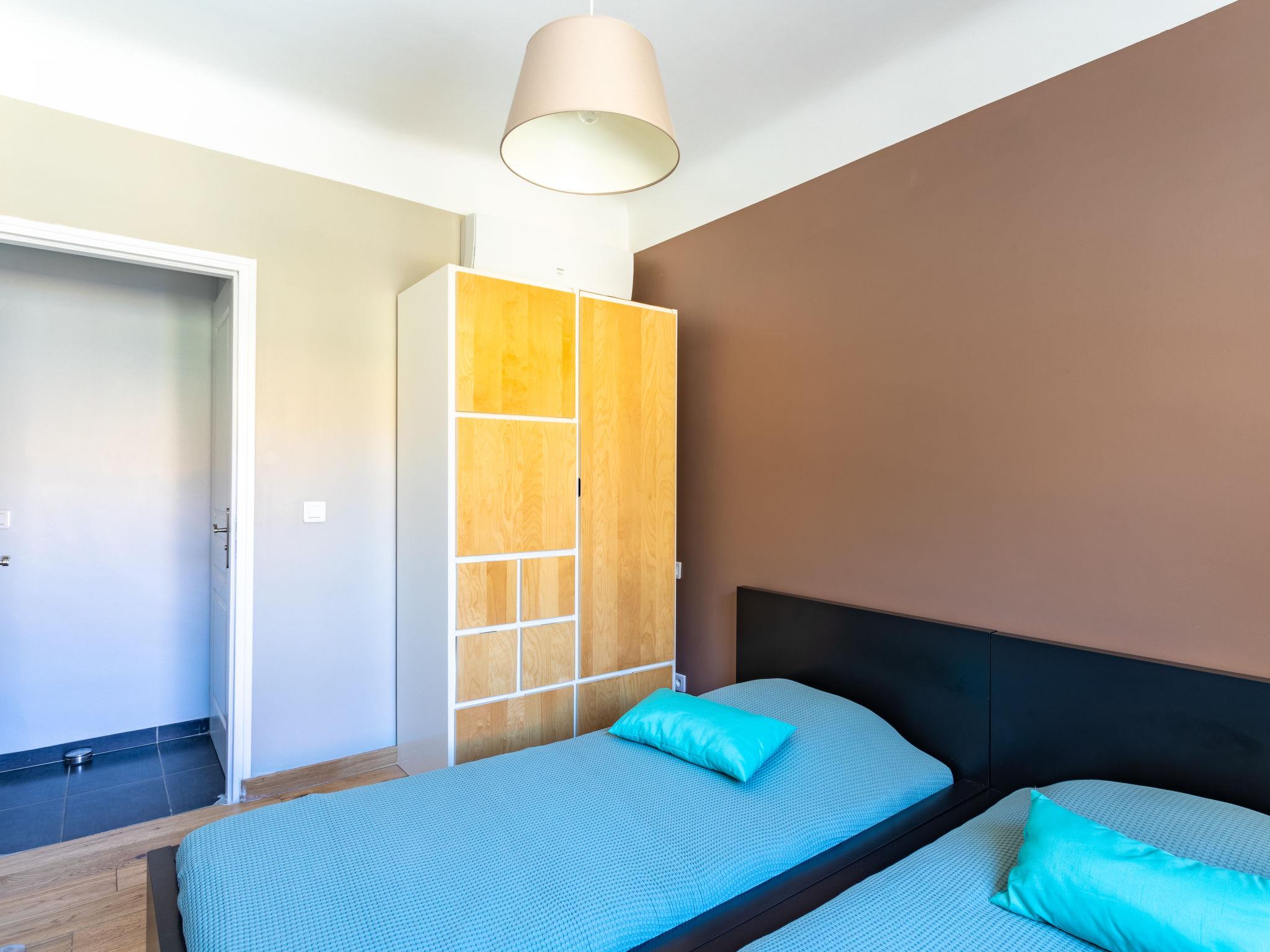 3-room apartment 54 m2 on 1st floor, south facing position. Comfortable and beautiful furnishings: living/dining room with flat screen, DVD and air conditioning. Exit to the balcony. 1 room with 1 french bed (160 cm, length 200 cm), air conditioning. 1 room with 2 beds (90 cm, length 200 cm), air conditioning. Small kitchen (oven, dishwasher, 2 induction hot plates, toaster, kettle, microwave, freezer, electric coffee machine). Exit to the balcony. Shower, sep. WC. Electric heating. Balcony 6 m2, small balcony 4 m2. Balcony furniture, electric barbecue. Facilities: washing machine, iron, hair dryer. Internet (WiFi, extra). Please note: non-smokers only. Maximum 1 small pet/ dog allowed. TV only FR. Accommodation classified 1 star by an approved organization. 83070002236TO