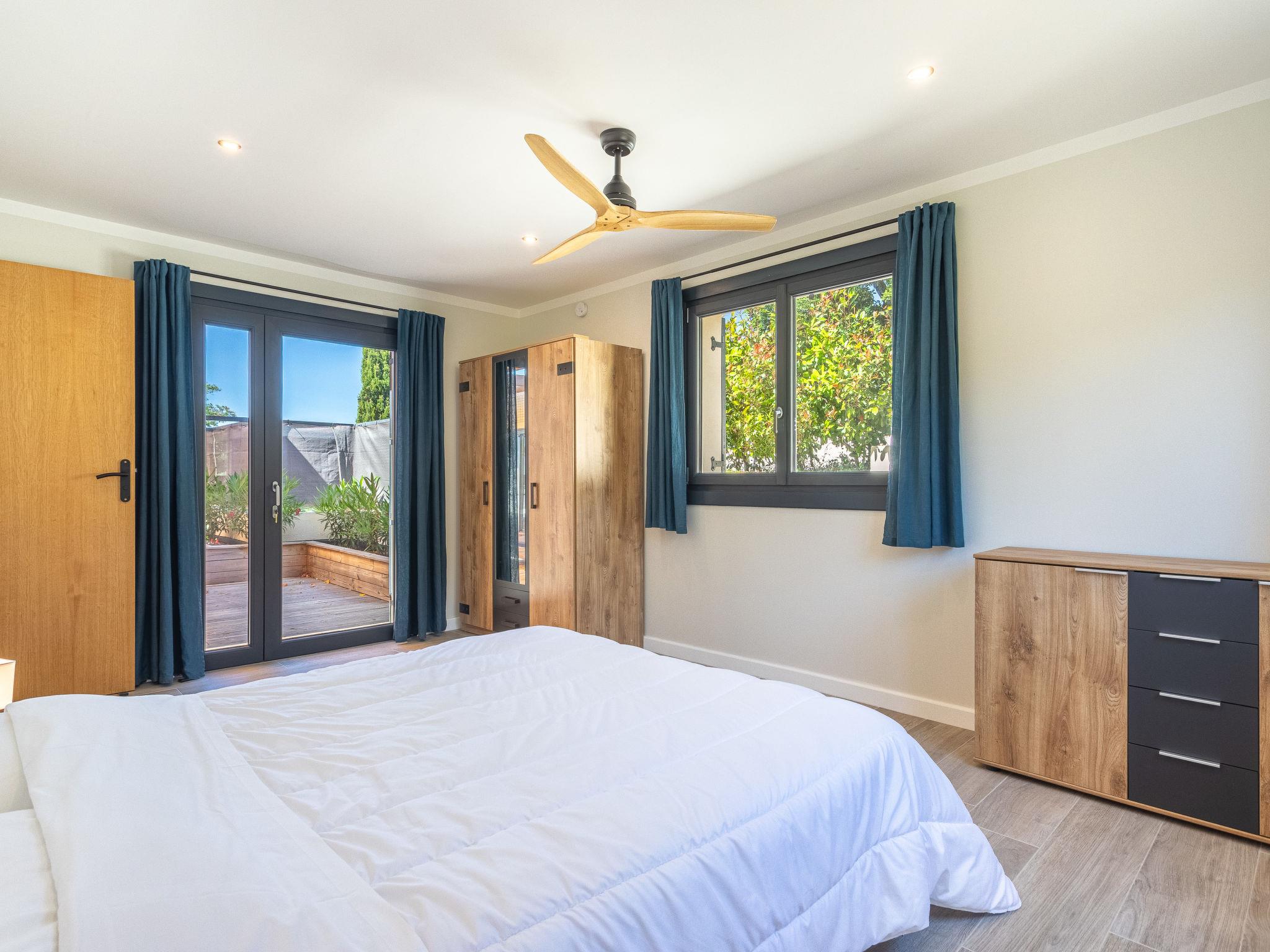 4-room semi-detached house 120 m2. Very comfortable furnishings: living/dining room with TV (flat screen), air conditioning and fan. Exit to the terrace. 1 room with 1 french bed (160 cm, length 200 cm), fan. Exit to the terrace. 1 room with 2 beds (90 cm, length 190 cm), fan. Office. Open kitchen (oven, dishwasher, Gas stove, 5 gas rings, toaster, kettle, microwave, freezer, electric coffee machine). Shower/WC, sep. WC. Electric heating. Large terrace 80 m2, south facing position. Terrace furniture. Facilities: washing machine, safe, iron, hair dryer. Internet (WiFi, free). Parking. Please note: suitable for families. Non-smoking house. TV only FR. Smoke alarm. Offer by a private individual according to Art. 155, IV of CGI. 83070002486TX