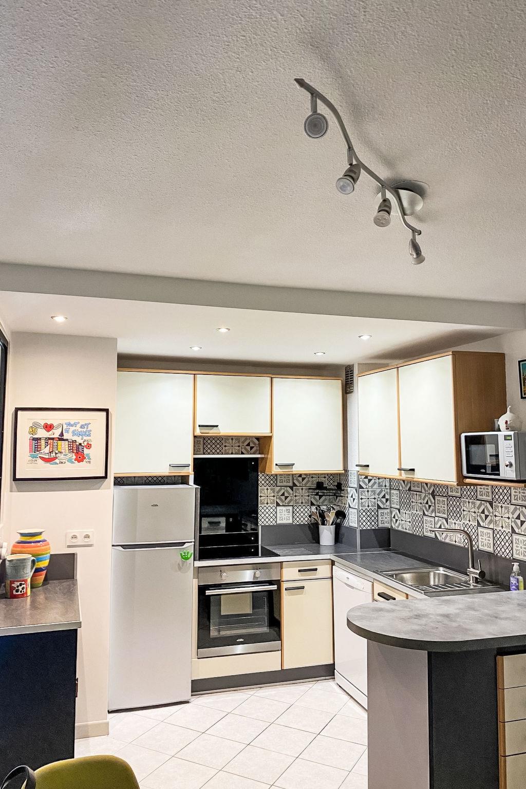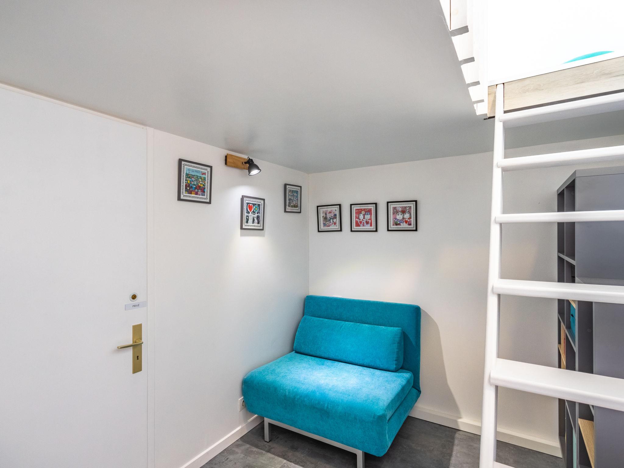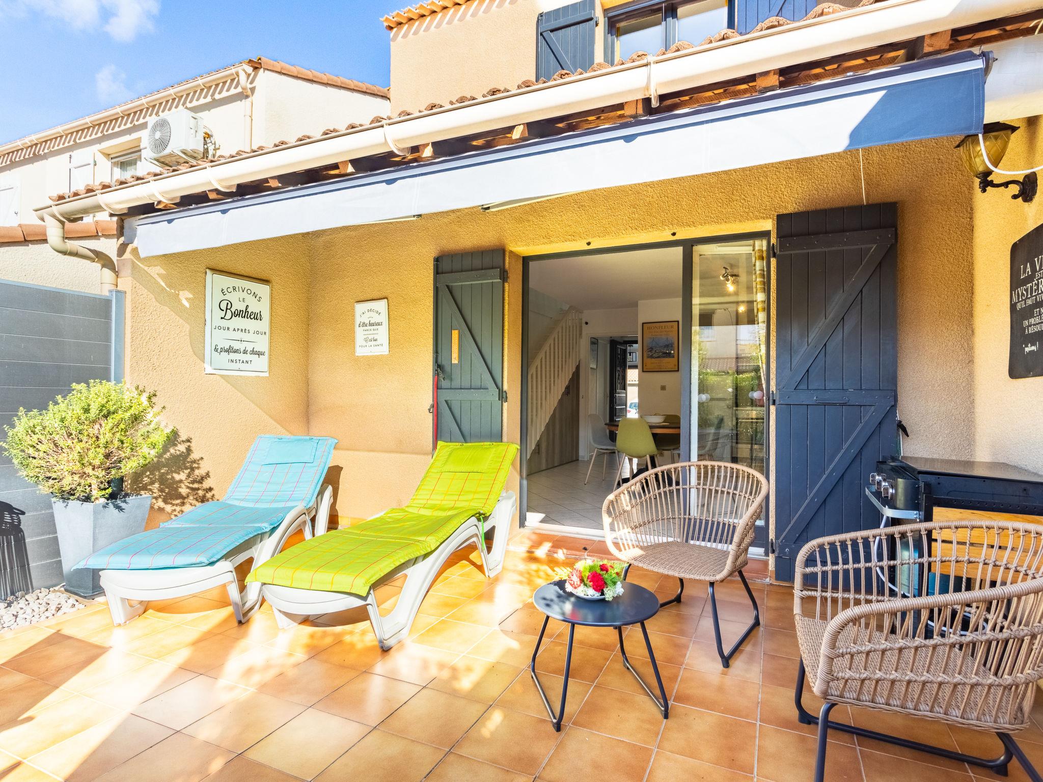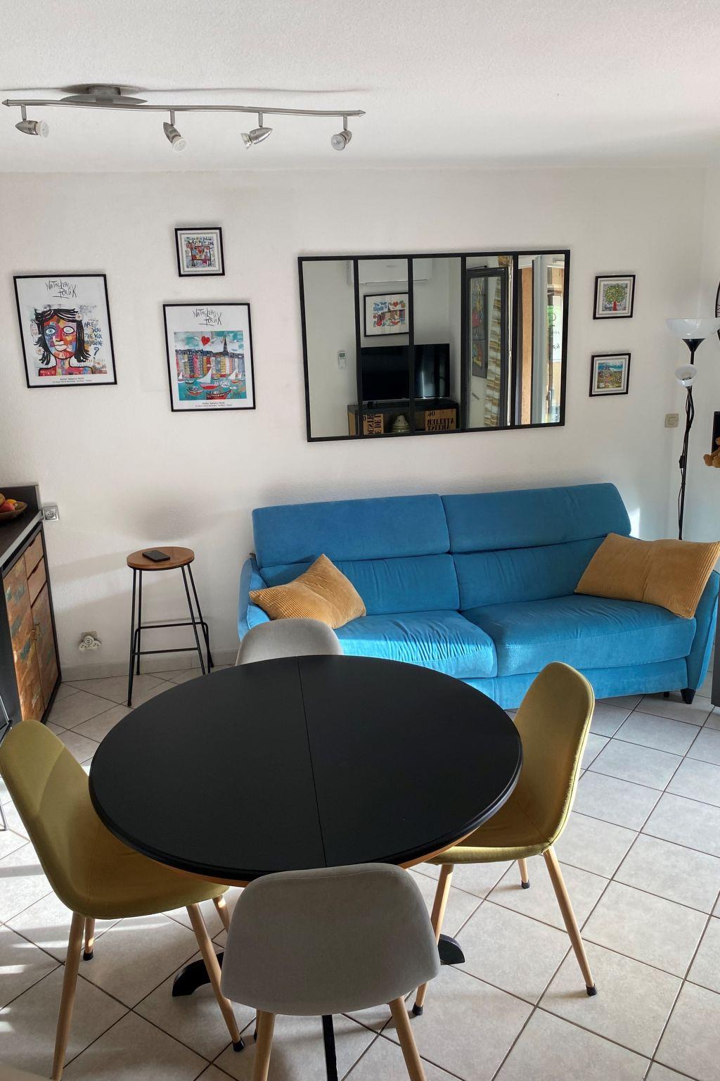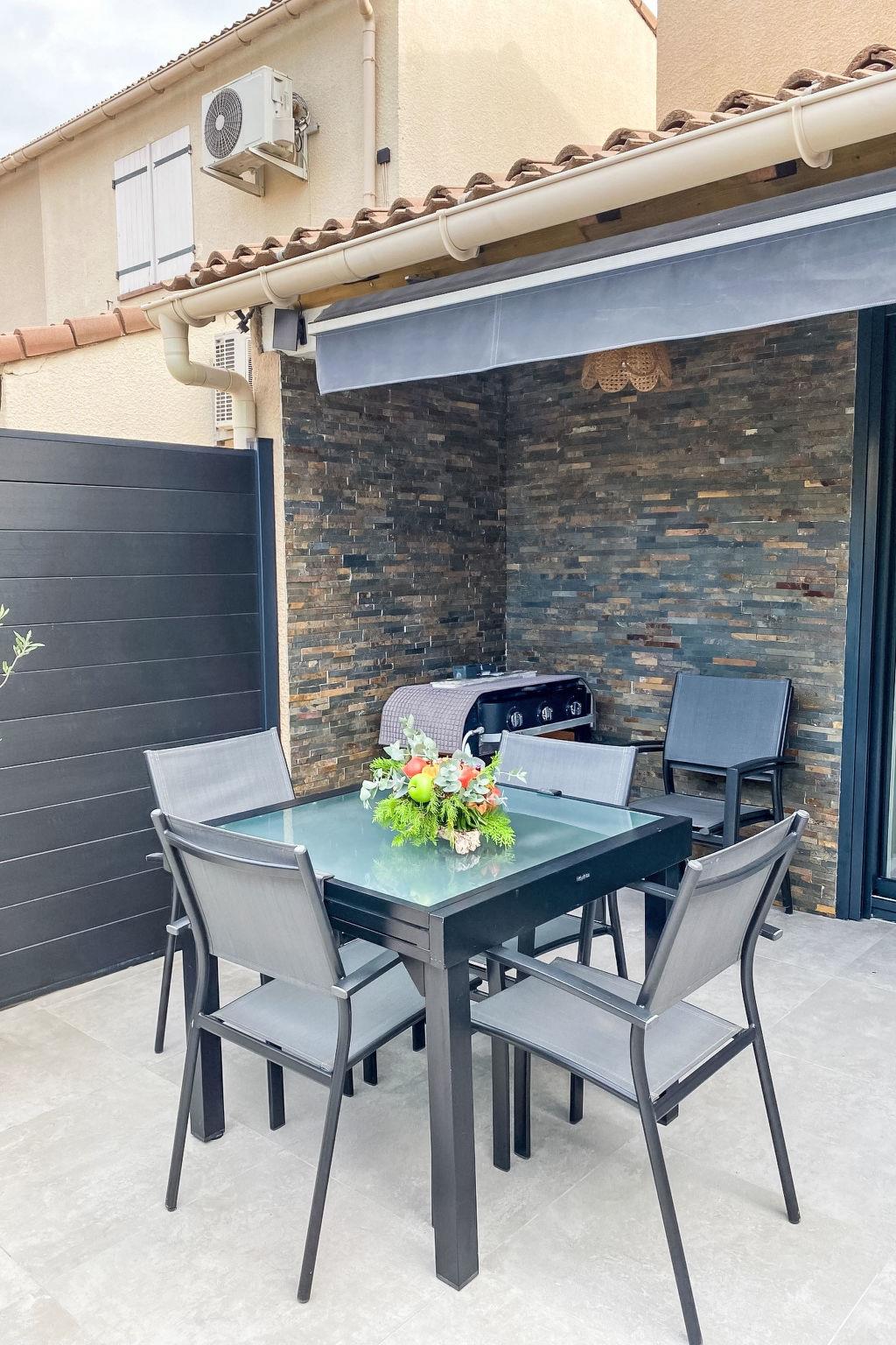3-room terraced house 55 m2 on 2 levels. Comfortable and beautiful furnishings: living/dining room with TV (flat screen), air conditioning. Open kitchen (oven, dishwasher, 4 induction hot plates, toaster, kettle, microwave, electric coffee machine). Sep. WC. Electric heating. Upper floor: 1 room with 1 french bed (160 cm, length 200 cm), TV (flat screen), air conditioning. Open gallery with sloping ceilings with rooflight with 1 french bed (140 cm, length 190 cm), air conditioning. Shower/WC. Terrace 30 m2. Terrace furniture, barbecue, deck chairs (4). Facilities: washing machine, iron. Internet (WiFi, extra). Parking at the house. Please note: non-smoking house. TV only FR. Smoke alarm. Instead of an enclosed bedroom, some sleeping areas are located in an open-plan area (gallery, alcove, etc.). 83070 000994 74