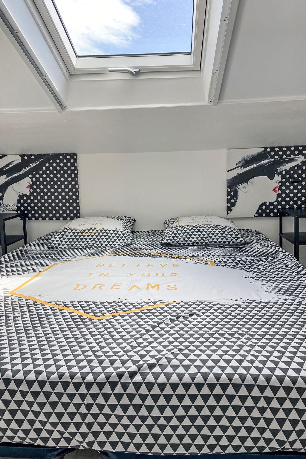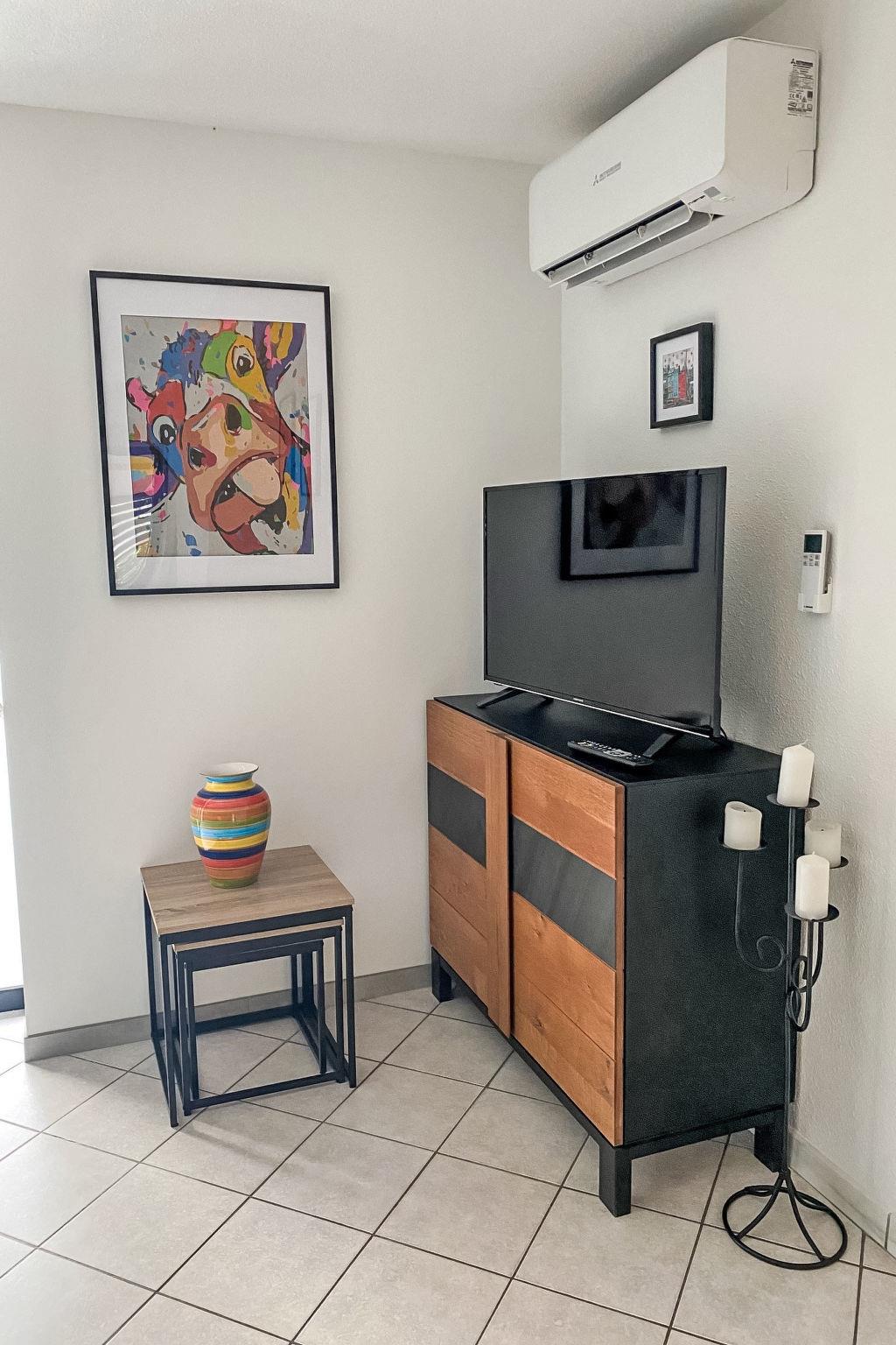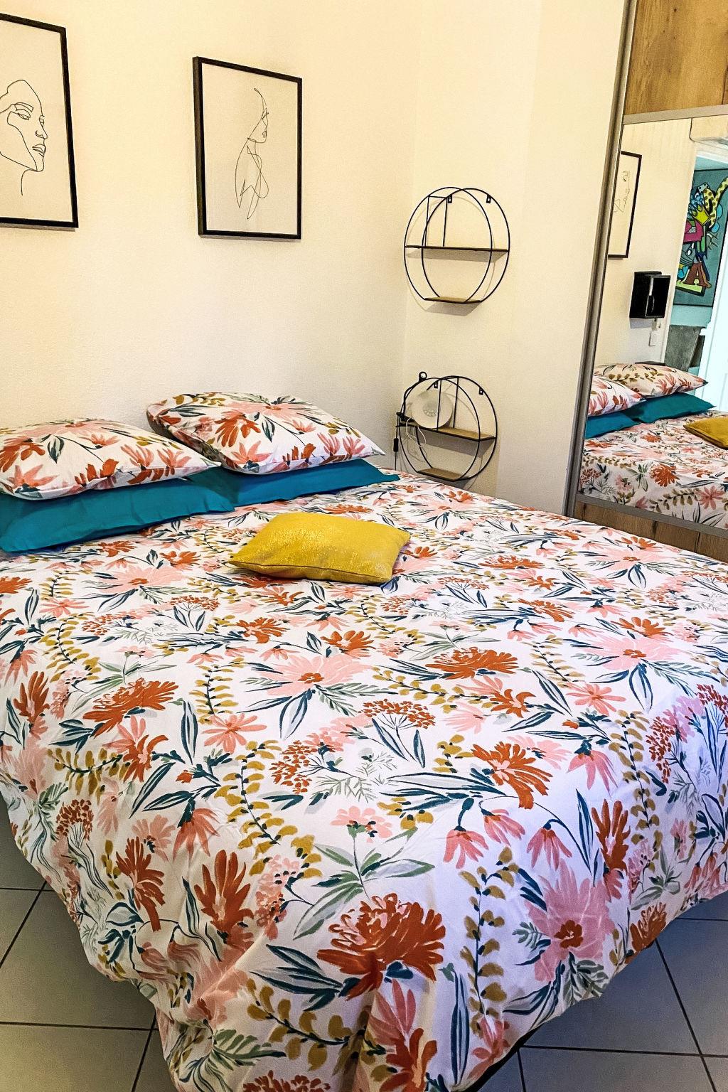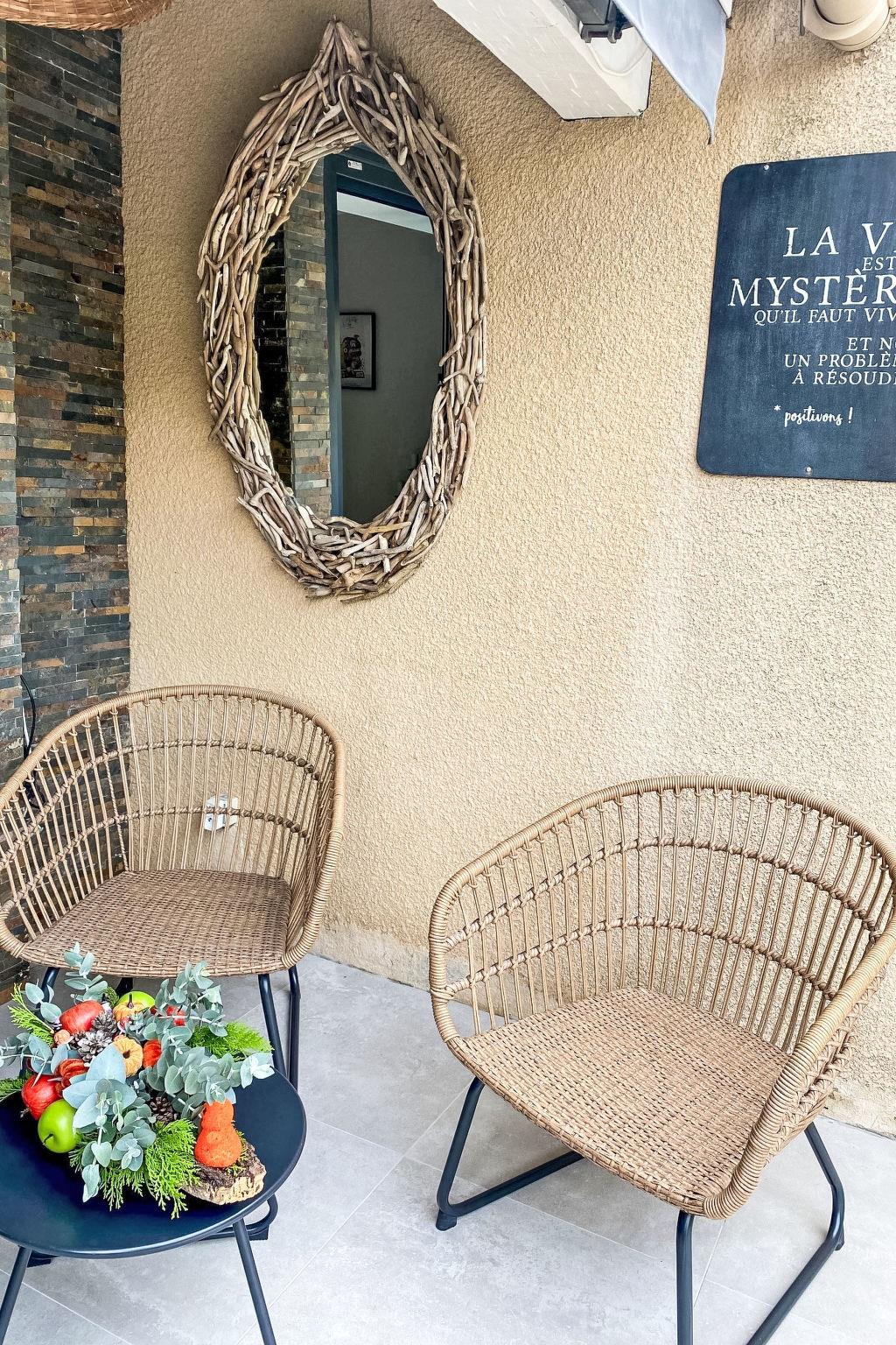 3-room terraced house 55 m2 on 2 levels. Comfortable and beautiful furnishings: living/dining room with TV (flat screen), air conditioning. Open kitchen (oven, dishwasher, 4 induction hot plates, toaster, kettle, microwave, electric coffee machine). Sep. WC. Electric heating. Upper floor: 1 room with 1 french bed (160 cm, length 200 cm), TV (flat screen), air conditioning. Open gallery with sloping ceilings with rooflight with 1 french bed (140 cm, length 190 cm), air conditioning. Shower/WC. Terrace 30 m2. Terrace furniture, barbecue, deck chairs (4). Facilities: washing machine, iron. Internet (WiFi, extra). Parking at the house. Please note: non-smoking house. TV only FR. Smoke alarm. Instead of an enclosed bedroom, some sleeping areas are located in an open-plan area (gallery, alcove, etc.). 83070 000994 74