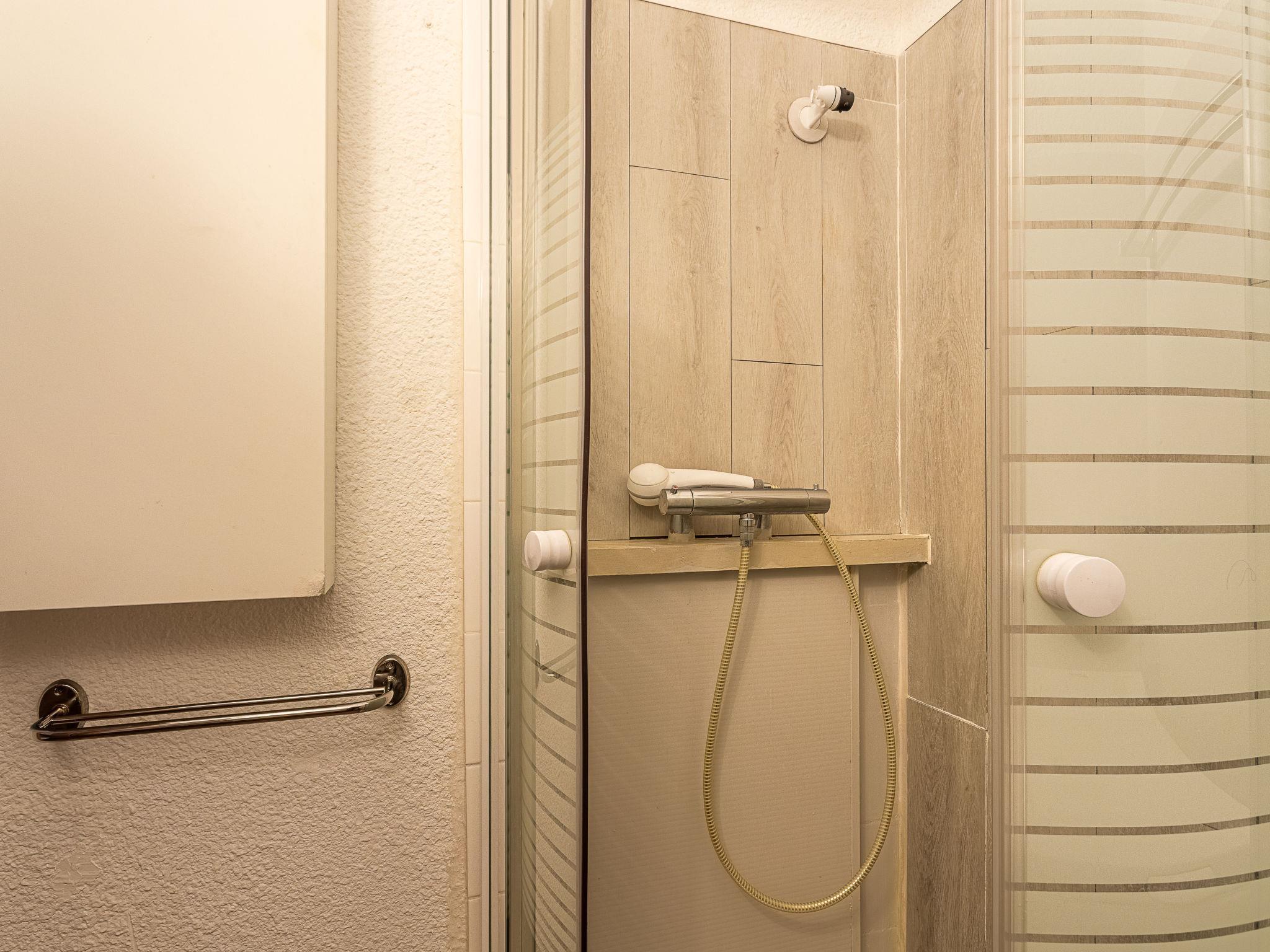 1-room studio 21 m2, on the ground floor, south facing position. Comfortable furnishings: living/dining room with 1 double fold-away bed (140 cm, length 190 cm), TV (flat screen). Exit to the terrace. Sleeping alcove with 1 x 2 bunk beds (80 cm, length 190 cm). Kitchenette (2 ceramic glass hob hotplates, toaster, kettle, electric coffee machine, Capsules for coffee machine (Nespresso) extra, combination microwave). Shower, sep. WC. Electric heating, air-conditioning. Small terrace 6 m2, south facing position. Terrace furniture. View of the countryside. Facilities: washing machine, iron, hair dryer. Internet (WiFi, extra). Please note: non-smokers only. Maximum 1 pet/ dog allowed. TV only FR. Smoke alarm. Offer by a private individual according to Art. 155, IV of CGI. 83070003116MA