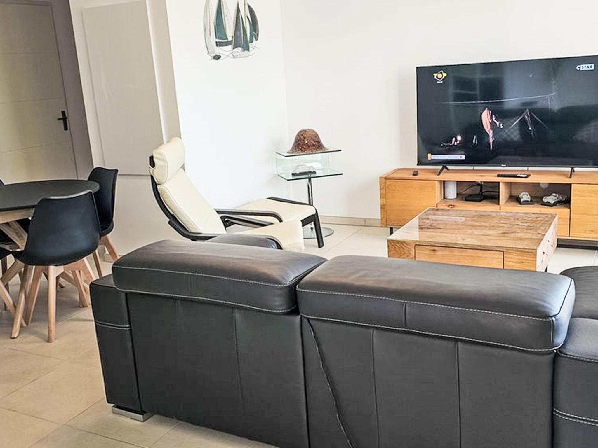 "Classé 4 étoiles", 3-room apartment 60 m2, on the ground floor, west facing position. Spacious, very comfortable furnishings: living/dining room with dining table, TV and international TV channels (flat screen). Exit to the terrace. 1 room with 1 french bed (2 x 80 cm, length 200 cm), TV (flat screen). 1 room with 1 french bed (160 cm, length 200 cm), TV (flat screen). Open kitchen (oven, dishwasher, 3 induction hot plates, toaster, kettle, microwave, freezer, electric coffee machine). Shower, sep. WC. Electric heating, air-conditioning. Terrace 12 m2, garden 30 m2, south facing position and west facing position. Terrace furniture. View of the resort. Facilities: washing machine, dryer, iron, hair dryer. Internet (WiFi, free). Parking space n 08 et 33 (2 cars). Please note: non-smokers only. Smoke alarm. This 4-star rated apartment guarantees quality and comfortable accommodation. The double bed is electric. Offer by a private individual according to Art. 155, IV of CGI. 83070003303TU