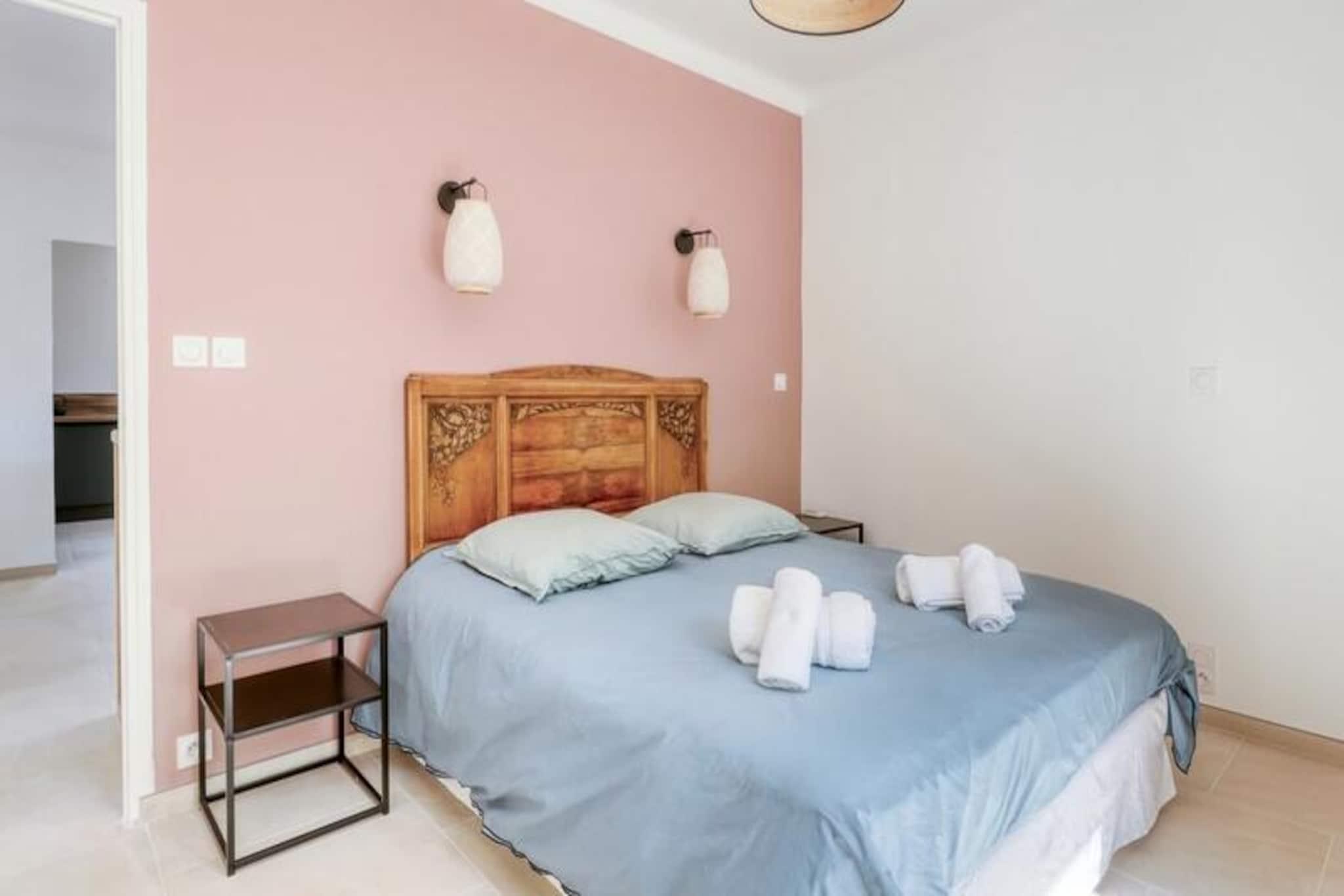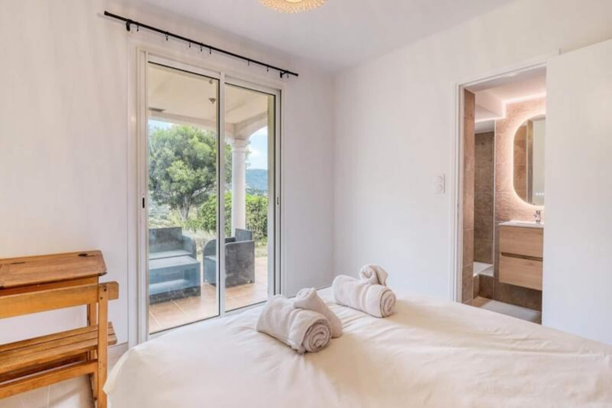 Forestil dig at vågne op til lyden af blide bølger og duften af fyrretræer i luften. Villa Tanit, der ligger på det fredfyldte Cap Nègre i Pramousquier, tilbyder en rolig oase med en betagende udsigt over Middelhavet. Kun en kort gåtur fra den afsondrede Pramousquier-strand, kendt som 'Den mystiske strand', er denne villa et paradis for dem, der søger afslapning og naturlig skønhed. Med sine frodige haver, solbeskinnede terrasser og en privat swimmingpool inviterer hvert hjørne af dette hjem dig til at slappe af og nyde charmen ved Côte d'Azur. Villaens interiør er lige så imponerende som omgivelserne. Den er fordelt på tre etager og har fem soveværelser, der alle er omhyggeligt designet med henblik på komfort og privatliv. Den største stue har gulv til loft-vinduer, der åbner ud mod en terrasse med panoramaudsigt over havet. De moderne faciliteter omfatter et fuldt udstyret køkken, aircondition, Wi-Fi og endda et paddleboard til dine eventyr ved havet. Uanset om du nyder et måltid i den rummelige spiseplads, slapper af ved poolen eller slapper af i jacuzzien, føles hvert øjeblik her som en oase. Uden for villaen fører den sikre cykelsti dig til de 12 strande i Le Lavandou, der er perfekte til at udforske kystlinjen. Pramousquier-stranden med sine skjulte stier og indbydende strandrestauranter ligger kun 5 minutters gang derfra. For dem, der elsker vandsport, kan der lejes pedalbåde, hvilket tilføjer et strejf af eventyr til dit ophold. Uanset om du rejser med familie, venner eller din partner, tilbyder Villa Tanit en uforglemmelig blanding af komfort, elegance og den tidløse charme ved den franske riviera. Lad middelhavsbrisen og de gyldne solnedgange skabe minder, der vil vare hele livet.
