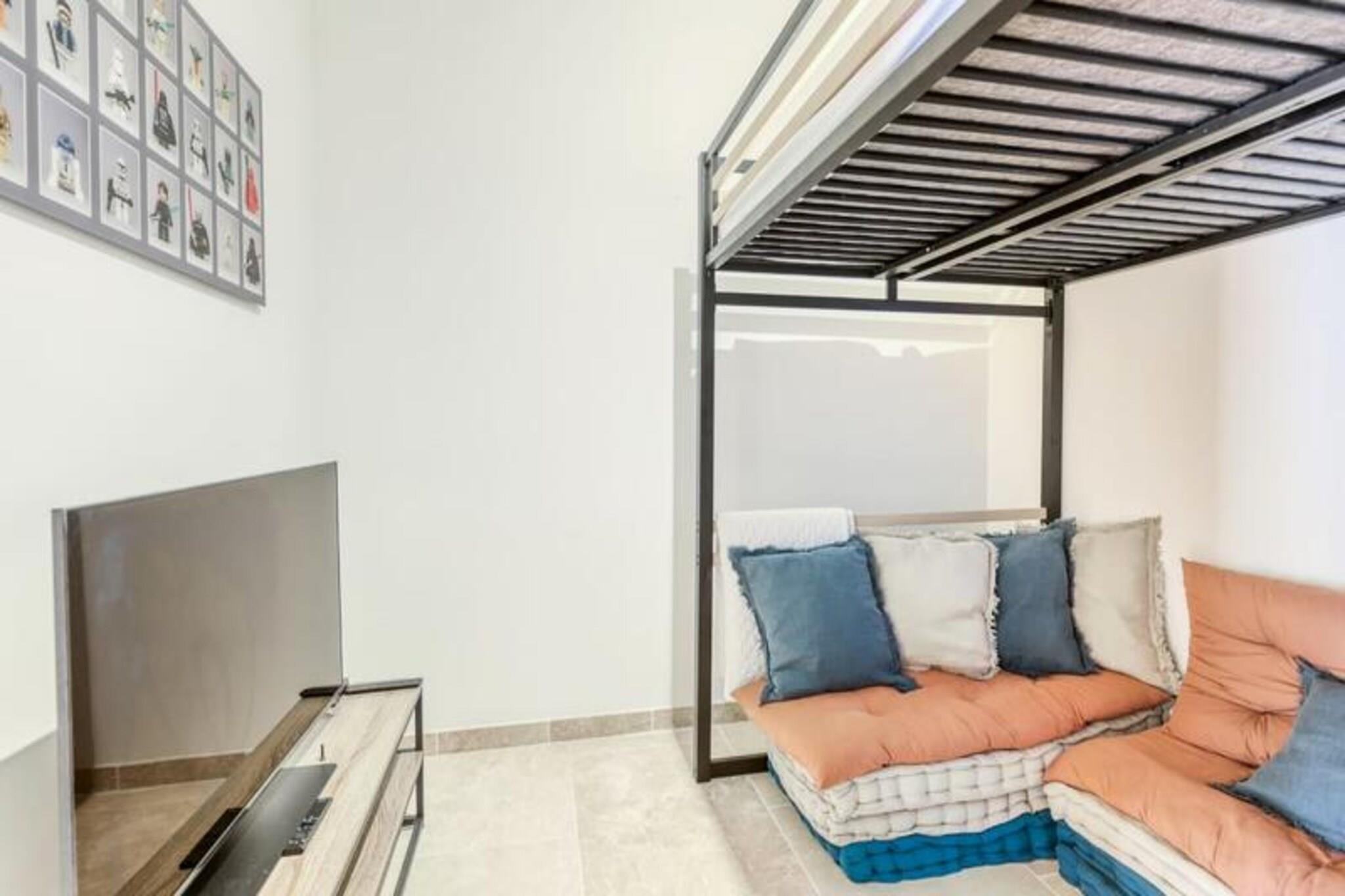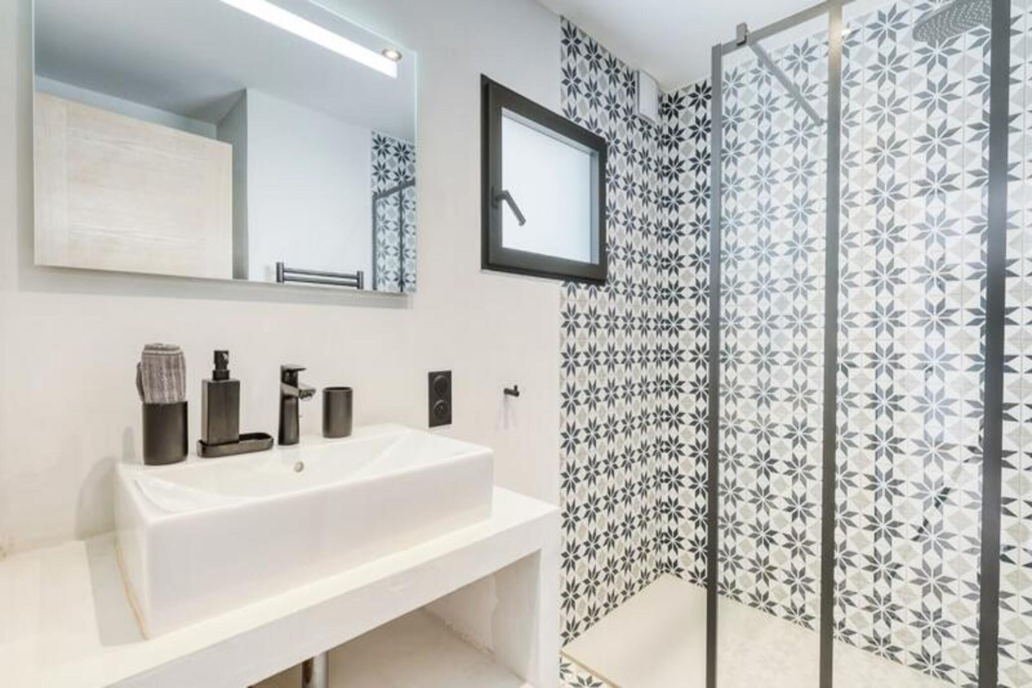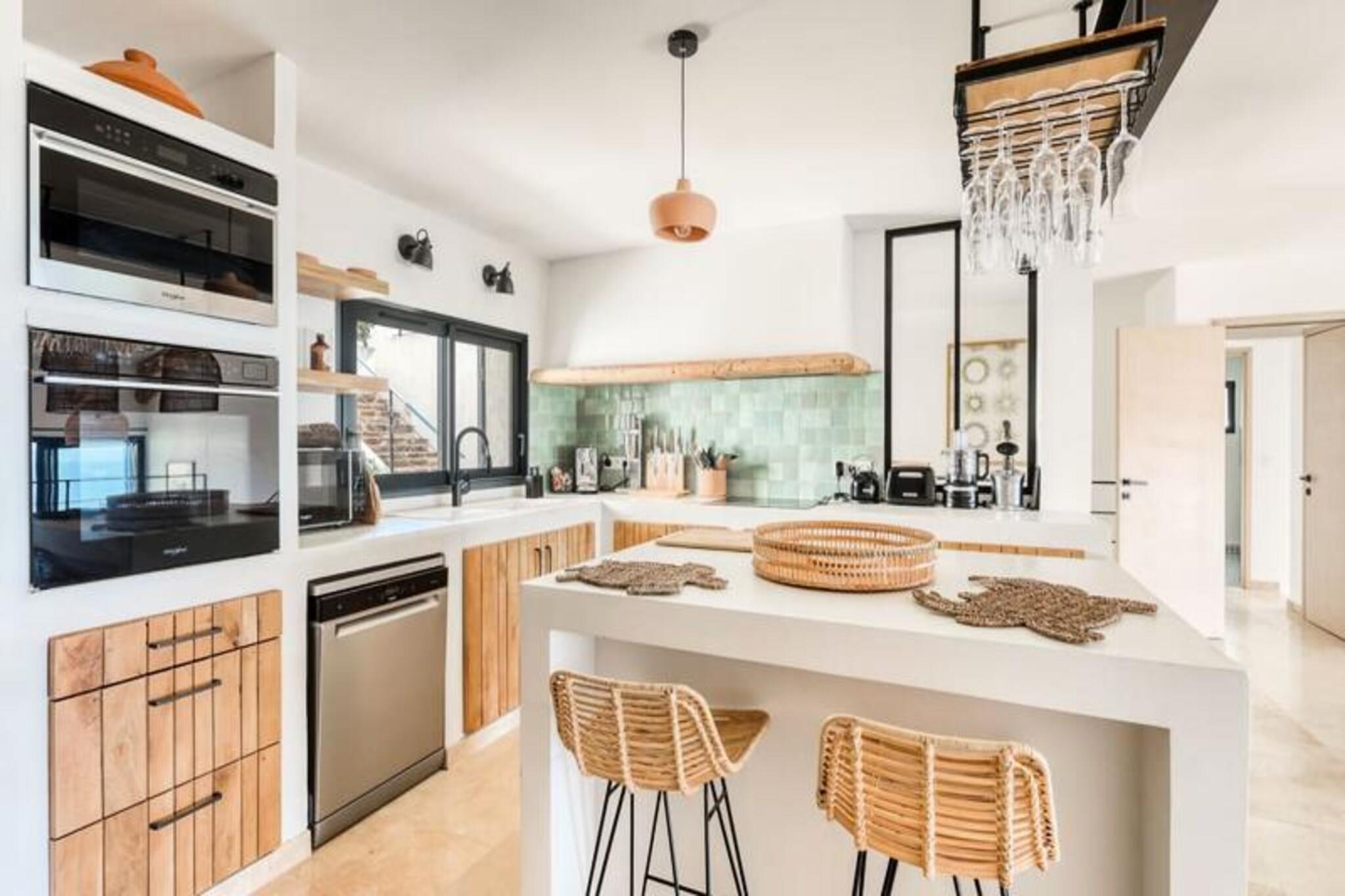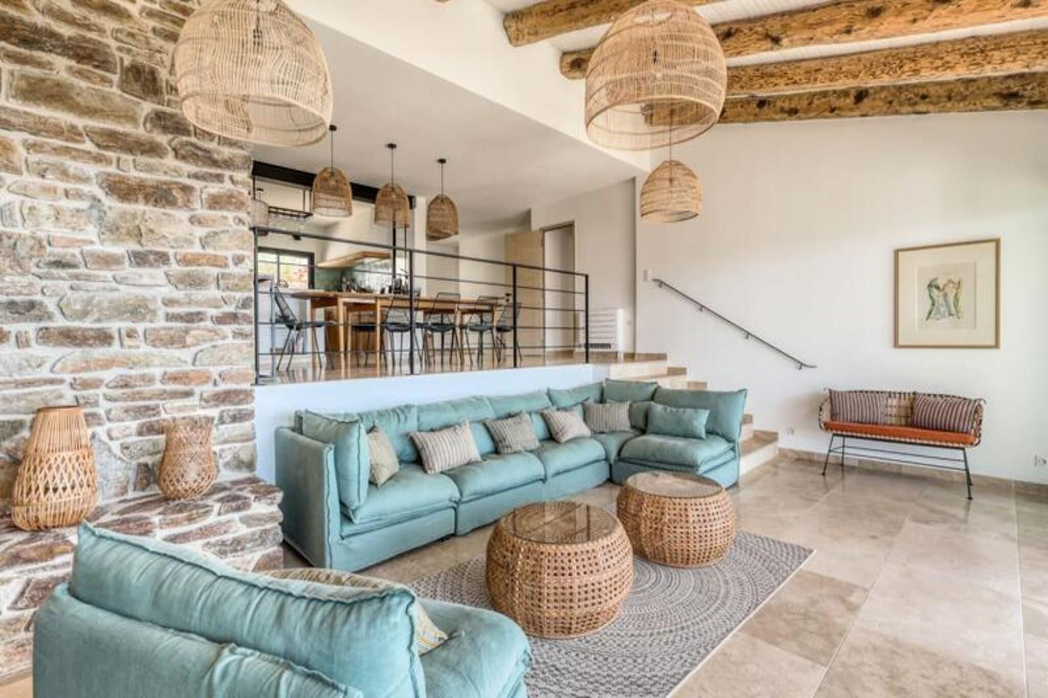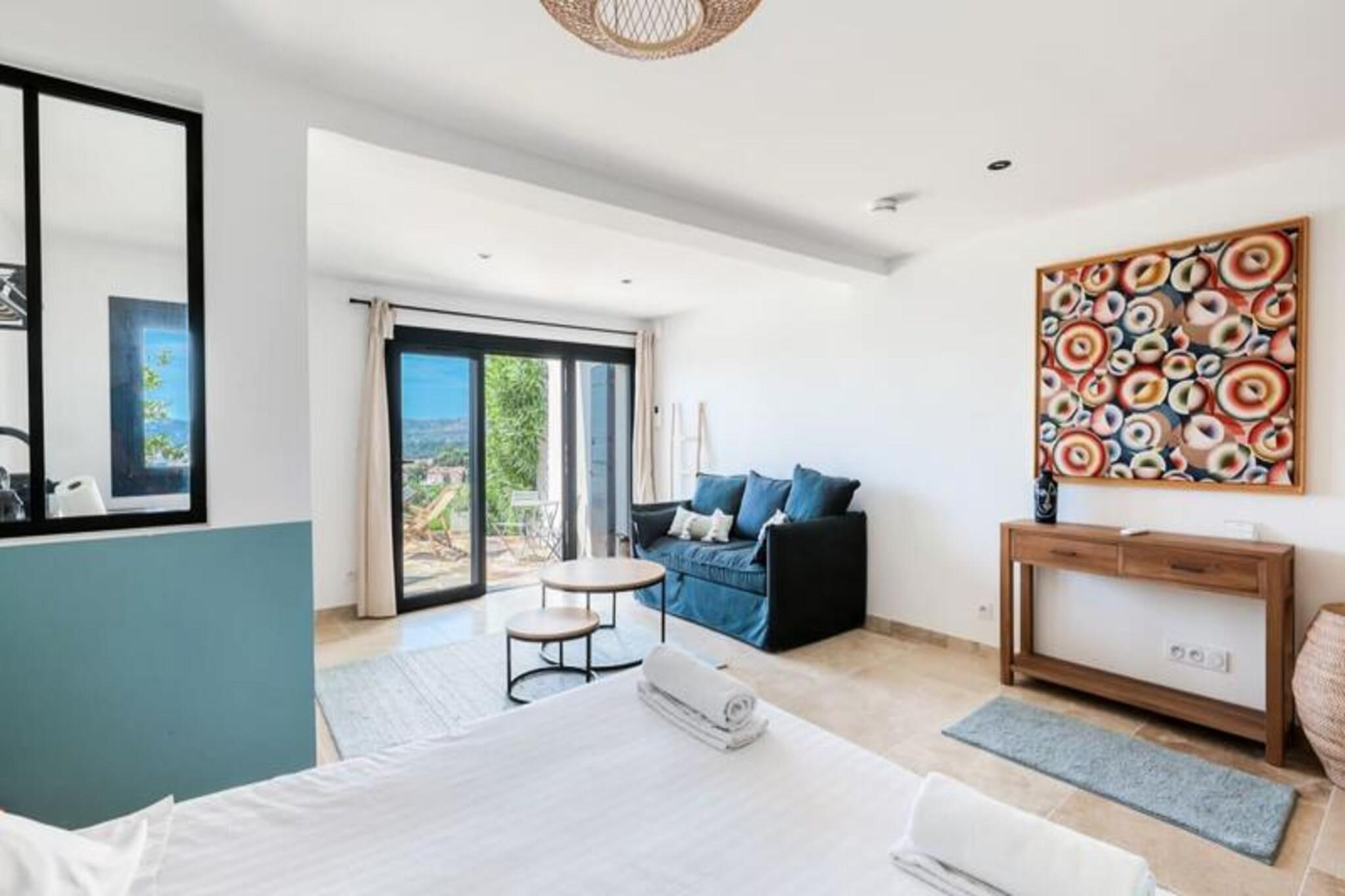 Villa Figuiere i Le Lavandou ligger på en fredelig bakke med en betagende udsigt over Middelhavet og er et fristed for luksus og afslapning. Denne udsøgte ejendom tilbyder en perfekt blanding af komfort og elegance, hvilket gør den til et ideelt tilflugtssted for familier eller grupper, der søger en uforglemmelig ferie på den franske riviera. Forestil dig at vågne op til den blide havbrise, nyde din morgenkaffe på terrassen og tilbringe dine dage ved den private swimmingpool, der kan opvarmes efter ønske for ekstra komfort. Uanset om du er her for at slappe af eller udforske, lover denne villa et ophold som intet andet. Villaen kan komfortabelt rumme op til 14 gæster med sin gennemtænkte indretning. Hovedetagen har en rummelig stue, et fuldt udstyret køkken og tre smukt indrettede soveværelser, herunder en master-suite med eget badeværelse. På underetagen finder du to uafhængige studier, der hver tilbyder private sovepladser til forældre og børn, komplet med moderne faciliteter som Wi-Fi-relæer på alle etager for problemfri forbindelse. De udendørs områder er lige så imponerende med en frodig have og et poolområde, der er perfekt til at nyde solen eller en forfriskende dukkert. Aircondition overalt sikrer et behageligt ophold, selv i de varme sommermåneder. Villa Figuiere ligger kun 15-20 minutters gang fra det livlige centrum af Le Lavandou og tilbyder nem adgang til charmerende butikker, restauranter og de fantastiske strande på Côte d'Azur. Kvarteret Super Lavandou er meget eftertragtet for sin rolige atmosfære og panoramaudsigt over havet, der tilbyder en perfekt balance mellem ro og bekvemmelighed. Uanset om du udforsker de lokale markeder, nyder provencalsk mad eller blot slapper af ved poolen, er denne villa din indgang til den ultimative middelhavsoplevelse. Vælg Villa Figuiere til din næste ferie og skab minder, der vil vare hele livet. Fra sine luksuriøse faciliteter til sin uovertrufne beliggenhed er denne ejendom det perfekte sted for en drømmeferie på den franske riviera.