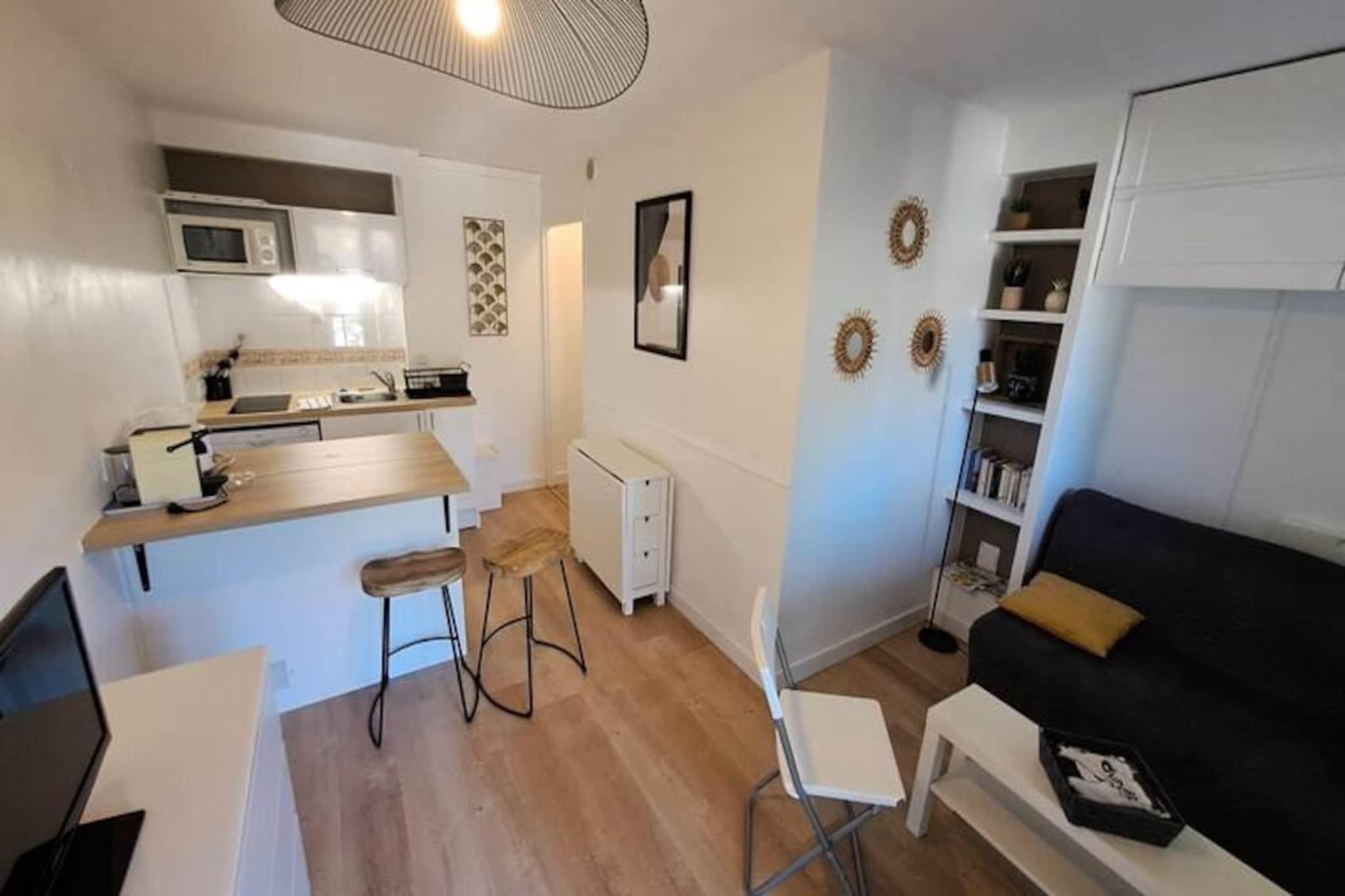 Forestil dig at vågne op til den blide lyd af bølger og duften af ??fyrretræer i denne charmerende, renoverede mazet, beliggende på den fredfyldte 10 hektar store private ejendom La Pinède i Pramousquier. Denne gågade tilbyder en perfekt blanding af ro og eventyr ved havet, hvilket gør den til et ideelt tilflugtssted for par eller små familier, der søger en mindeværdig ferie. Med direkte adgang til den uberørte strand og en opvarmet swimmingpool med udsigt over Middelhavet føles hvert øjeblik her som et stykke af paradis. Indenfor er den hyggelige 25 m² store mazet omhyggeligt designet til at maksimere komforten. Den har et hyggeligt soveværelse med dobbeltseng, en sovesofa i stuen og et fuldt udstyret tekøkken med moderne apparater, herunder opvaskemaskine, mikrobølgeovn, Nespresso-maskine, elkedel og brødrister. Badeværelset og det separate toilet er kompakte, men funktionelle, hvilket sikrer et problemfrit ophold. Perfekt til to gæster, men med plads til op til fire, er dette rum ideelt for dem, der værdsætter intimitet og bekvemmelighed. Sengelinned er inkluderet og klar ved ankomst, så du kan starte din ferie stressfrit. Gå udenfor og nyd ejendommens fantastiske faciliteter: en sportsbane, petanque, bordtennis, en legeplads og cykeludlejning, så du kan udforske de maleriske omgivelser. Terrassen, komplet med grill og havudsigt, inviterer dig til at slappe af med et glas vin, mens solen går ned over horisonten. Uanset om du slapper af ved poolen, slentrer langs stranden eller blot nyder den naturlige skønhed ved Côte d'Azur, tilbyder denne labyrint idylliske ramme for at skabe uforglemmelige minder. Book dit ophold, og lad magien ved La Pinède fortrylle dig.