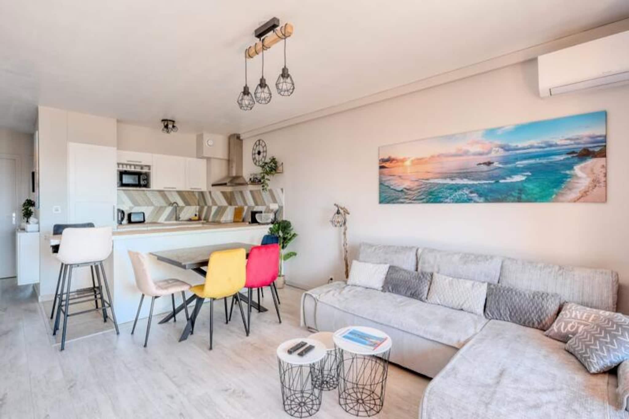 Væk dine sanser til den middelhavske charme i Le Lavandou på Le Diamant du Soleil, en smukt renoveret lejlighed, der kombinerer moderne komfort med en fantastisk havudsigt. Beliggende i hjertet af denne pulserende kystby, tilbyder denne perle en uovertruffen beliggenhed kun få øjeblikke fra gyldne strande, travle markeder og charmerende provencalske gader fyldt med butikker og restauranter. Uanset om du søger afslapning eller eventyr, er dette det perfekte tilflugtssted til at fordybe dig i Côte d'Azurs skønhed. Træd indenfor i dette fristed på tredje sal i den prestigefyldte 'Le Diamant'-residens, og oplev et lyst, luftigt rum designet til komfort og stil. Lejligheden har to gennemtænkte soveværelser: et soveværelse med en hyggelig dobbeltseng og tv, og et andet værelse, der er ideelt for familier, udstyret med en dobbeltseng og køjesenge. Den åbne opholdsstue inviterer dig til at slappe af med et fladskærms-tv, ultrahurtigt fiberinternet og et fuldt udstyret køkken med moderne apparater som induktionskogeplade, ovn, opvaskemaskine og kaffemaskine. Aircondition sikrer en kølig tilflugt i de varme sommermåneder, mens et separat toilet og privat parkering med en unik billift bidrager til bekvemmeligheden. Le Lavandous pulserende atmosfære er lige uden for døren. Gå en tur til sandstrandene for at nyde solen, udforsk de lokale markeder fyldt med provencalske lækkerier, eller nyd frisk fisk og skaldyr på nærliggende restauranter. For dem, der elsker naturen, tilbyder regionen naturskønne kyststier, vandsport og en betagende udsigt over Middelhavet. Uanset om du rejser som par, med familie eller venner, lover Le Diamant du Soleil et uforglemmeligt ophold, hvor hver eneste detalje er designet til din komfort. Du skal blot pakke ud, slappe af og lade den franske rivieras magi betage dig.