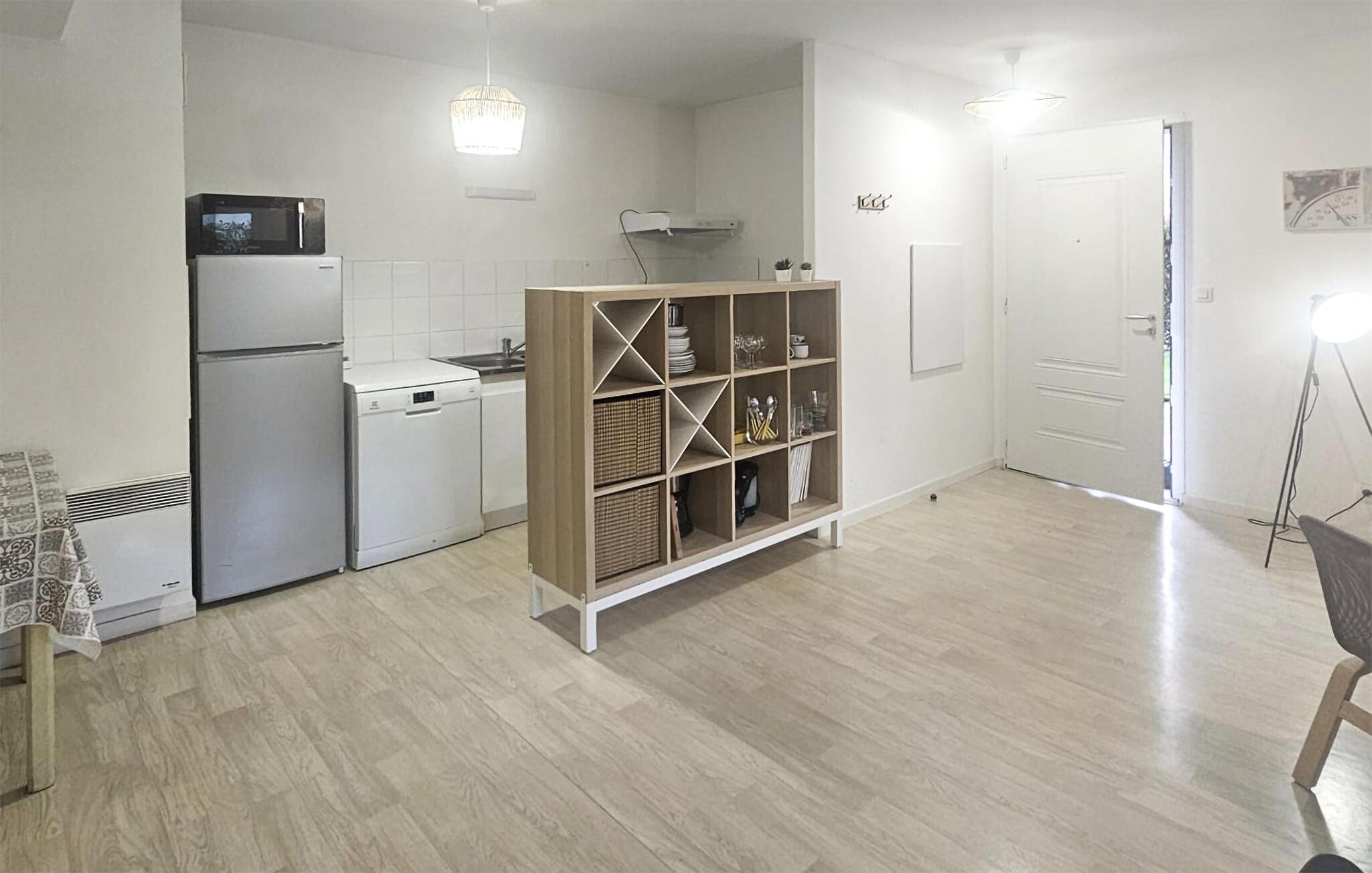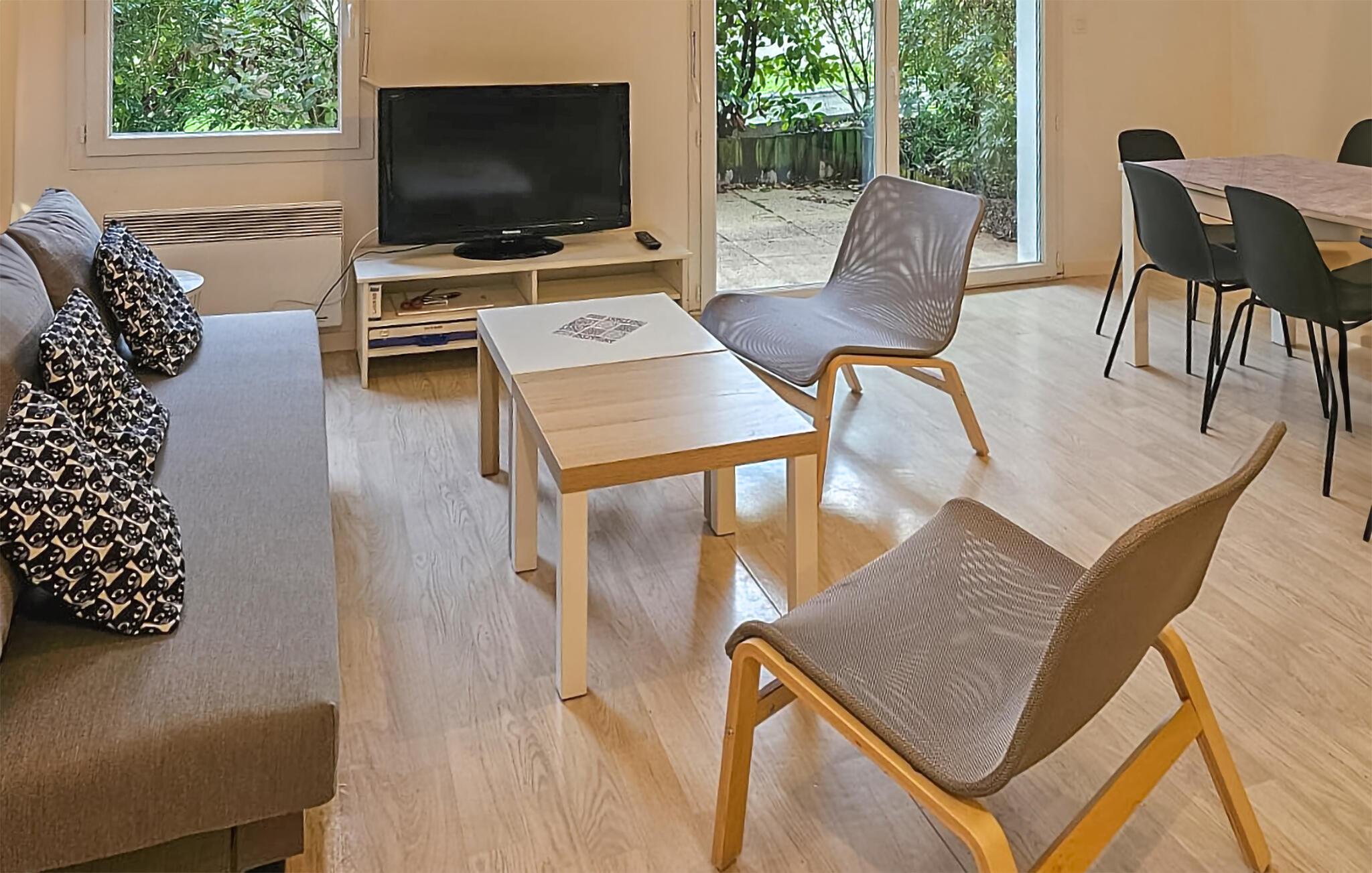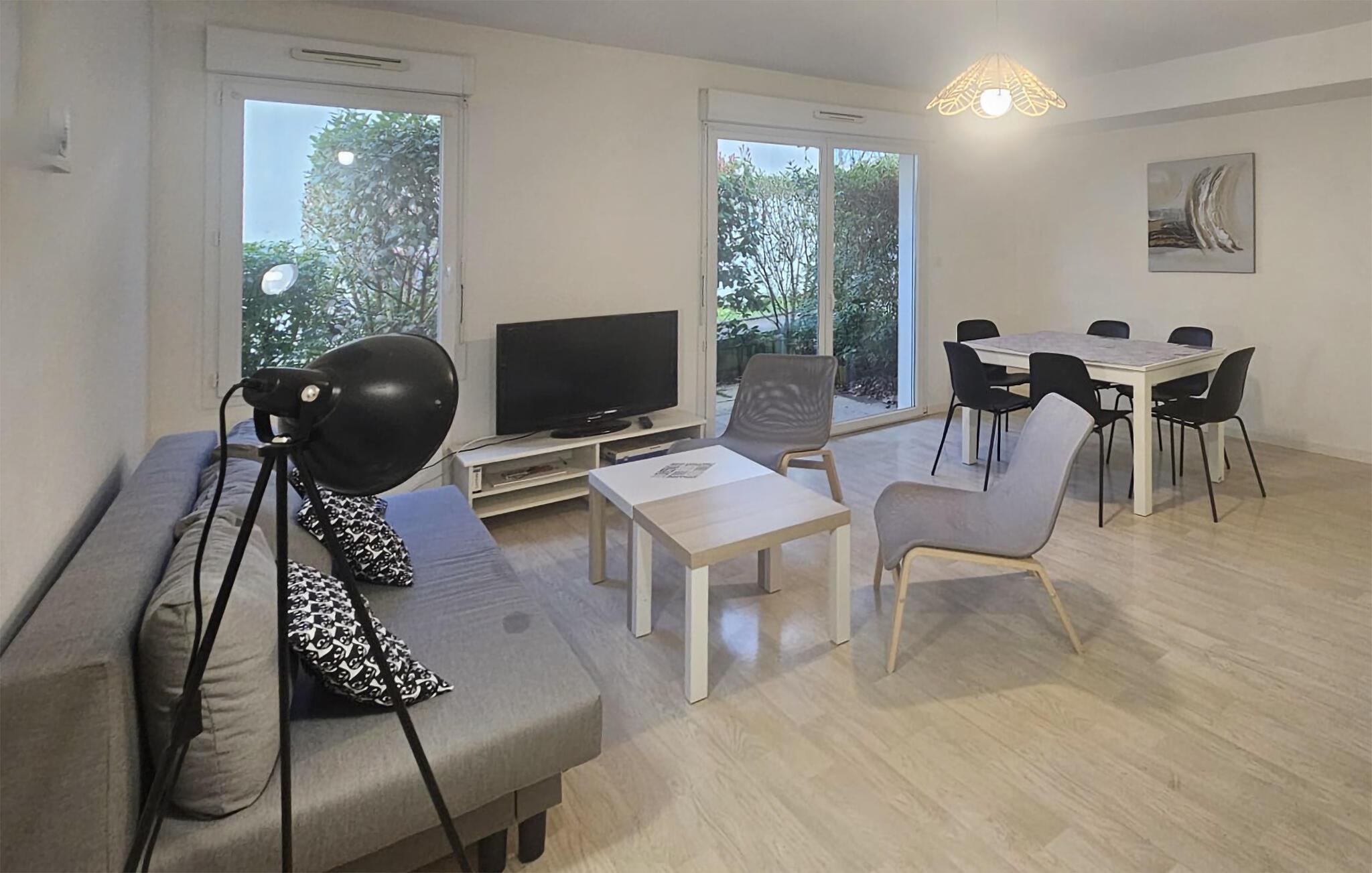 Denne charmerende bolig ligger i stueetagen i en moderne lejlighedsbygning, og med sin basale komfort og pæne indretning får I den ideelle base for en ferie med mange gode udflugter. Efter dagens muntre leg kan I sænke skuldrene og hvile benene med snacks og en god film, mens I lægger planer for de kommende dage.