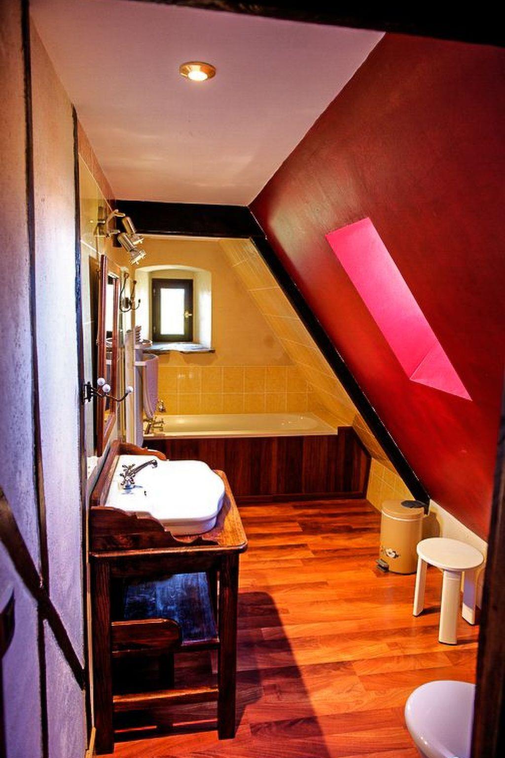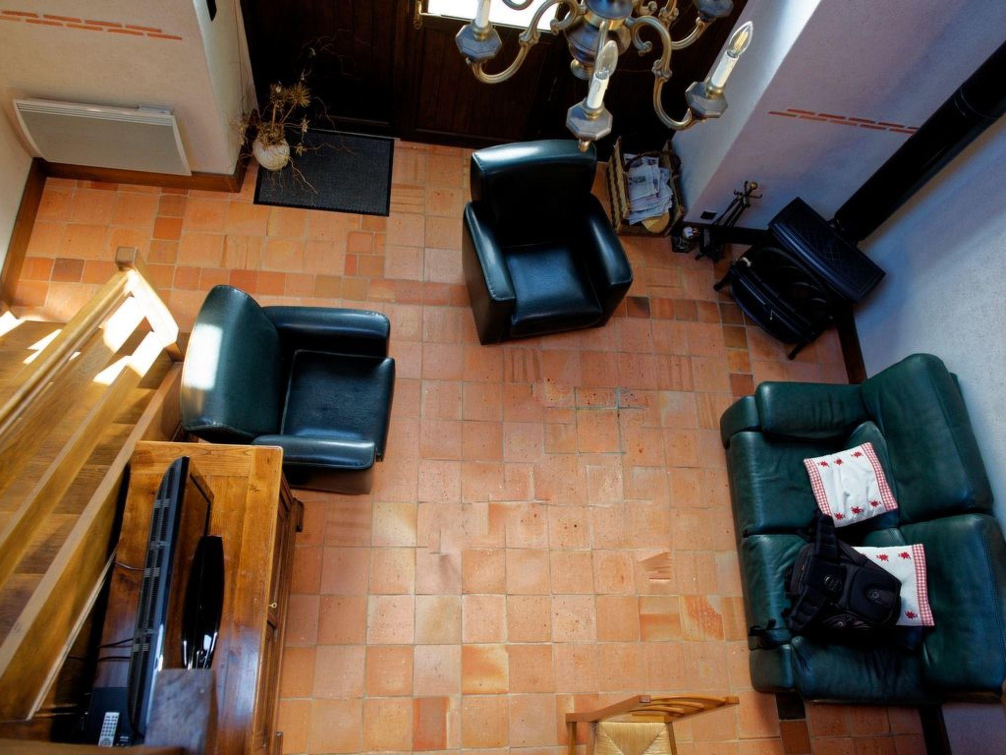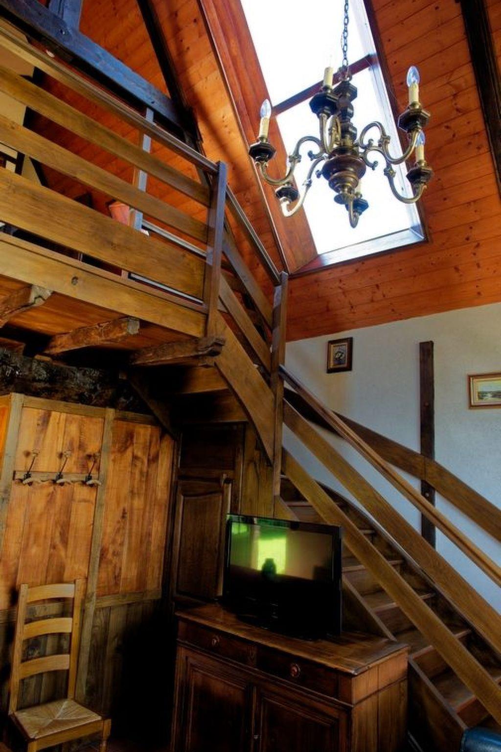 Ground floor: one bedroom (bed 2 x 1.6 m) with en-suite shower room and separate WC - large chestnut wardrobe ___dryer and washing machine __kitchen with gas oven and electric hob - microwave - dishwasher - fridge - freezer - food processor - kettle - coffee machine___dining room - table for 6 - lounge with leather sofa and armchairs - TV and DVD player. Upstairs: a second bedroom (bed 2 X 1.6 or 2 small beds) with bathroom and separate WC - chestnut wardrobe ____mezzanine near the skylight with an additional bed__ Electric heating is supplemented by an efficient wood-burning stove. The wood is provided free of charge.