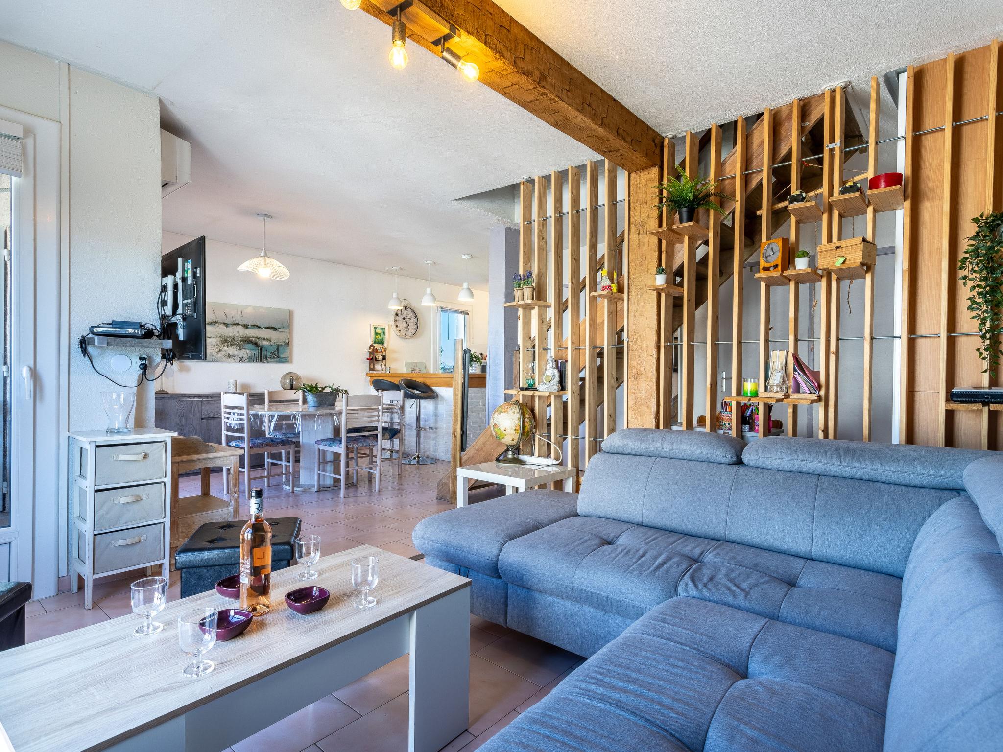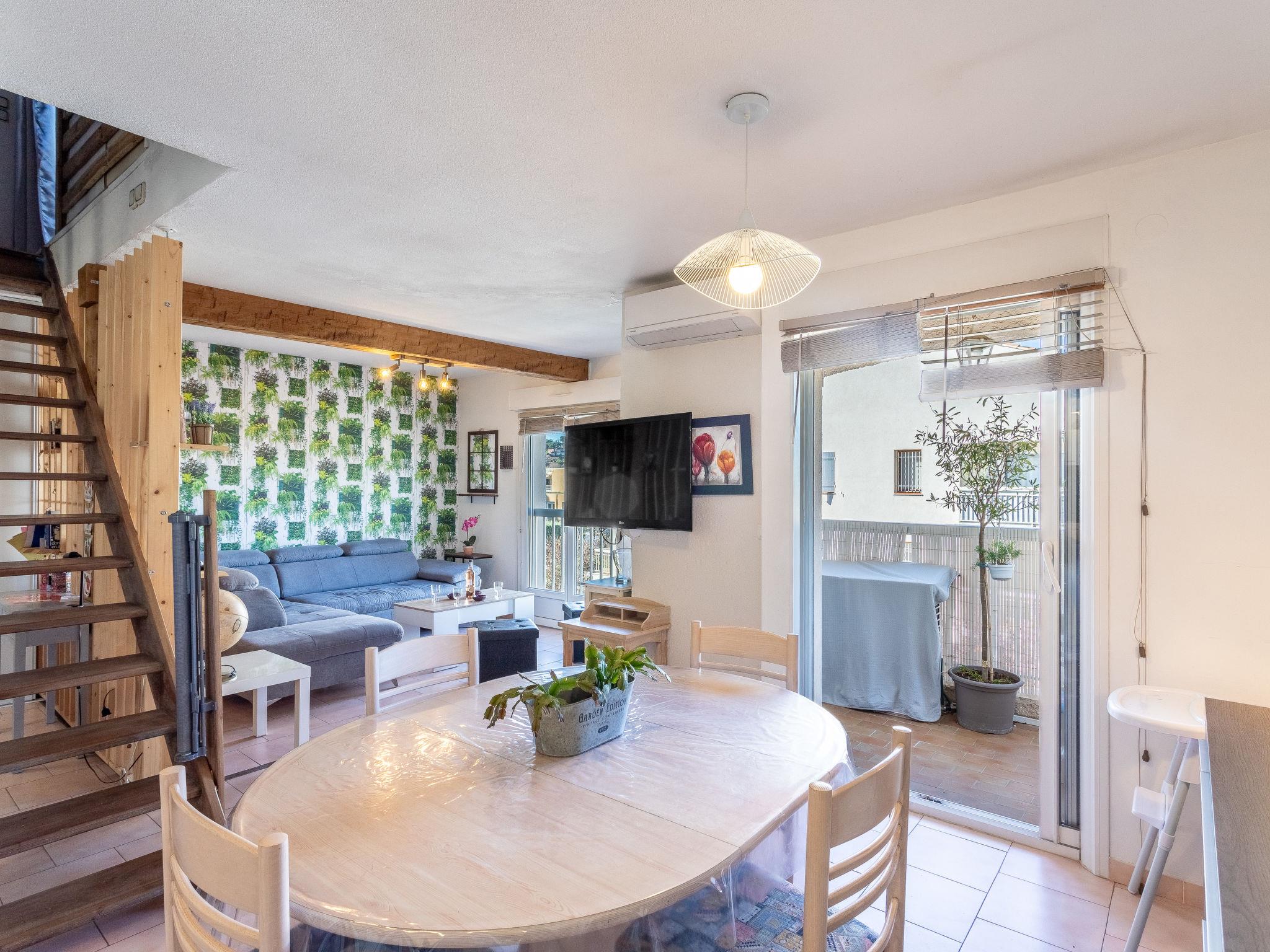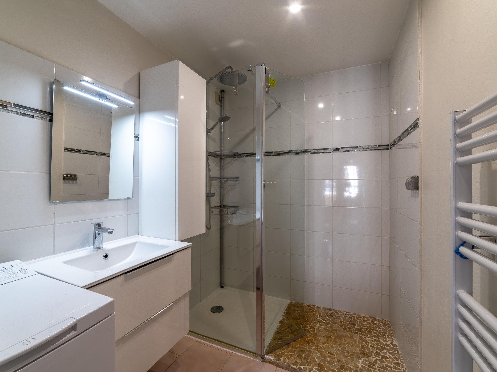 3-room apartment 55 m2 on 2 levels. Partly with sloping ceilings, comfortable and beautiful furnishings: living/dining room with TV (flat screen). Exit to the balcony. Open kitchen (oven, dishwasher, 3 induction hot plates, toaster, kettle, microwave, freezer, electric coffee machine). Shower, sep. WC. Electric heating, air-conditioning. Upper floor: 1 room 10 m2, with sloping ceilings, ceiling height 225 - 110 cm with 1 french bed (140 cm, length 190 cm). 1 room 9 m2, with sloping ceilings, ceiling height 225 - 110 cm with 2 beds (90 cm, length 190 cm). Balcony 7 m2. Balcony furniture. Partial view of the mountains. Facilities: washing machine, baby cot for up to 2 year olds. Internet (WiFi, free). Parking space n 13 (1 car). Please note: TV only FR. Smoke alarm. Offer by a private individual according to Art. 155, IV of CGI.