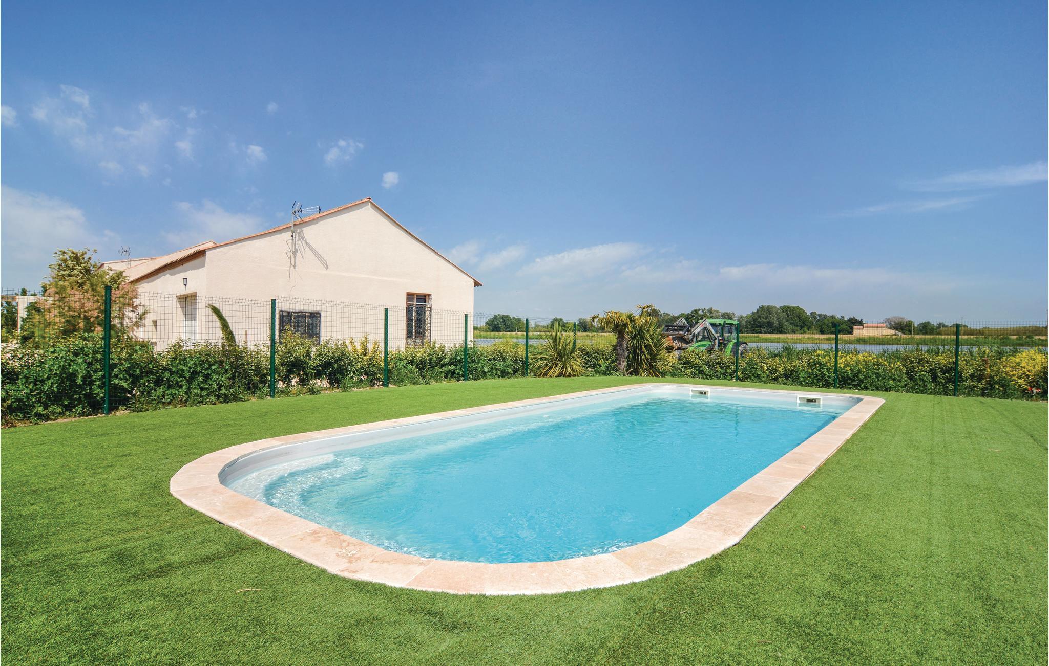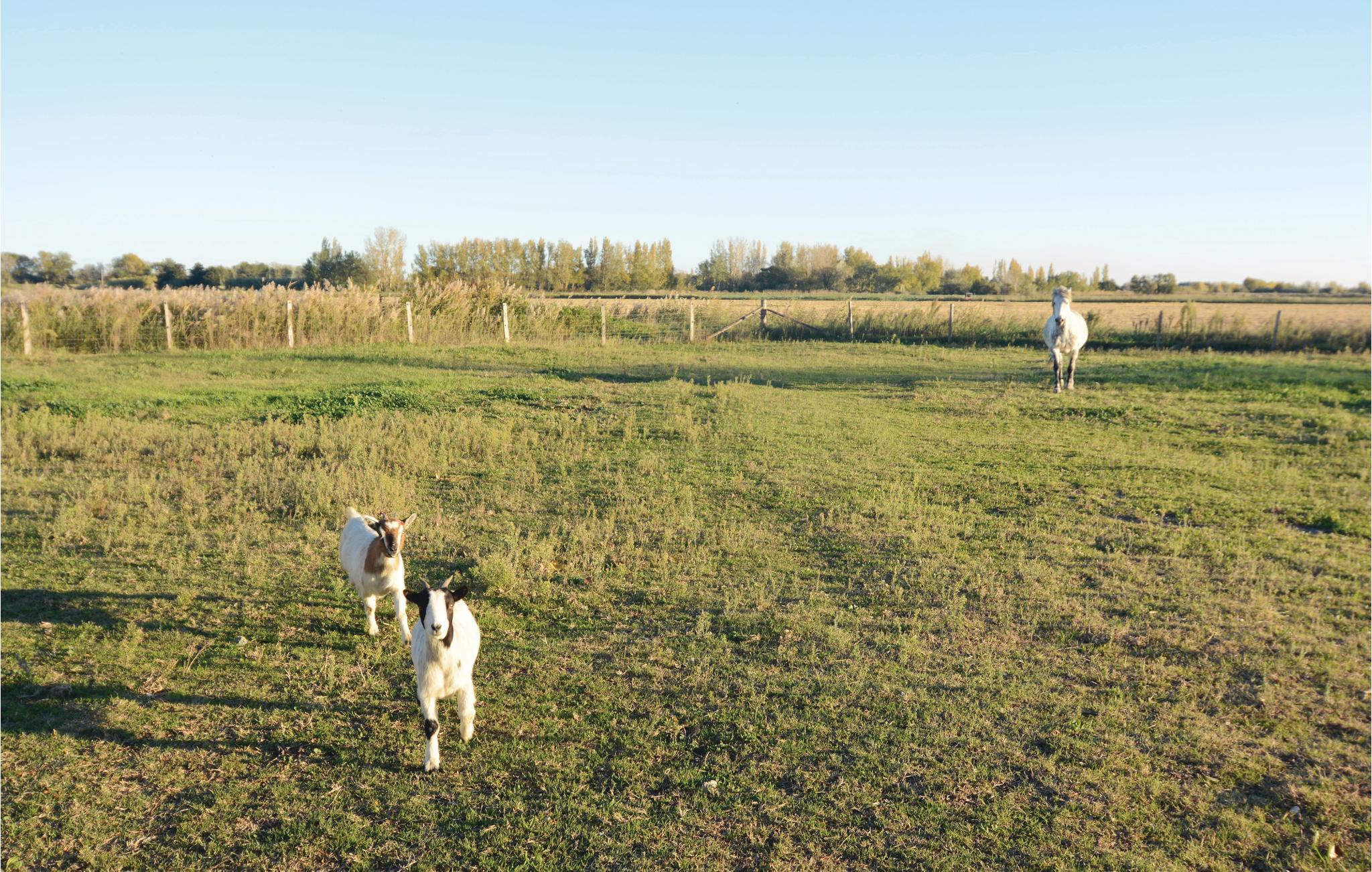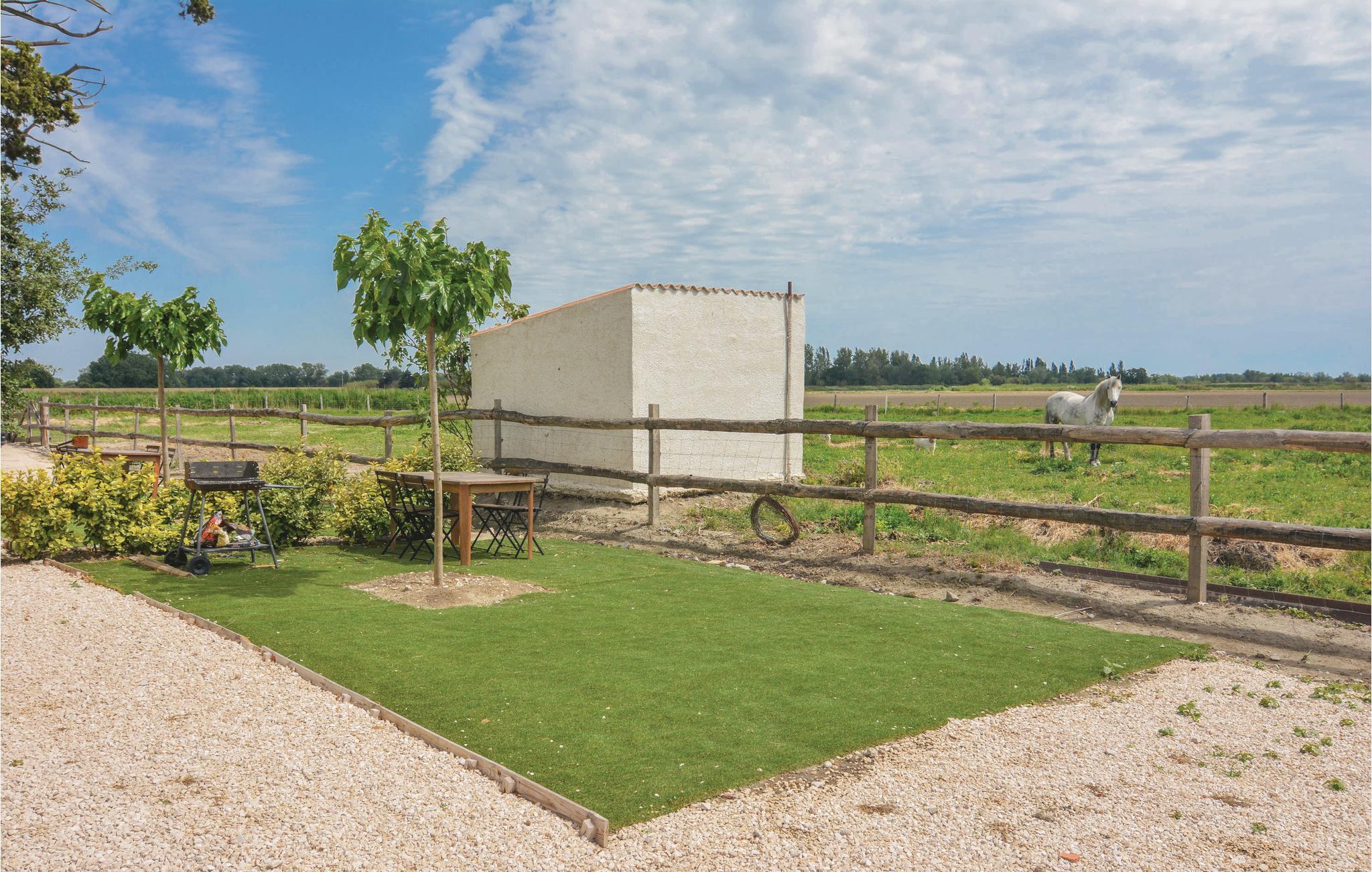 Dette feriehus ligger ikke langt fra Salinerne i Giraud, med det største anlæg i Carmargue og med en skøn udsigt over den omliggende natur. På den fælles store grund er der flere feriehus og en pragtfuld fælles pool. Her er der god plads til at slappe af. En rigtig dejlig plet er den overdækkede terrasse med solsenge ved siden af poolen. I kan også kaste jer ud i en kamp i bordtennis, spil boule som franskmænd og der er også legeplads til jeres små. Her er der ingen der kommer til at kede sig. På grunden bor en hest, på forespørgsel kan I tage jeres egen hest med. Der er et fælles toilet ved poolen. I Le Sambuc er der en lille dagligvarebutik, en restaurant og en bar. Der er 25 km til sandstranden Piémanson og det er oplagt at besøge Arles. Her er der mange restauranter og hver lørdag morgen et typisk provencalsk marked hvor bønderne sælger deres produkter. I Aigues-Mortes er der en skøn havn, en velbevaret bymur og mange smukke bygninger. I badebyer som Saintes-Maries-de-la-Mer og Le Grau-du-Roi kan I tilbringe dejlige badedage. Lidt længere kommer I gennem Nîmes med en gammel romersk arena og den skønne Place de la Comédie i Montpellier indbydere til en pause med et godt glas vin. Lidt tilbagetrukket i landskabet ligger den typise by Salon-de-Provence med Nostradamus fødehjem, og der er kun en km til Rhone hvor det er oplagt at fiske. Lej flere huse hvis I er mange der rejser: se FPB291, FPB292, FPB293 og FPB294. Der et fælles toilet ved poolen.