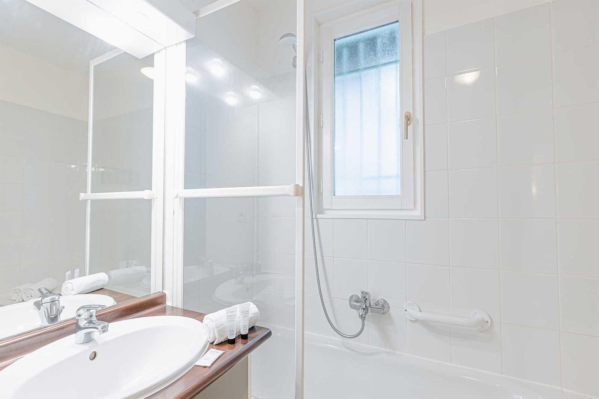 Tchanquée-Style Retreat ved Arcachon Bay Velkommen til dit charmerende ferieparadis i Le Teich, inspireret af de ikoniske tchanquée pælehytter i Arcachon-bugten. Dette lyse og rummelige hjem på 55 m² blander traditionel stil med moderne komfort. Indenfor finder du en hyggelig mezzanin med dobbeltseng, to afslappende soveværelser med enkeltsenge og et soloplyst opholdsområde med en sovesofa. Et veludstyret åbent køkken (med mikroovn og opvaskemaskine) giver dig mulighed for at spise med lethed, mens to badeværelser (et med badekar) og to separate toiletter tilføjer bekvemmelighed for familier eller grupper. Kystkomfort og fælles fritid Udenfor kan du nyde kaffe eller middag på din private terrasse, mens du har udsigt over den frodige fælles have. Tag en dukkert i den store opvarmede pool (åben april til september), slap af i solen eller slap af med en bog i skyggen. Med privat parkering og fredelige omgivelser er det ideelt for par, familier og venner, der søger en afslappet flugt ved Atlanterhavskysten. Kæledyrsvenligt paradis og lokale lækkerier Tag dine lodne ledsagere med - Le Teich er fuld af kæledyrsvenlige stier, herunder det naturskønne Domaine de Certes-Graveyron, kun få minutter væk. Gå en tur langs hundevenlige strande eller nyd udendørs spisning på lokale bistroer, der byder kæledyr velkommen. Arcachons fiske- og skaldyrslækkerier og friske østers er kun en kort køretur væk - perfekt til et solnedgangsmåltid med din hvalp slumrende i nærheden.