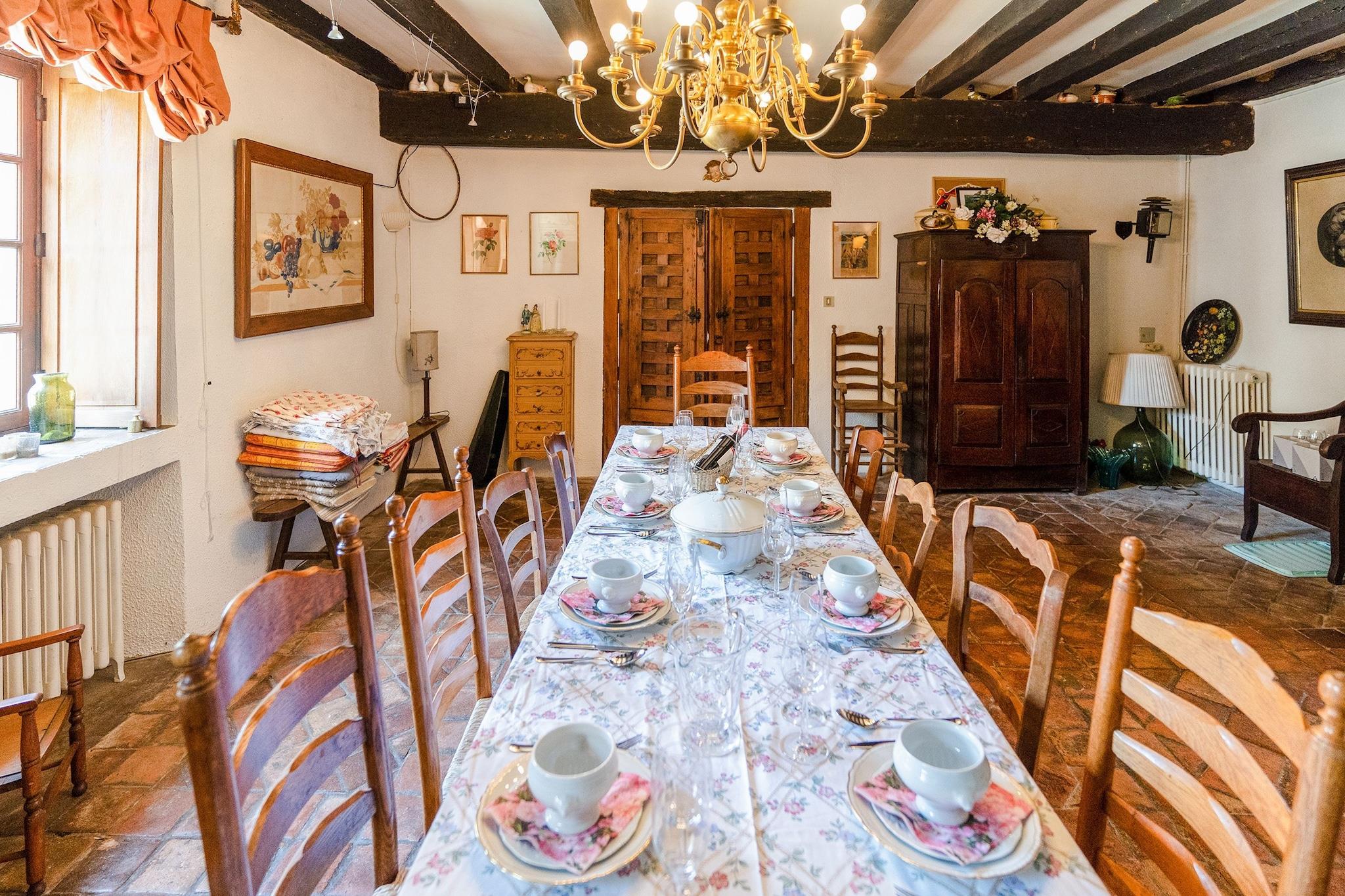 Dette smukke og historiske slot ligger i udkanten af landsbyen Le Veurdre. En rute til Santiago de Compostella løber gennem landsbyen. Komplekset ligger et sted, der giver dig absolut fred og en storslået udsigt over landdistrikterne. Slottet - bygget omkring 1400 - har en spændende historie og siges at have været en lejr for Jeanne d "" Arc. Den første franske konge blev også der i en uge. Huset er rummeligt og attraktivt. Du kommer ind i hallen, en stor og en lille opholdsstue, en stor spisestue, køkken og bryggers. Dette slot er ideelt til en stor familie. Der er nogle gode vandre- og cykelstier i nærheden af slottet. Ruten Saint Jacques de Compostelle ligger 500 m derfra. Byen Nevers ligger 34 km derfra. Saint Etienne de Bourges Katedral ligger 65 km derfra. Om sommeren er det dejligt at slappe af på de to store terrasser. Om vinteren kan du nyde de brølende brande på de store pejse. De hyggelige møbler med mange antikke elementer garanterer et uforglemmeligt ophold.