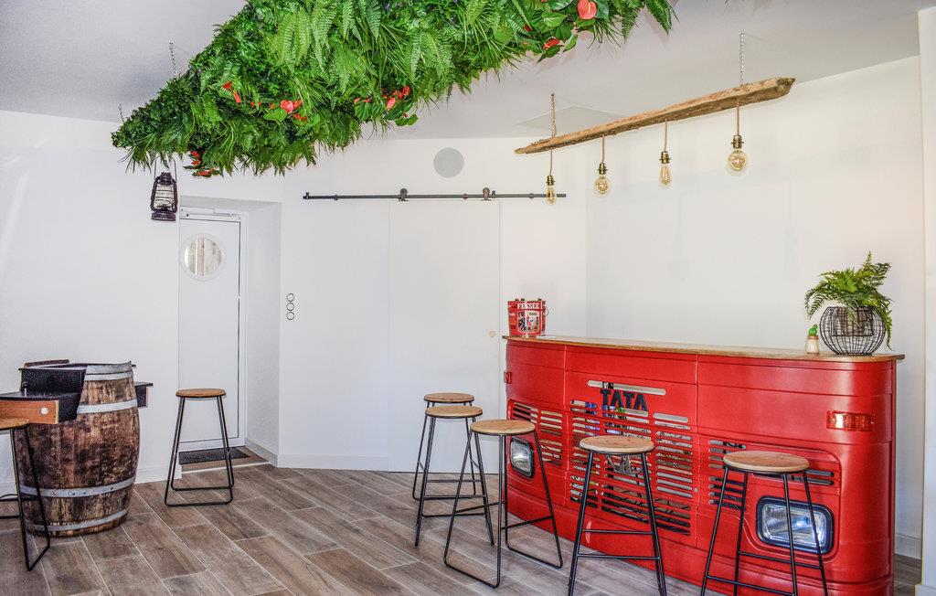 Rummeligt, familievenligt feriehus med opvarmet indendørs pool. Dette feriehus ligger roligt i den bretonske kommune Le Vieux-Bourg. De lyse, farverigt indrettede værelser gør et smagfuldt indtryk og tilbyder de perfekte rammer for ubekymrede ferier med familien. Lad de små slippe dampen ud i legehjørnet, hygge med et spil bordtennis og senere slappe af ved poolen. Om aftenen kan I tilberede jeres delikatesser i det store køkken og afslutte en fantastisk dag omkring spisebordet. Den indhegnede have byder på flere hjørner, der inviterer til at blive hængende, og på varme dage kan I køle af under den udendørs bruser. Gå en tur gennem området og besøg destinationer som de helliges dal eller slottet Val. Kig forbi på hyggelige restauranter og prøv lækre regionale specialiteter. Inden for rækkevidde frister Guerlédan-søen jer også med badeture og vandsport.