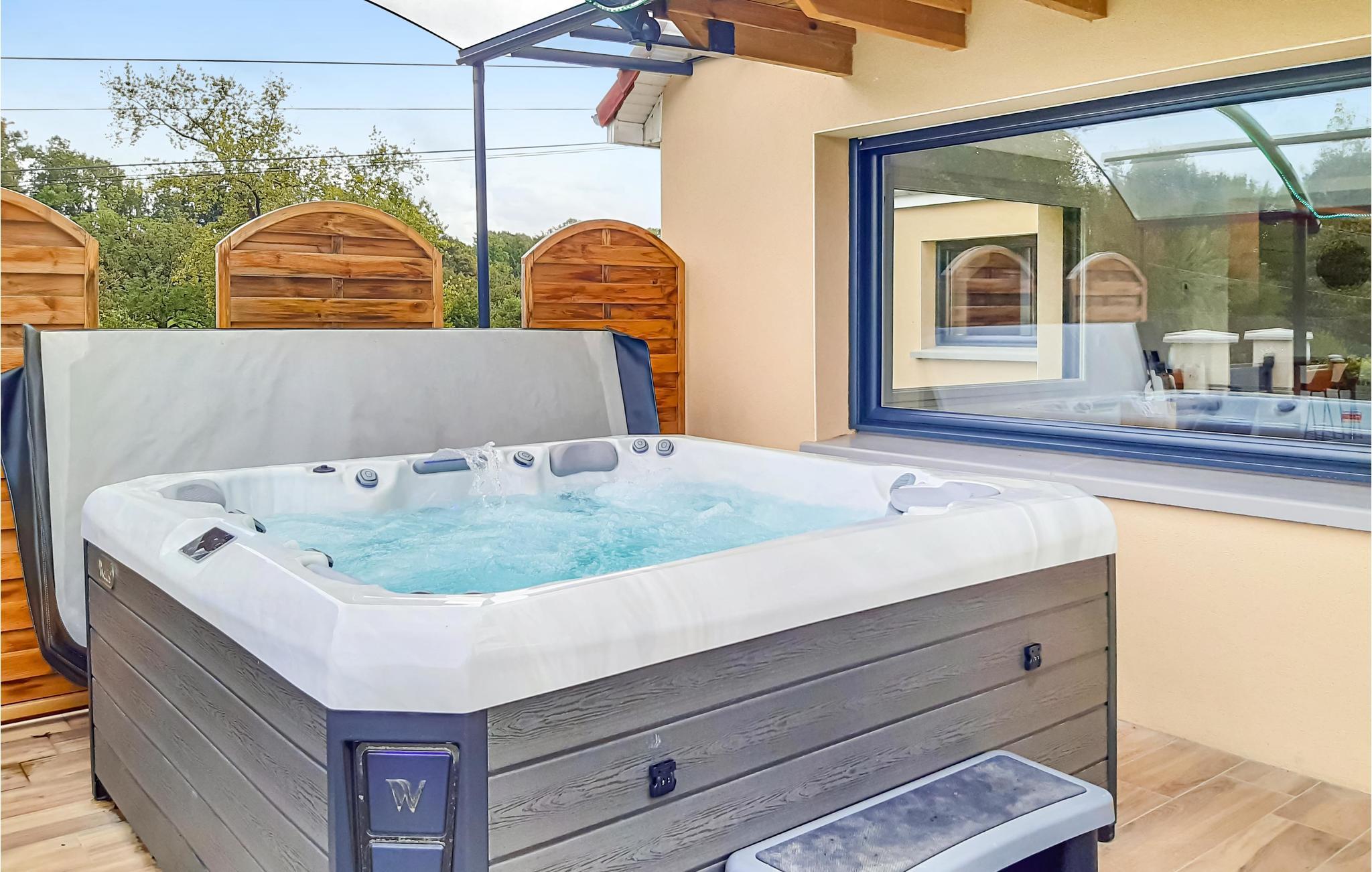 Terrassen med en vidunderlig udsigt over den omkringliggende natur er udstyret med en boblebad, der lover dig uforglemmelige øjeblikke med afslapning.