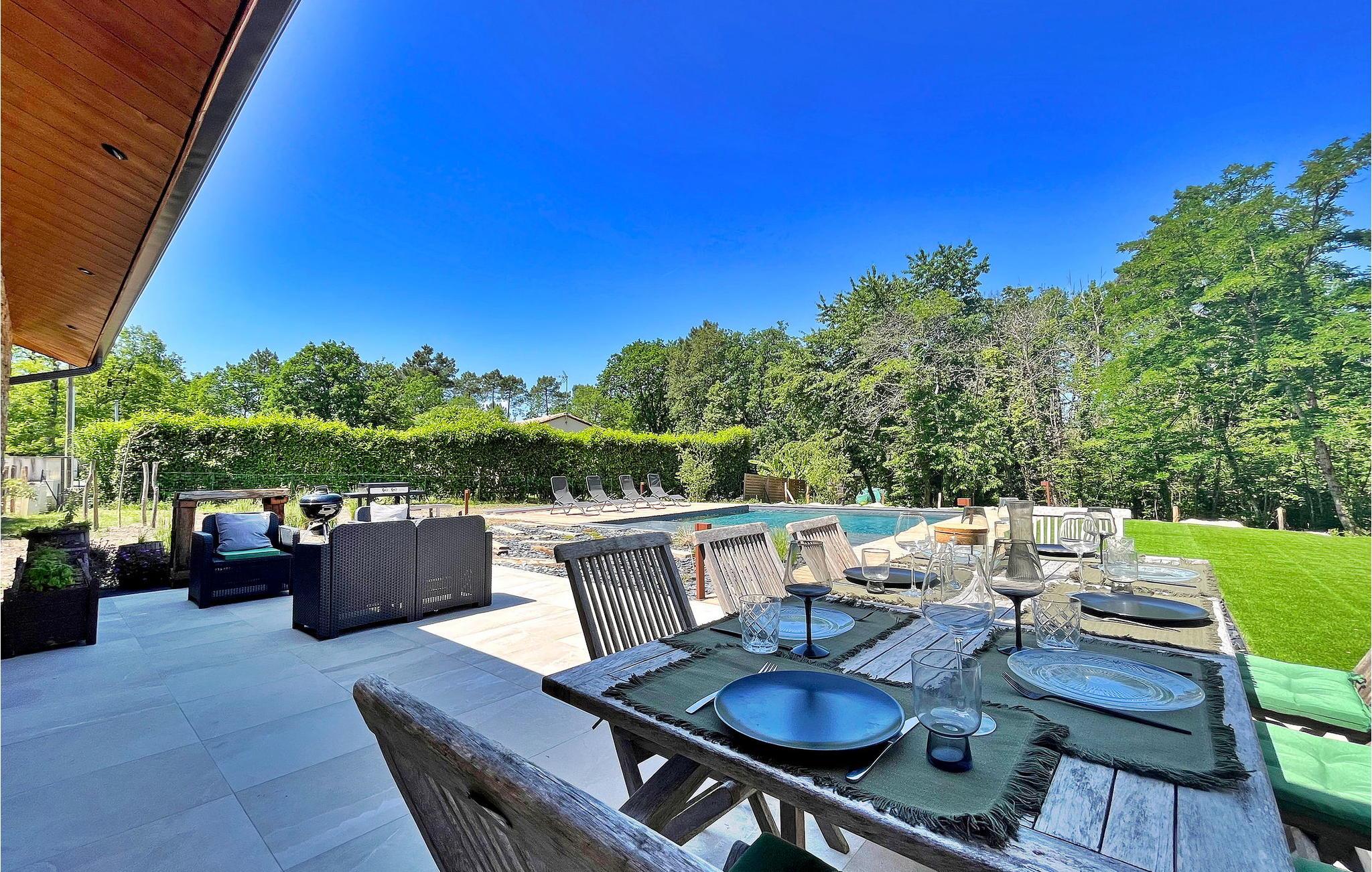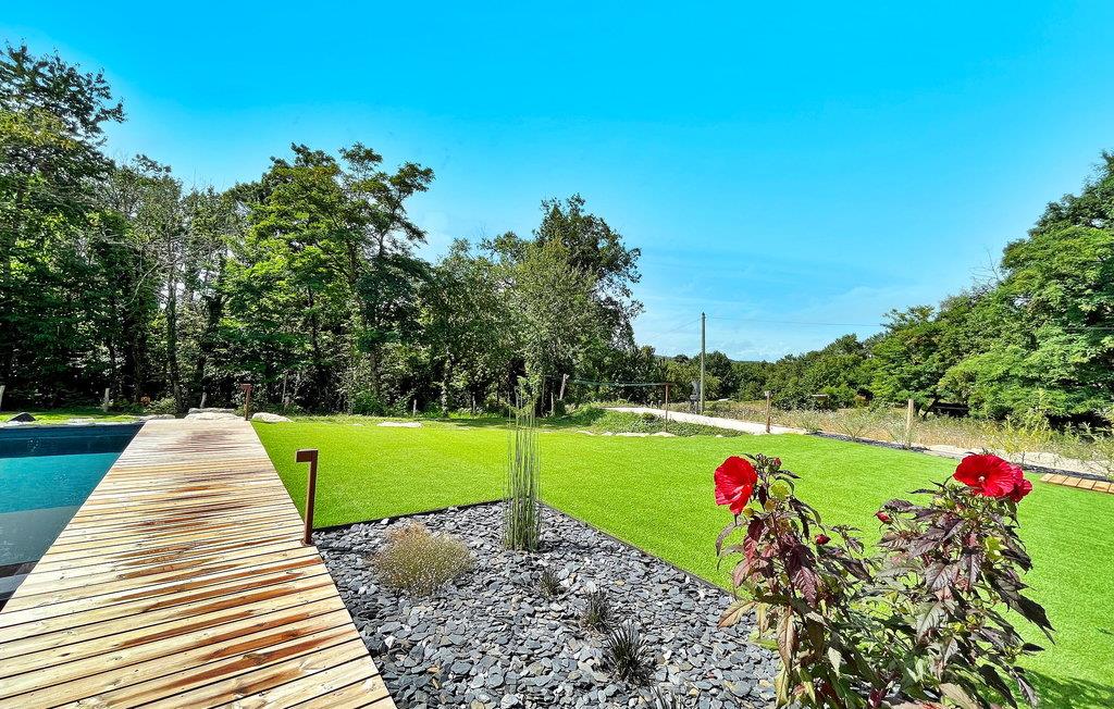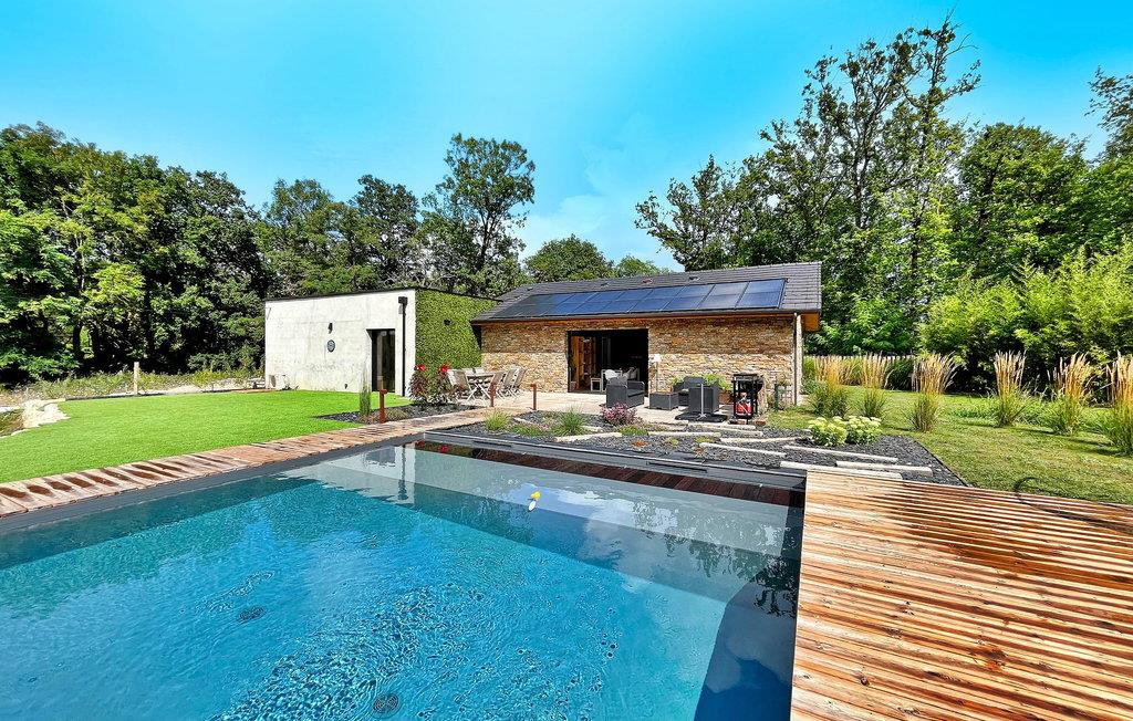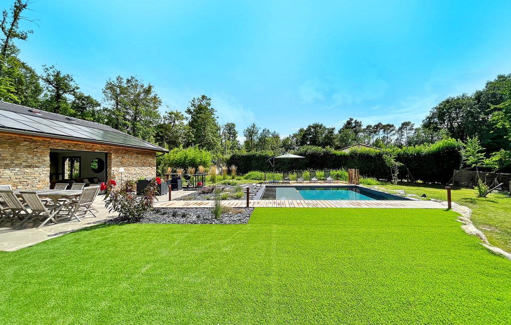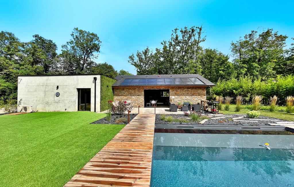 Oplev charmen ved Dordogne i dette nybyggede stenferiehus, med privat pool, beliggende i landsbyen Leguillac de L'Auche. Dette tilbagetog tilbyder en sømløs blanding af komfort og luksus. Indenfor er ejendommen smukt designet med moderne møbler og moderne bekvemmeligheder. Udenfor venter en anlagt have, parkering, petanquebane og en terrasse med plads til ni. Grillpladsen lover al fresco-spisning, mens den private pool lokker med sin forfriskende charme og børnevenlige design. Omgivet af fredeligt landskab, men ikke helt isoleret, vil du finde de nærmeste butikker og faciliteter er lige under en kilometer væk. Fordyb dig i roen og elegancen i dette feriehus i Dordogne, hvor hver detalje er udformet til at løfte din ferieoplevelse.