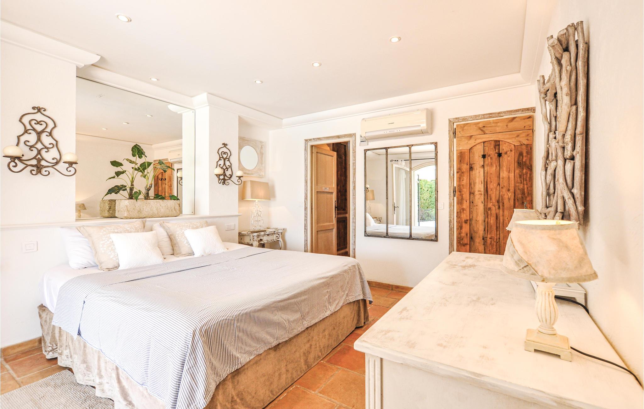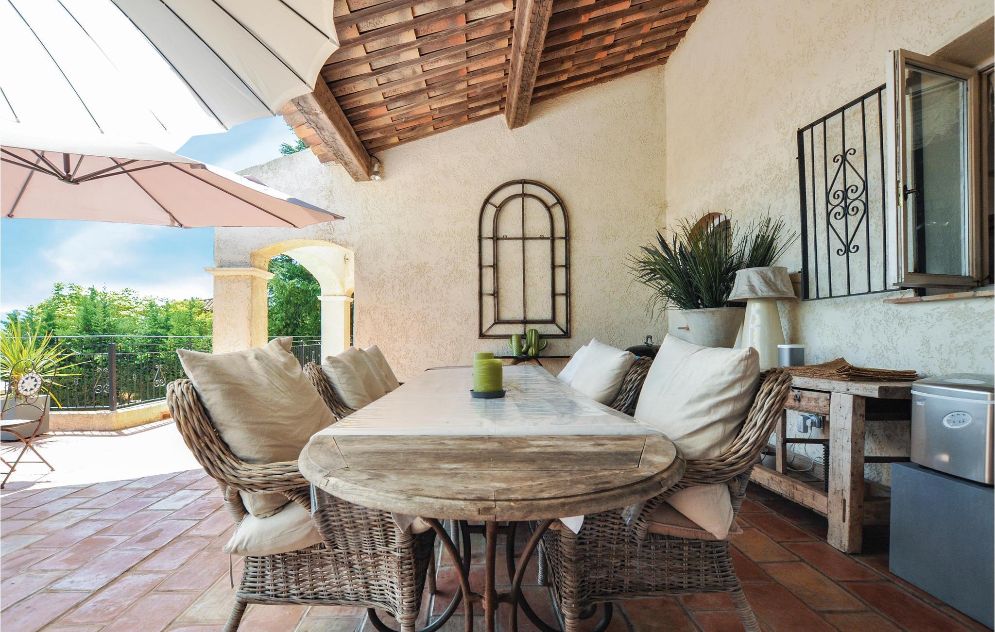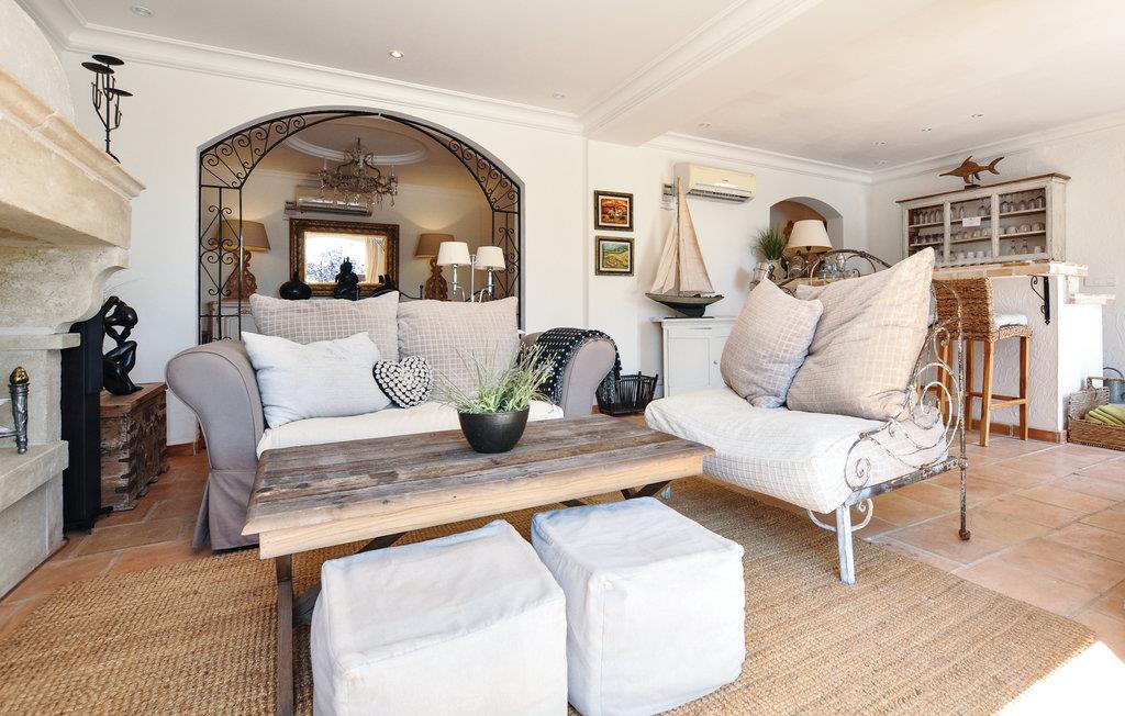 Denne villa, der er indrettet i romantisk landstedsstil, byder jer velkommen til en høj beliggenhed med en storslået udsigt, der strækker sig helt til Cannes-bugten. Det smukt designede interiør byder op en behagelig stemning. Snak over afslappede måltider, tryl kulinariske lækkerier frem, og benyt de komfortable sofaer til stille læsning eller sjove spilleaftener.