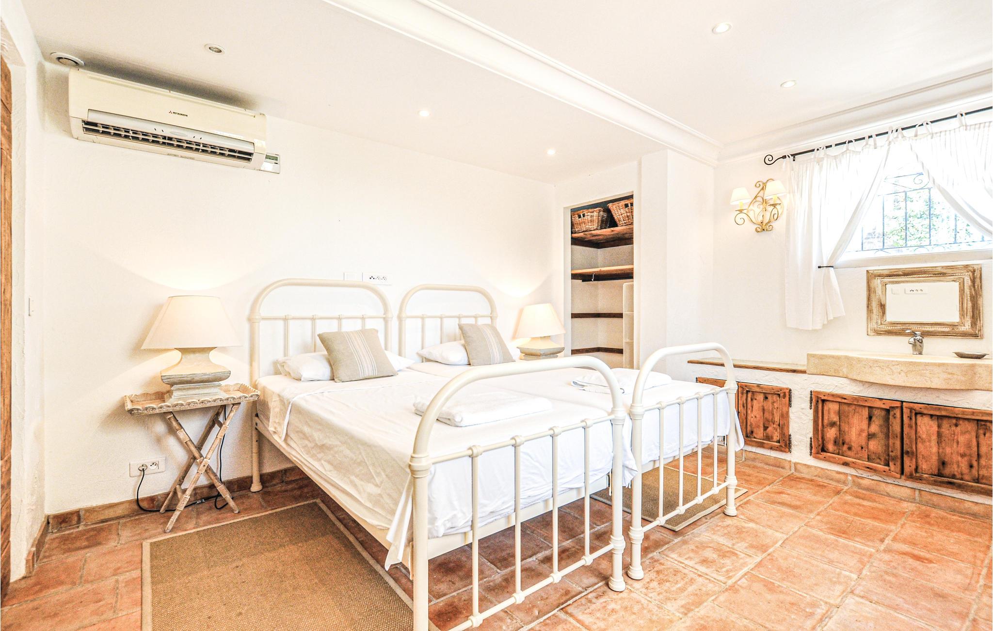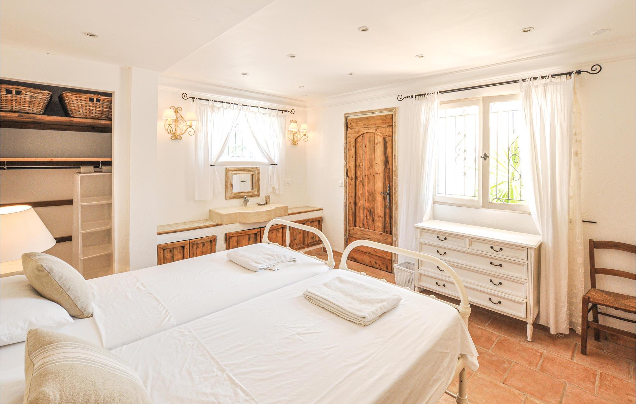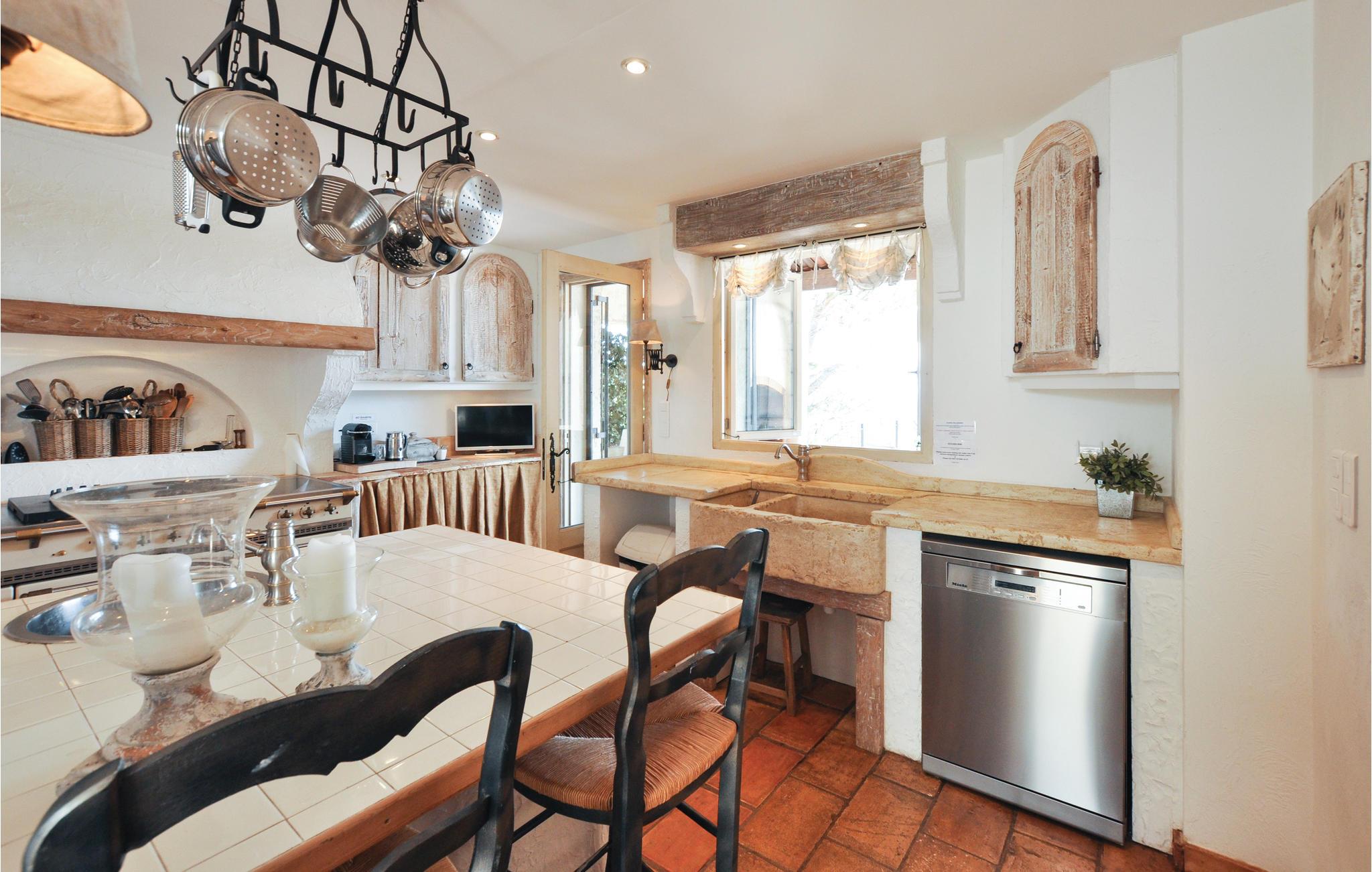 Denne villa, der er indrettet i romantisk landstedsstil, byder jer velkommen til en høj beliggenhed med en storslået udsigt, der strækker sig helt til Cannes-bugten. Det smukt designede interiør byder op en behagelig stemning. Snak over afslappede måltider, tryl kulinariske lækkerier frem, og benyt de komfortable sofaer til stille læsning eller sjove spilleaftener.