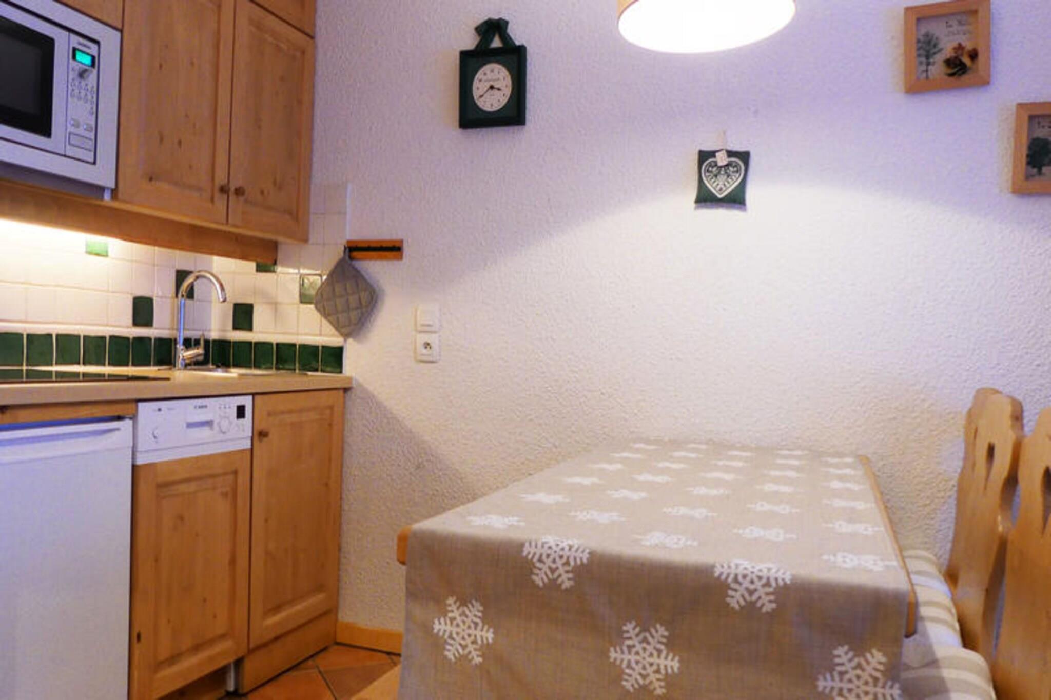 Højt over Méribels maleriske skråninger tilbyder denne charmerende lejlighed i Alpinéa-residensen et hyggeligt tilflugtssted for både skientusiaster og naturelskere. Beliggende i det rolige Laitelet-distrikt, kun 250 meter fra Hameau-indkøbscentret, er det en perfekt blanding af afsondrethed og bekvemmelighed. Forestil dig at starte dine morgener med en kort gåtur over en lille parkeringsplads for at nå den grønne piste 'La Perdrix', som ubesværet forbinder dig med skiliftens afgangssted og det store skiområde Les Trois Vallées. Denne 3-stjernede lejlighed, der er kendt for Méribel-mærket for sin charme, har komfortabel plads til op til seks gæster. Det omhyggeligt designede 30 m² store rum omfatter et soveværelse med en dobbeltseng, et bjerghjørne med køjesenge og en stue med udtrækssenge. Det åbne tekøkken er udstyret med moderne bekvemmeligheder såsom en kombineret mikrobølgeovn/grillovn, køleskab, opvaskemaskine og endda en lille vaskemaskine - perfekt til længere ophold. Efter en dag på pisterne kan du slappe af på den sydvestvendte balkon eller i den hyggelige opholdsstue med et fladskærms-tv. Lejligheden er kæledyrsvenlig, hvilket sikrer, at ingen familiemedlemmer bliver efterladt. Boligen er let tilgængelig via Chalets-svævebanen, som kører fra tidlig morgen til sen aften med gratis adgang. Bag pisterne tilbyder det nærliggende Hameau-indkøbscenter et udvalg af butikker og spisesteder, mens Méribels pulserende hjerte kun ligger en kort køretur væk. Uanset om du er her for at stå på ski, udforske alpine stier eller blot nyde den rolige bjergatmosfære, tilbyder denne lejlighed en indbydende base for uforglemmelige minder. Vælg dette charmerende tilflugtssted for dets uovertrufne beliggenhed, gennemtænkte faciliteter og løftet om en autentisk alpin oplevelse i en af ??Frankrigs mest elskede skisportssteder.