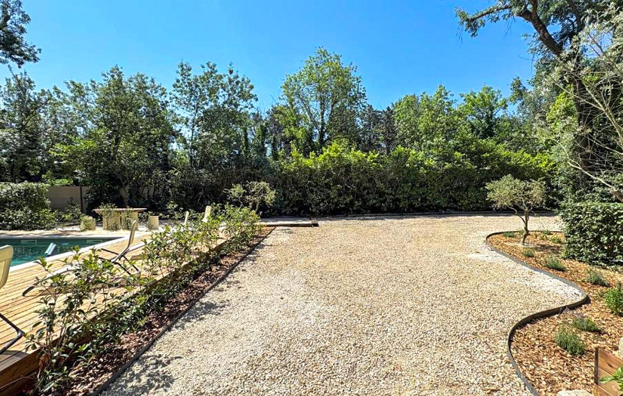 Udenfor venter en solrig oase af ro, hvor I kan nyde jeres privatliv, mens I forfrisker jer i poolen, genoplader batterierne og er vært for stemningsfulde grillaftener med vin og stearinlys. Udfordr hinanden på petanquebanen, og lad børnene have det sjovt på legepladsen.