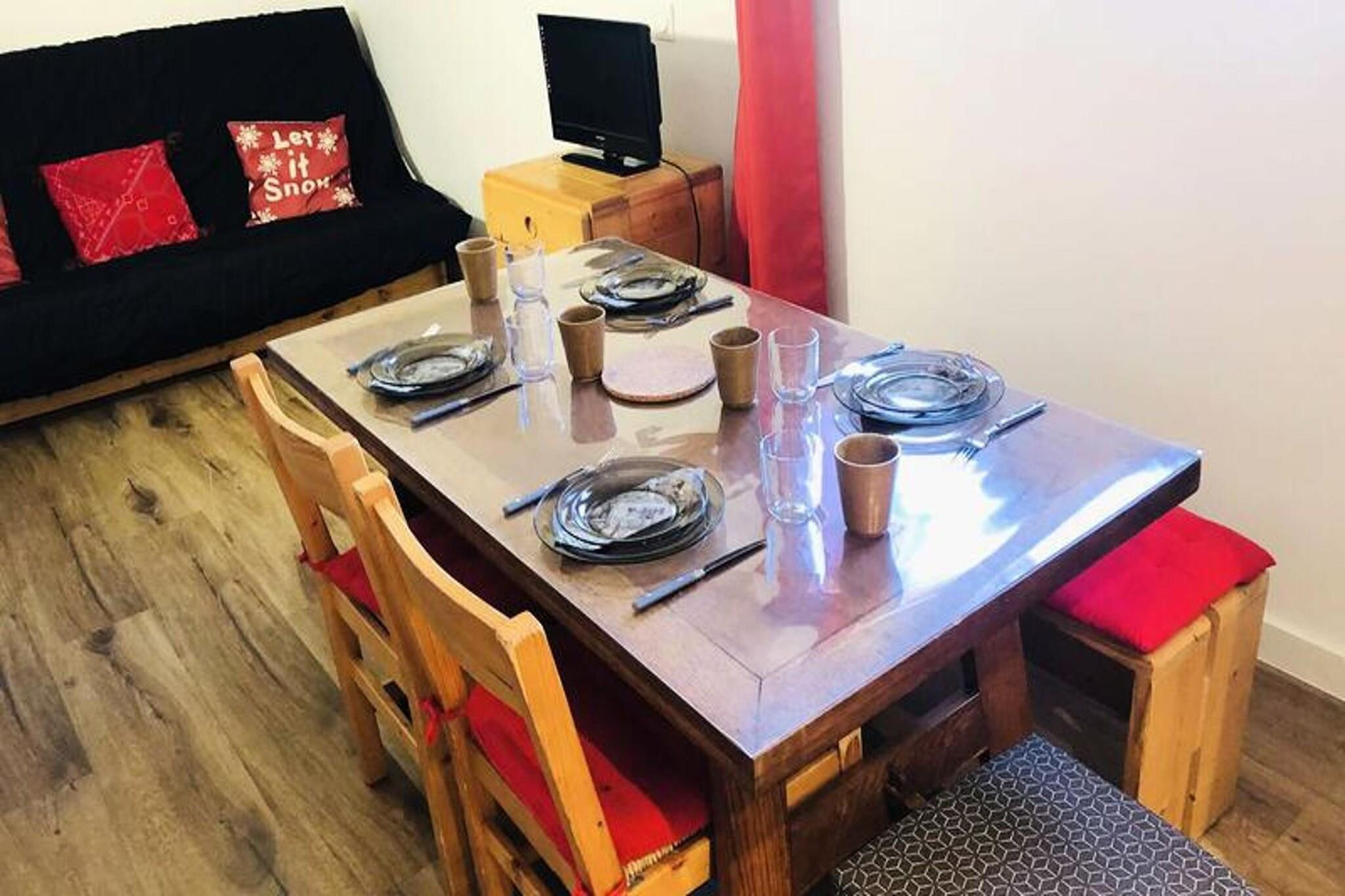 This cozy studio is perfect for 4 people, featuring a convertible sofa bed for two and two bunk beds with a pull-out bed, all equipped with blankets for a restful stay. The apartment is non-smoking and does not allow pets. Linen and cleaning services are not included, but are available for an additional cost. The tourist tax is not included in the rental price. Located at the foot of the slopes, this studio offers excellent proximity to a variety of attractions. The ESF lessons are just a stone's throw away, and the Piou Piou club is only 5 minutes away. Shops are also within walking distance, making it easy to pick up necessities or enjoy a meal. Whether you're hitting the slopes or exploring the local area, this apartment offers easy access to everything you need. The studio is equipped with an open kitchen, featuring 2 electric hotplates, a fridge, dishwasher, coffee maker, and combination oven for all your cooking needs. A raclette machine is also provided for cozy meals after a day on the slopes. The shower room with WC ensures convenience, while additional amenities like a vacuum cleaner and heating provide a comfortable and well-maintained environment throughout your stay.