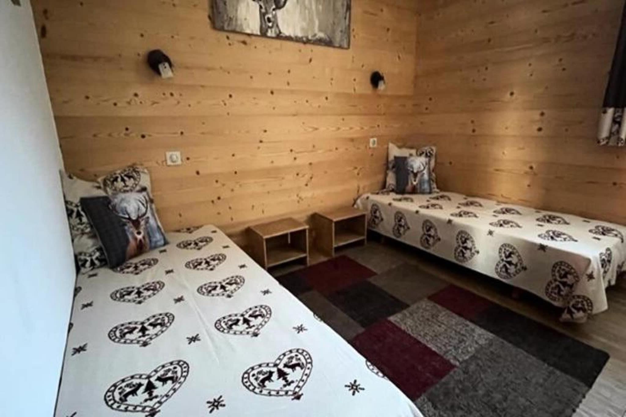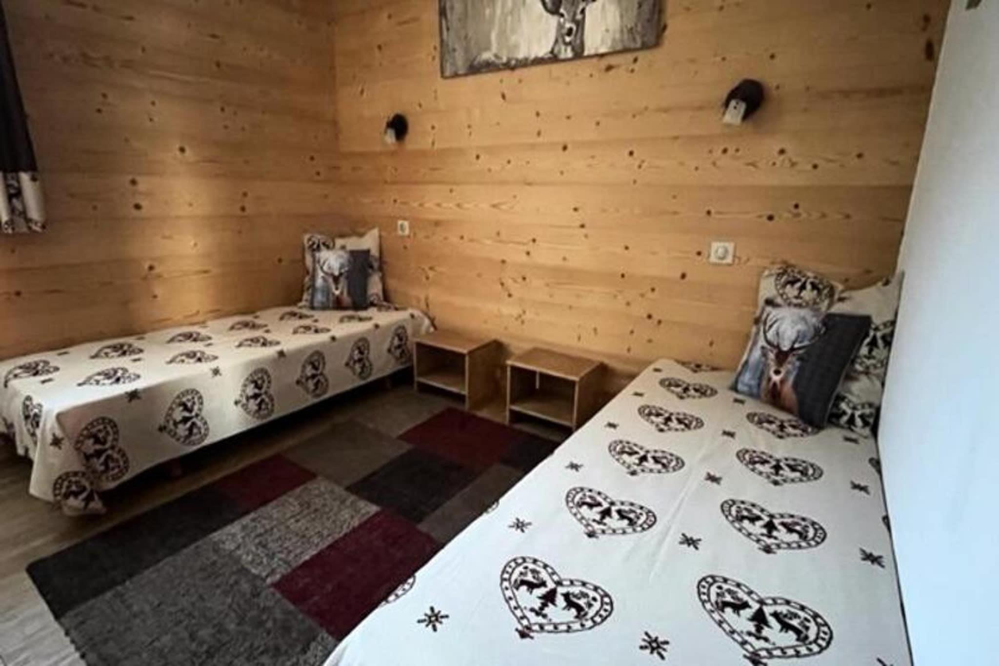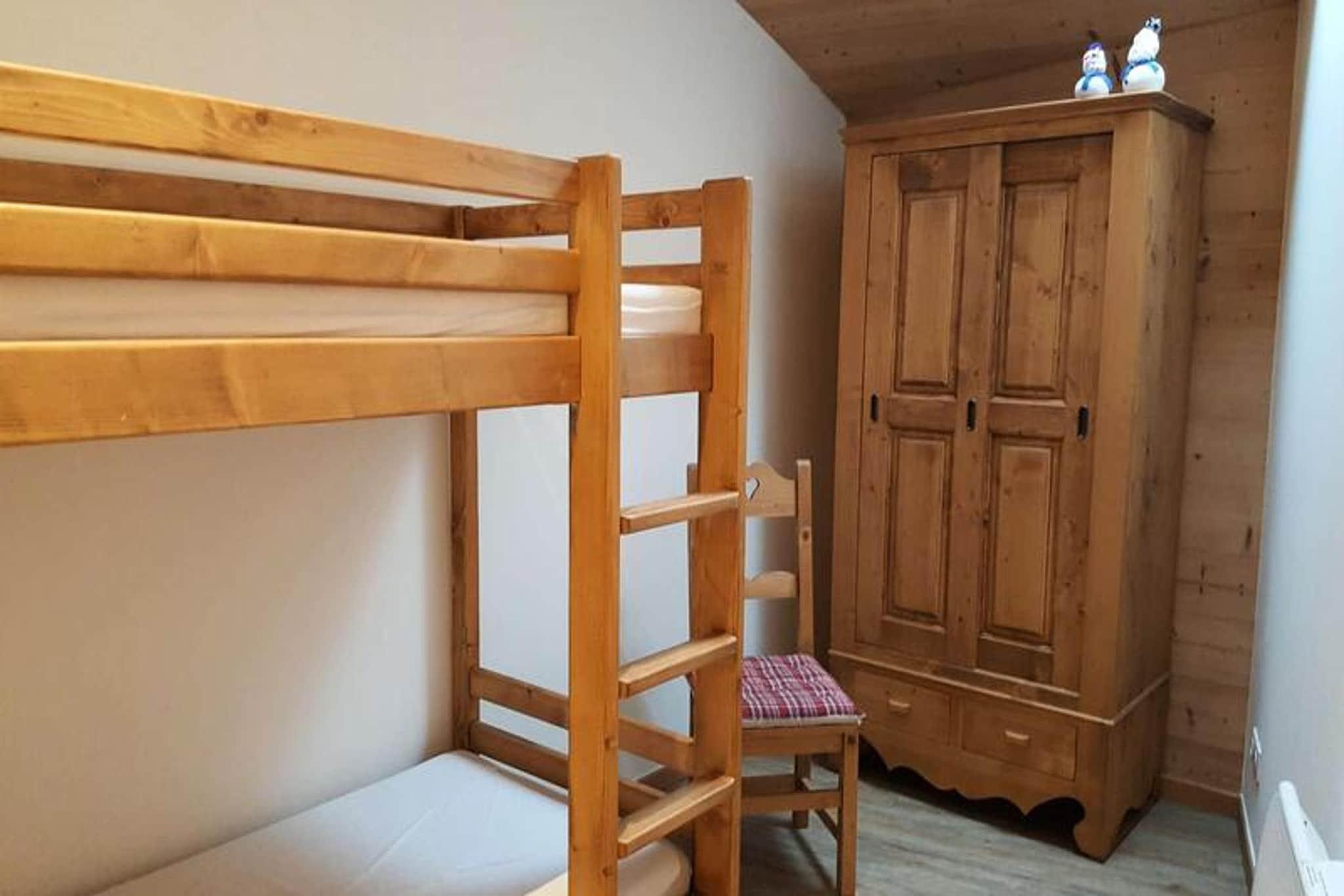 This duplex apartment, designed to accommodate 8 people, offers a comfortable and spacious stay. It features four bedrooms: two with single beds, one with bunk beds, and one with two single beds. Each bed is equipped with a single duvet for added comfort. The apartment is non-smoking, and pets are not allowed. Linen and cleaning services are not included but can be booked separately. Tourist tax is not included in the rental price. The apartment also offers three TVs, a DVD player, and free WiFi for your entertainment. Located in the hamlet of La Forêt, this apartment offers great proximity to the area's attractions. It is just 5 minutes from the ESF ski lessons and 2 minutes from the slopes, perfect for winter sports enthusiasts. The Piou Piou club, ideal for children, is 10 minutes away, while shops and restaurants are just a short 5-minute walk. This prime location ensures you have everything you need within easy reach. The apartment features an open-plan kitchen with modern appliances including induction hobs, a Siemens dishwasher, an LG microwave, and a traditional oven. A fridge-freezer combination, toaster, kettle, and coffee maker (both filter and capsule options) are also provided for your convenience. The apartment includes a combined washing machine and dryer, and the bathroom and separate toilet facilities ensure a comfortable stay. A balcony is available to enjoy the mountain views.