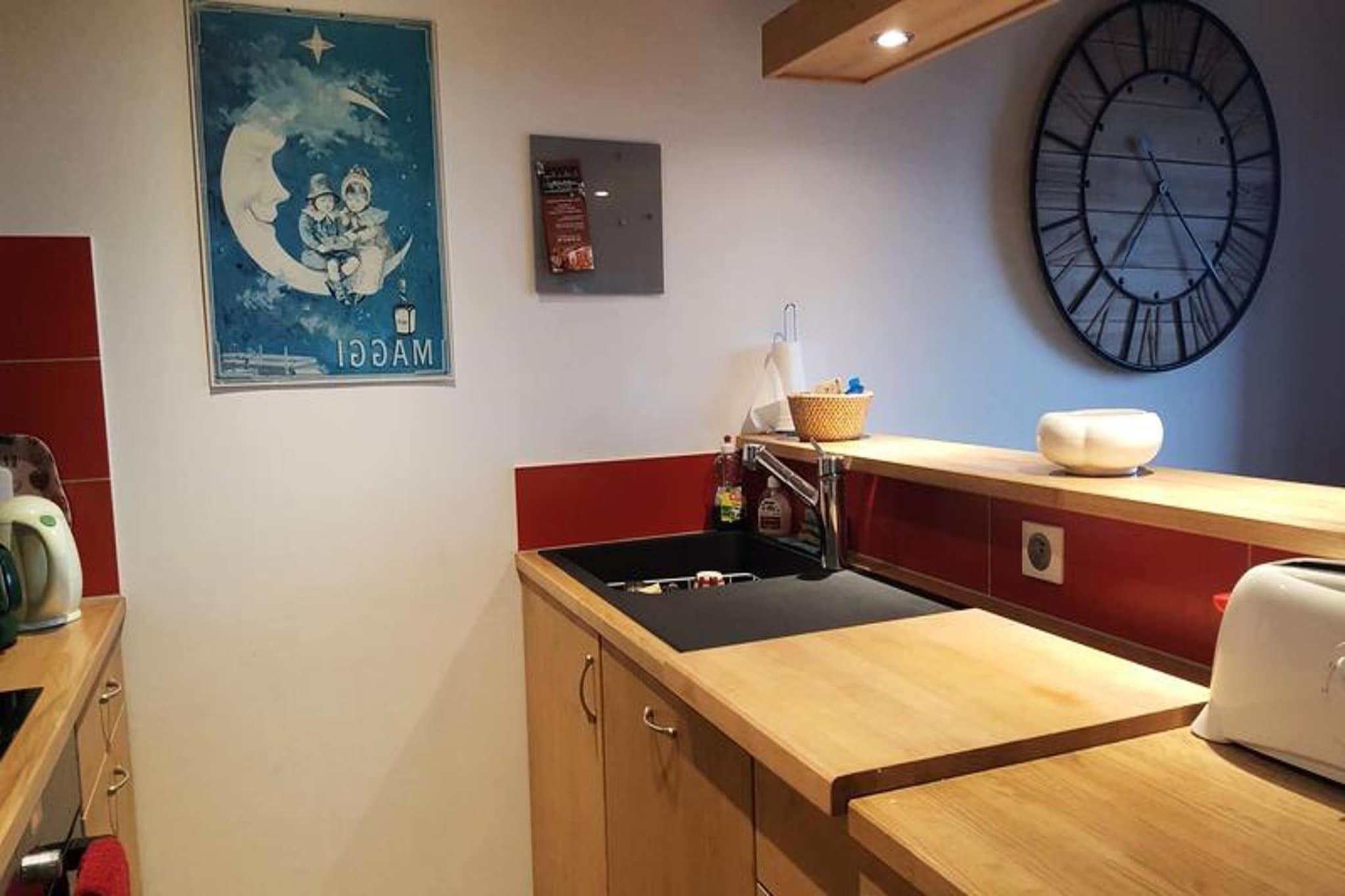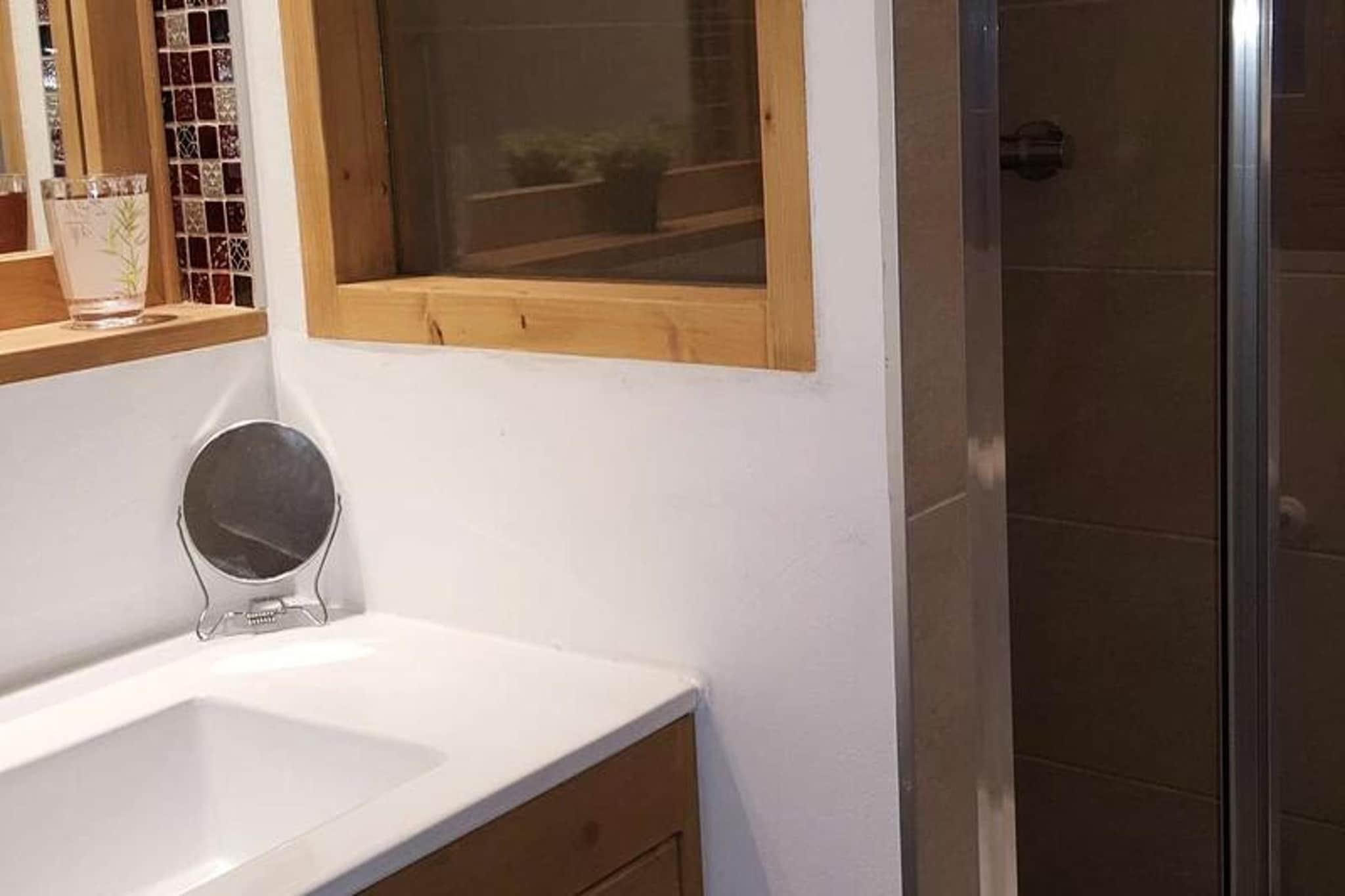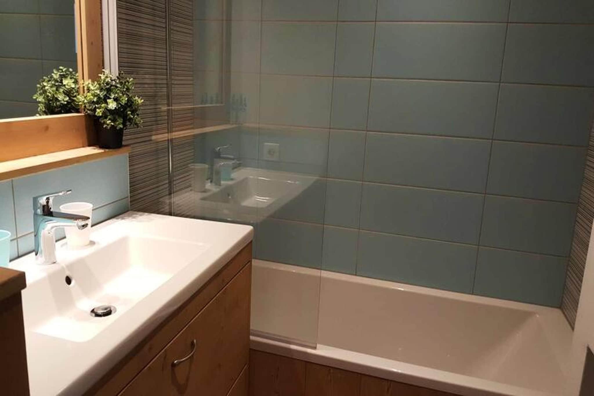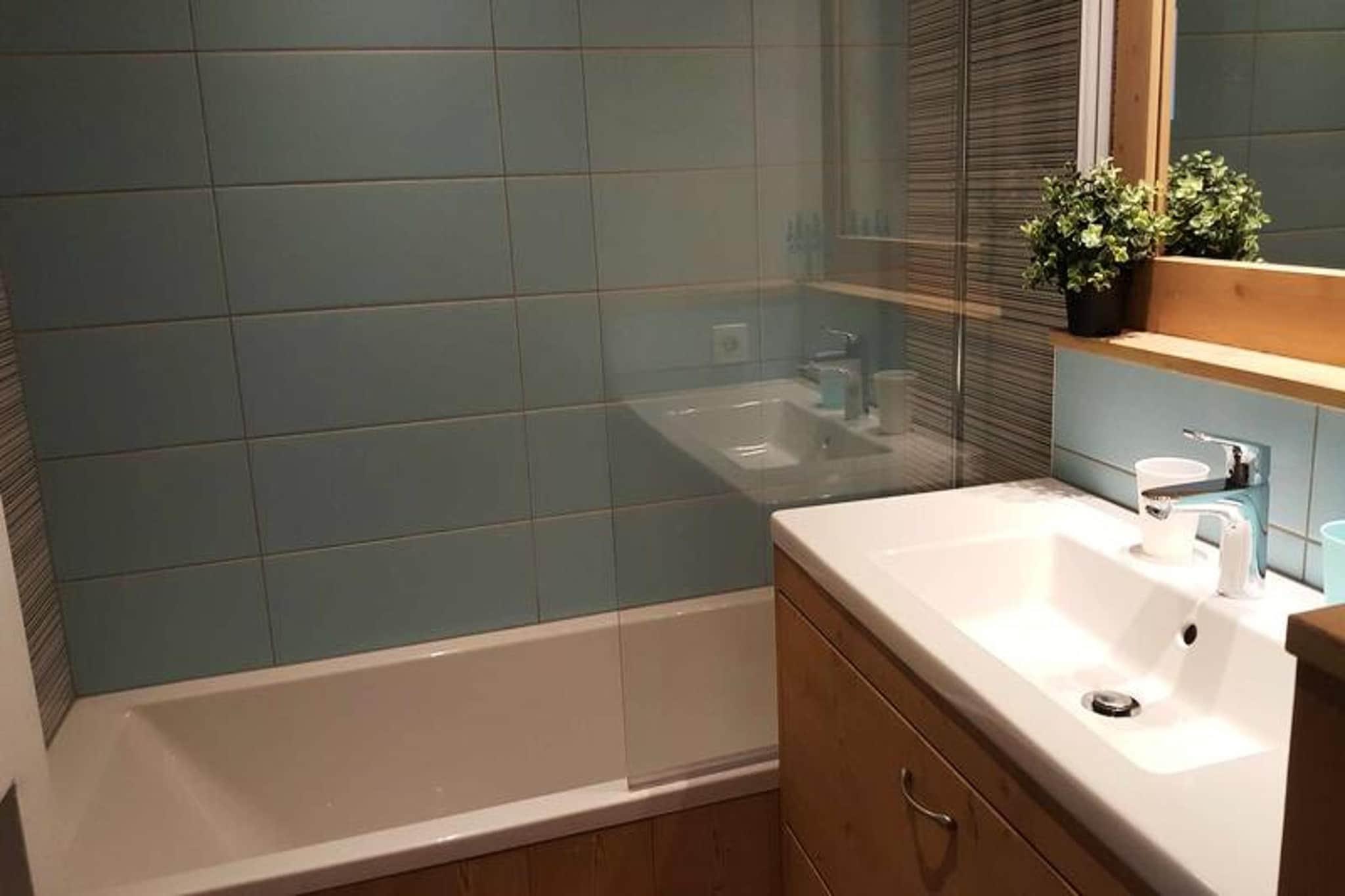 This duplex apartment, designed to accommodate 8 people, offers a comfortable and spacious stay. It features four bedrooms: two with single beds, one with bunk beds, and one with two single beds. Each bed is equipped with a single duvet for added comfort. The apartment is non-smoking, and pets are not allowed. Linen and cleaning services are not included but can be booked separately. Tourist tax is not included in the rental price. The apartment also offers three TVs, a DVD player, and free WiFi for your entertainment. Located in the hamlet of La Forêt, this apartment offers great proximity to the area's attractions. It is just 5 minutes from the ESF ski lessons and 2 minutes from the slopes, perfect for winter sports enthusiasts. The Piou Piou club, ideal for children, is 10 minutes away, while shops and restaurants are just a short 5-minute walk. This prime location ensures you have everything you need within easy reach. The apartment features an open-plan kitchen with modern appliances including induction hobs, a Siemens dishwasher, an LG microwave, and a traditional oven. A fridge-freezer combination, toaster, kettle, and coffee maker (both filter and capsule options) are also provided for your convenience. The apartment includes a combined washing machine and dryer, and the bathroom and separate toilet facilities ensure a comfortable stay. A balcony is available to enjoy the mountain views.