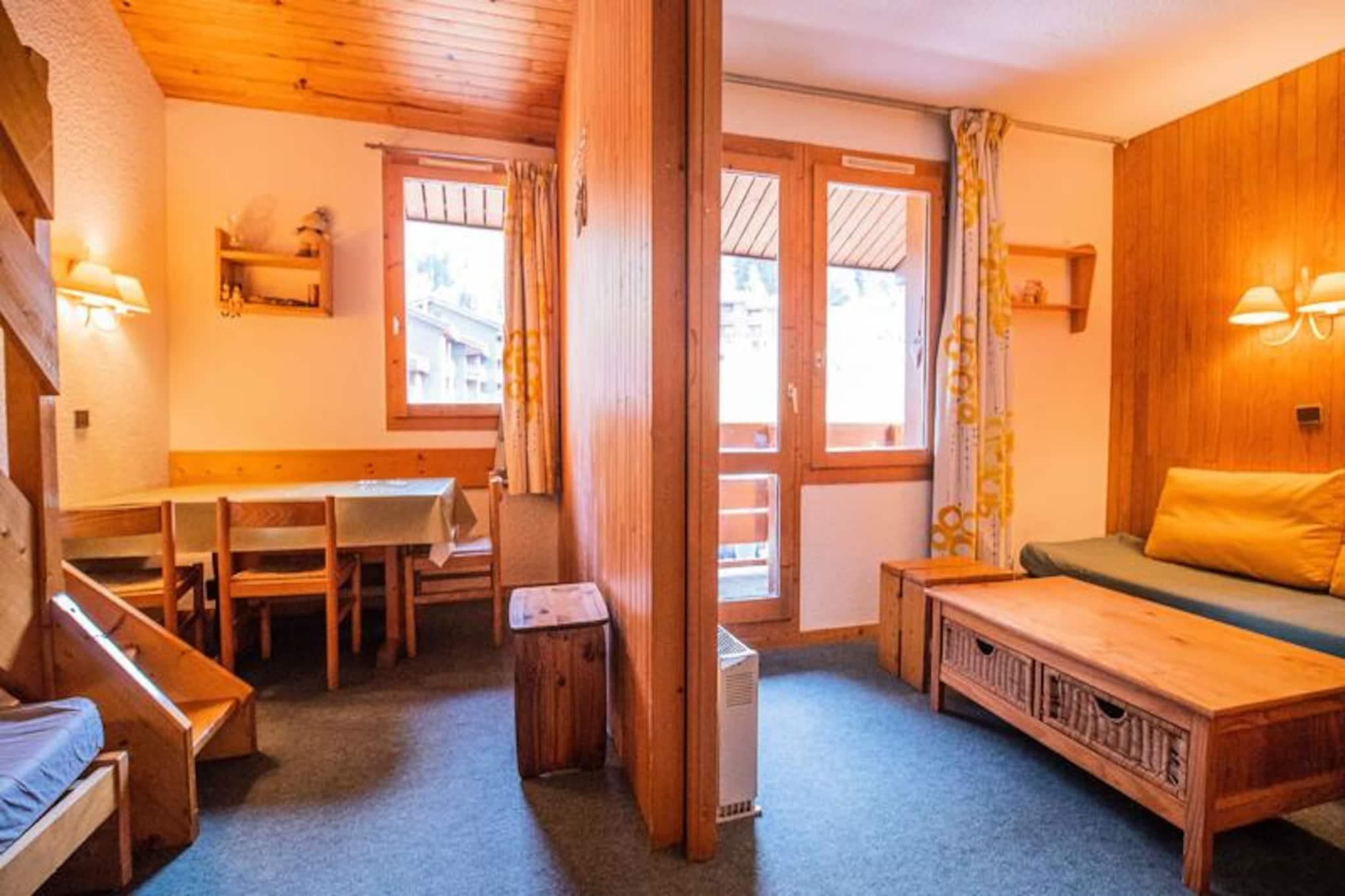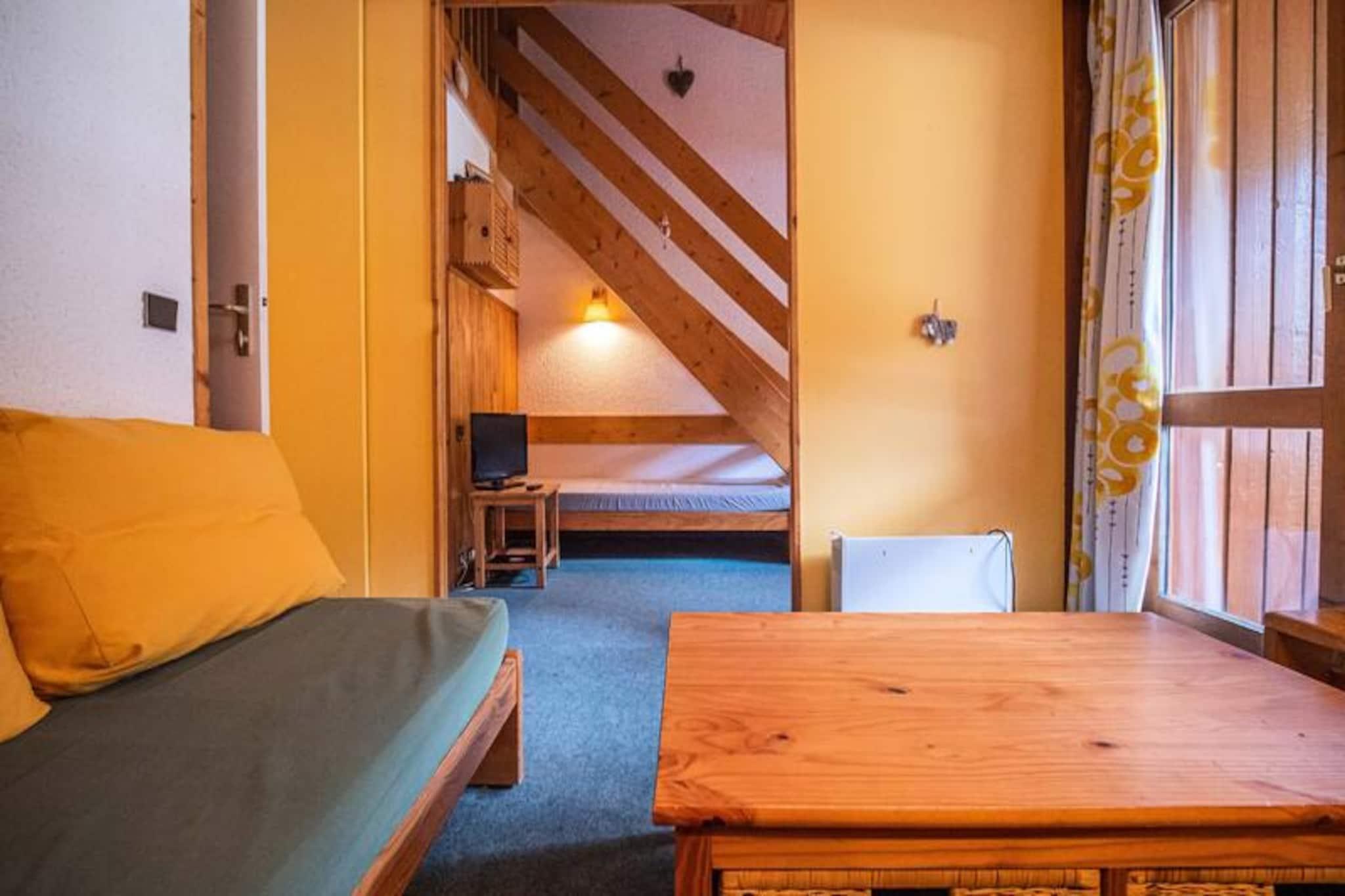 Med Valmorels fredfyldte pister strækkende foran dig, tilbyder denne charmerende studiolejlighed et hyggeligt tilflugtssted for både skientusiaster og naturelskere. Beliggende i Crève Coeur-området kan boligen prale af en uovertruffen beliggenhed ved foden af ??Pierrafort-svævebanen og overfor Telebourg-stationen, hvilket sikrer ubesværet adgang til skiskolen og Valmorels gågadecenter. Fra den østvendte balkon kan du nyde den maleriske udsigt over de snedækkede pister, en perfekt baggrund for din alpine ferie. \n\nLejligheden er designet til at rumme op til fem gæster og har en delbar stue med tre enkeltsenge og en hems med en komfortabel dobbeltseng. Det separate køkken er udstyret med moderne faciliteter, herunder opvaskemaskine, keramisk kogeplade, mikrobølgeovn og miniovn, hvilket gør det nemt at tilberede solide måltider efter en dag på pisterne. Et skiskab sikrer bekvemmelighed, mens den kæledyrsvenlige politik giver dig mulighed for at tage dine pelsede venner med på eventyret. Bemærk venligst, at Wi-Fi ikke er inkluderet, og yderligere tjenester såsom slutrengøring og sengetøj kan bookes på forhånd. \n\nCrève Coeur-området er ideelt forbundet med feriestedets centrum og landsbyen Mottet via Télébourg-svævebanen. Basisbutikker, herunder et bageri, et minimarked og en sportsbutik, er inden for rækkevidde, mens der er betalt parkering ved foden af ??boligen. Uanset om du er her for at køre gennem uberørt puddersne eller udforske de naturskønne stier om sommeren, er denne lejlighed den perfekte base for uforglemmelige alpine minder.