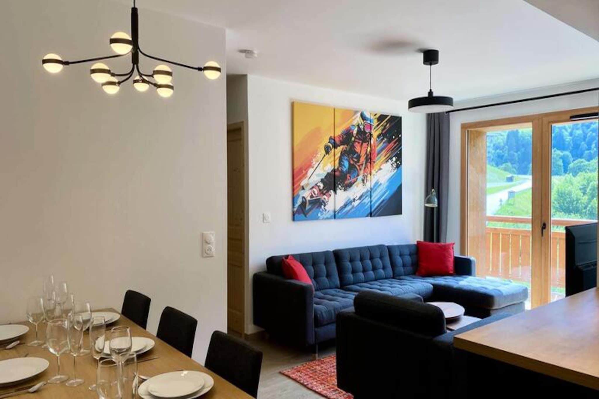 I den fredfyldte landsby Le Crey, kun få minutter fra det pulserende skisportssted Valmorel, er denne helt nye lejlighed et paradis af moderne komfort og alpin charme. Beliggende på anden sal i den prestigefyldte Résidence Le Roc, tilbyder den et fredeligt tilflugtssted med betagende udsigt over bjergene og ski-in/ski-out bekvemmeligheder, perfekt til familier eller grupper, der søger en uforglemmelig ferie i de franske alper. Træd indenfor og oplev et smagfuldt designet opholdsrum, der problemfrit blander stil og funktionalitet. Den åbne planløsning har et fuldt udstyret køkken, en hyggelig spiseplads og en indbydende stue, alt sammen badet i naturligt lys. To elegante soveværelser med kingsize-senge og private balkoner giver en rolig tilflugtssted, mens et tredje soveværelse med køjesenge er ideelt til børn eller ekstra gæster. Lejligheden kan også prale af et brusebad, et badeværelse og et separat toilet, hvilket sikrer komfort og privatliv for alle. Praktiske detaljer som et stort opbevaringsrum og sikker cykelopbevaring til op til seks cykler gør den til et alsidigt valg til både vinter- og sommerophold. Residensen tilbyder uovertruffen bekvemmelighed med ski-in/ski-out adgang til pisterne via to på hinanden følgende skilifte. For dem, der ønsker at udforske det livlige Valmorel-resort, kører der gratis shuttlebusser fra tidlig morgen til midnat, med et stoppested bekvemt placeret ved foden af ??ejendommen. Yderligere faciliteter inkluderer to overdækkede parkeringspladser med en ladestation, skibokse og moderne apparater såsom en Nespresso-maskine, raclettegrill og Wi-Fi. Uanset om du er her for at grave dig gennem uberørt sne, vandre på naturskønne stier eller blot nyde den alpine ro, er denne lejlighed din indgang til det bedste af Valmorel. Oplev den perfekte balance mellem eventyr og afslapning i omgivelser, der føles som hjemme.