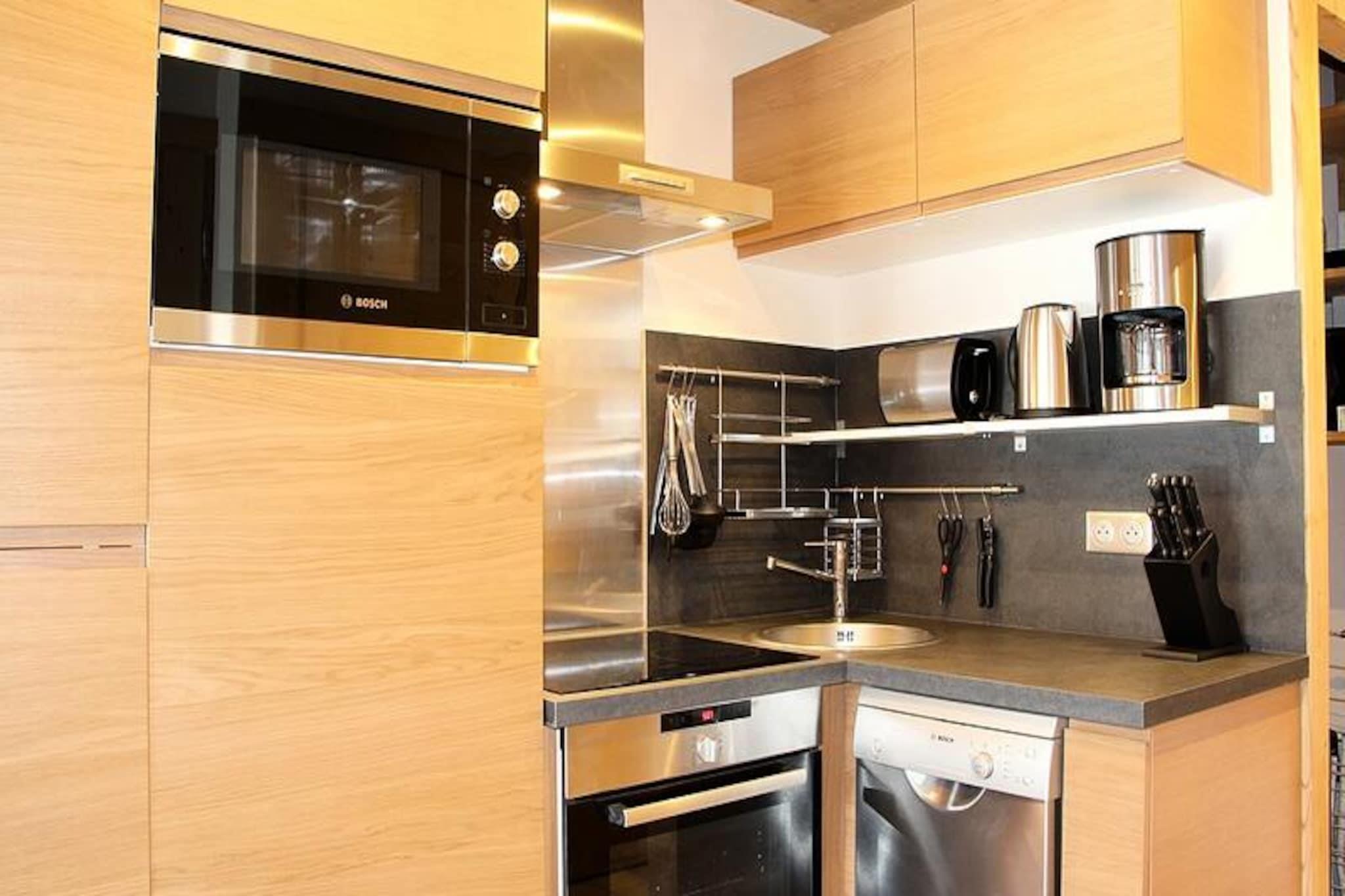 I det fredfyldte Reberty 1850-distrikt, hvor pisterne kun ligger 10 meter væk, inviterer denne charmerende og totalrenoverede lejlighed dig til at opleve magien i de franske alper. Forestil dig at træde ud på din sydvestvendte balkon, sole dig i eftermiddagssolen og indånde den friske bjergluft, mens de snedækkede tinder glimter i det fjerne. Uanset om du er her for skiløb eller sommervandreture, tilbyder dette hyggelige tilflugtssted den perfekte blanding af komfort og bekvemmelighed. Indenfor kan lejligheden prale af en gennemtænkt planløsning med moderne bekvemmeligheder designet til at forbedre dit ophold. Stuen, der er udstyret med et tv og gratis ubegrænset Wi-Fi, tilbyder et indbydende rum at slappe af efter en dag med udforskning. Soveværelset, adskilt af en skydevæg, har to enkeltsenge, mens sovealkoven tilbyder to enkeltkøjesenge, hvilket gør den ideel til familier eller små grupper. Køkkenet er fuldt udstyret med en induktionskogeplade med 4 blus, køleskab, ovn, mikrobølgeovn, opvaskemaskine og alt det nødvendige til at tilberede solide måltider. USB-porte og integrerede telefonopladere i alle værelser sikrer, at du forbliver forbundet under hele dit ophold. Ud over boligen finder du små butikker og restauranter i gåafstand, der tilbyder en smagsprøve på lokale smagsoplevelser og bekvemmeligheder. Gratis shuttlebusser forbinder dig til det pulserende centrum af La Croisette, mens Bruyères-distriktet er let tilgængeligt via en offentlig elevator og gangbro. Uanset om du udforsker pisterne eller nyder den livlige alpine atmosfære, er alt hvad du behøver kun få øjeblikke væk. Med sin førsteklasses beliggenhed, moderne komfort og varme atmosfære er denne lejlighed en port til uforglemmelige bjergminder. Oplev skønheden i Reberty 1850, og lad dette alpine paradis være dit hjem væk fra hjemmet.