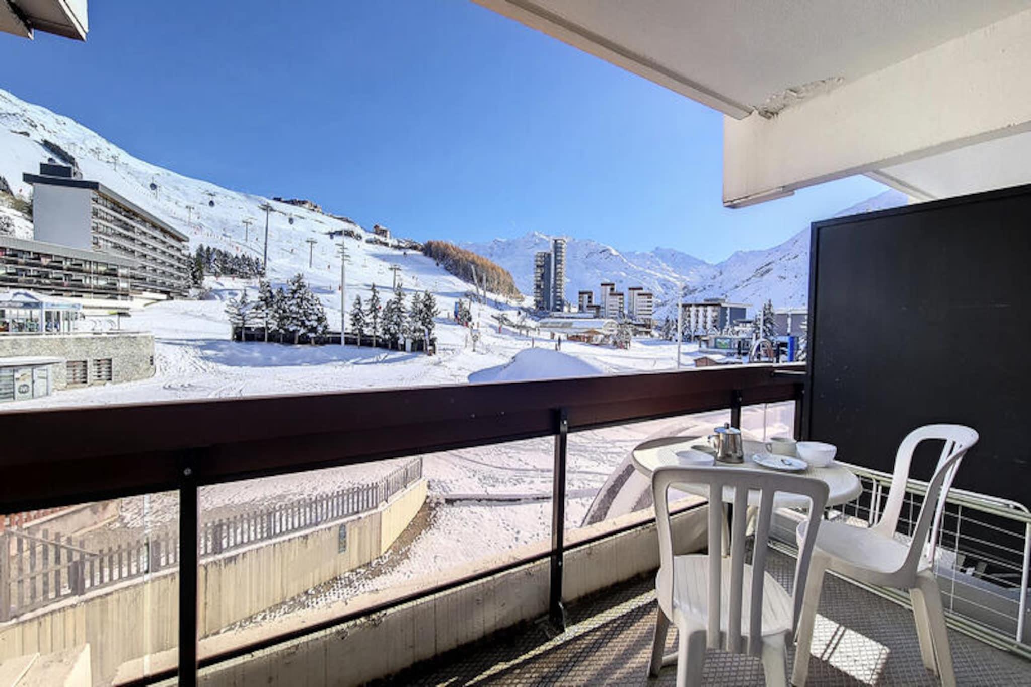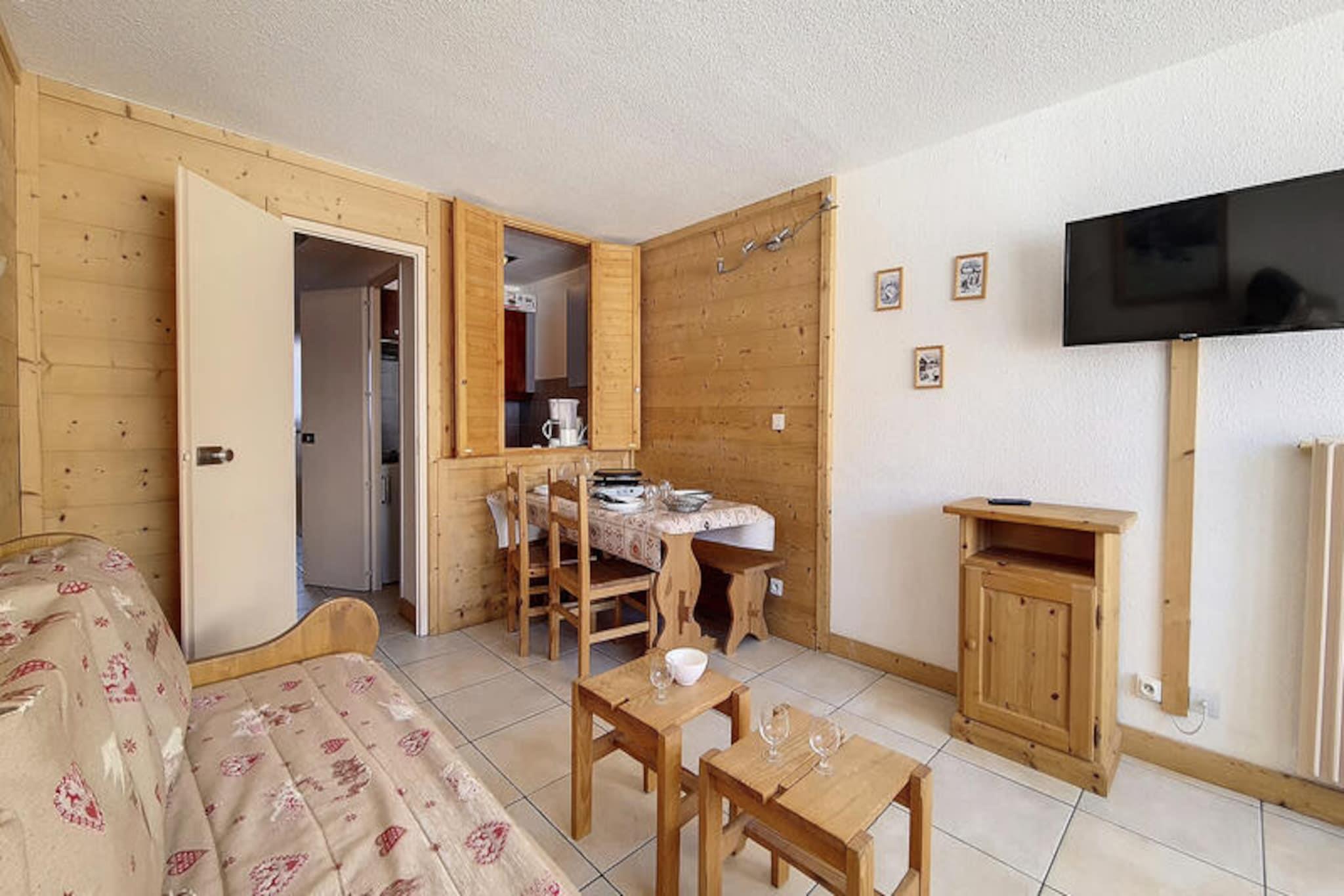 Forestil dig at vågne op til den friske bjergluft og den betagende udsigt over de franske alper fra din sydvendte balkon. Denne charmerende 2-værelses lejlighed ligger i Lac du Lou-residensen og tilbyder en problemfri blanding af komfort og bekvemmelighed, hvilket gør den til det perfekte tilflugtssted for din alpine ferie. Uanset om du er her for at klatre gennem uberørte skråninger eller blot slappe af midt i Les Menuires fredfyldte skønhed, lover denne ejendom en uforglemmelig oplevelse. \n\nTræd indenfor i denne totalrenoverede lejlighed på 38 m², der er designet til at rumme op til fem gæster. Stuen har to enkeltsenge og en udtræksseng, suppleret med et fladskærms-tv til hyggelige aftener derhjemme. Det separate soveværelse har en komfortabel dobbeltseng, der sikrer en god nats søvn. Det moderne køkken er udstyret med alt det nødvendige, herunder keramiske kogeplader, en kombineret mikrobølgeovn/ovn, et køleskab, en opvaskemaskine og små apparater som en brødrister, elkedel og kaffemaskine. Badeværelset kan prale af et elegant brusebad, og lejligheden er komplet med et separat toilet. Med klinkegulve overalt sikrer denne ikke-ryger, kæledyrsfri ejendom et rent og indbydende miljø for alle gæster.\n\nLac du Lou-residensen tilbyder direkte adgang til pisterne, med et skirum bekvemt placeret i bygningens kælder. Croisette-indkøbscentret ligger kun få skridt væk og tilbyder et udvalg af butikker og spisemuligheder. Familier vil sætte pris på daginstitutionen og legepladsen, der ligger kun 300 meter fra bygningen, mens den nærliggende busstation sikrer nem adgang til at udforske det bredere område.\n\nUanset om du er her for spændingen ved skiløb eller roen i bjergene, er denne lejlighed din port til det bedste af Les Menuires. Med sin førsteklasses beliggenhed og gennemtænkte faciliteter er det det perfekte valg til dit næste alpine eventyr.