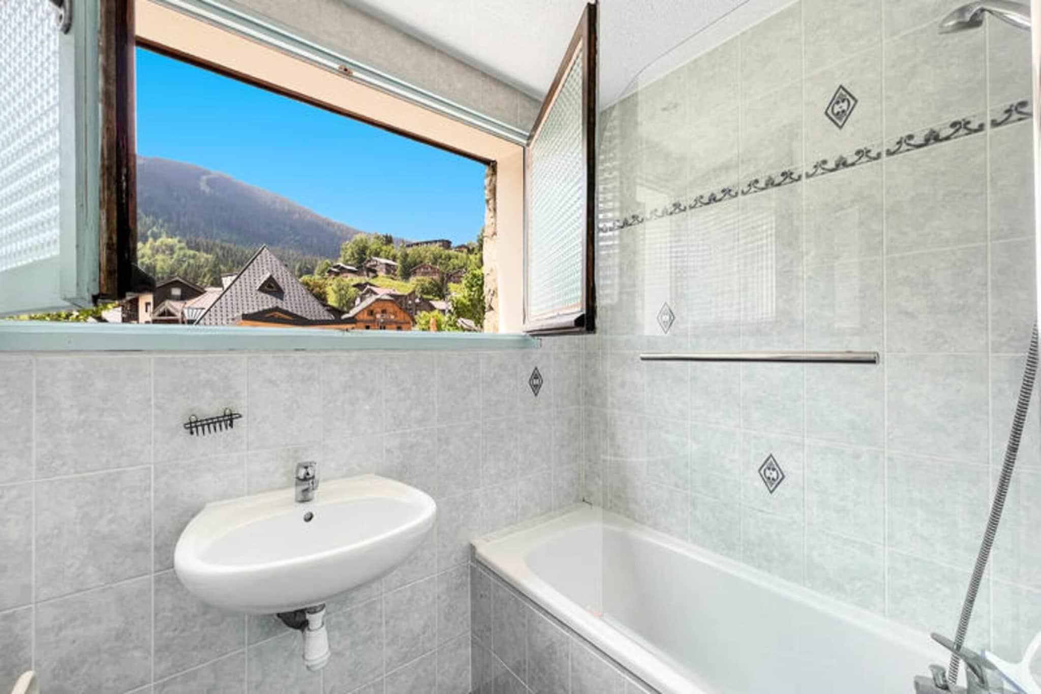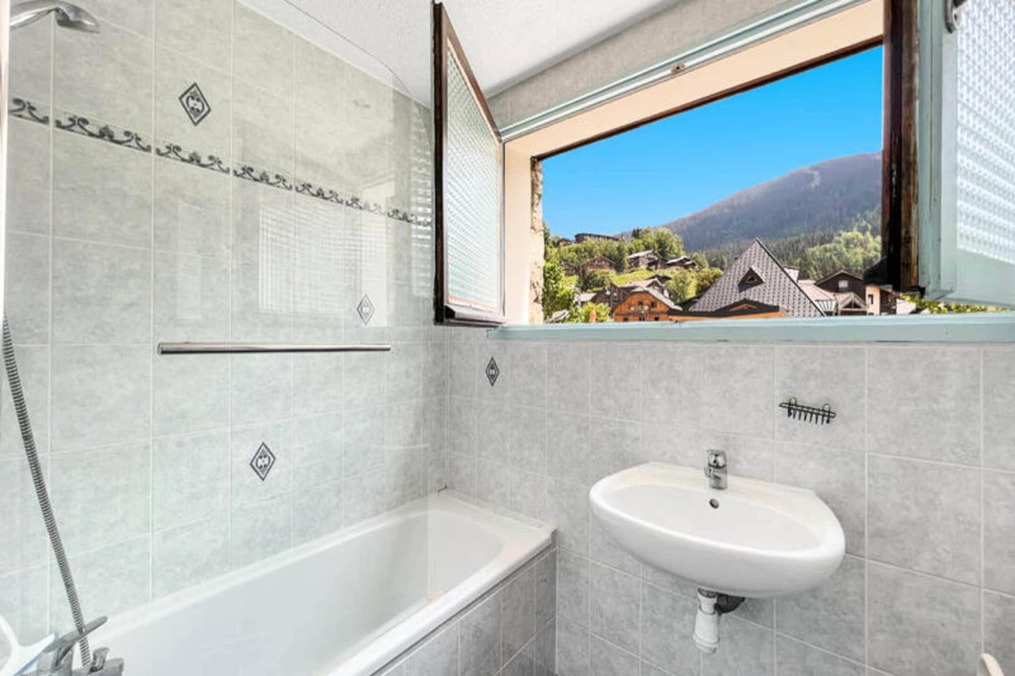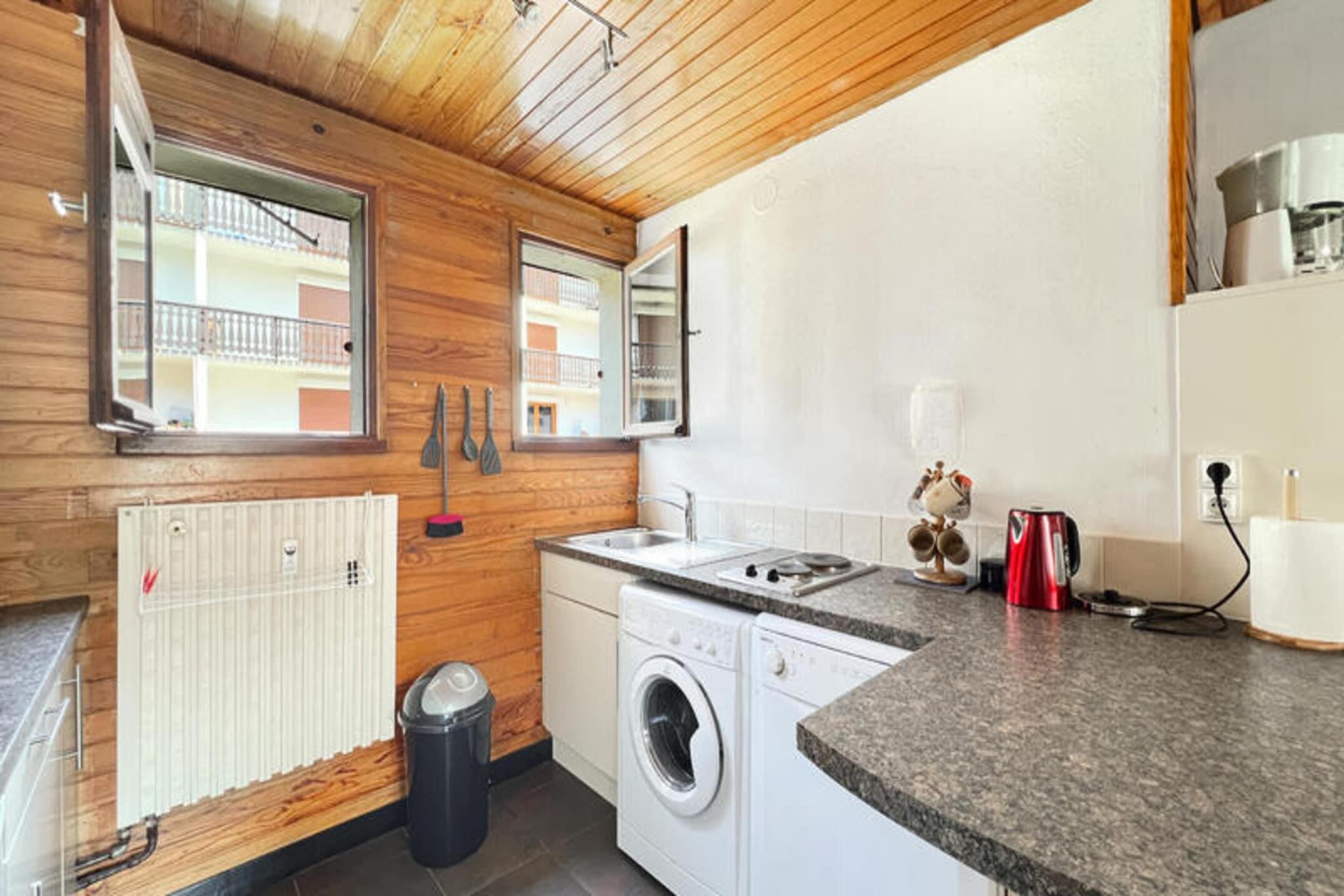 Denne rummelige lejlighed på 50 m², beliggende i "l'Airon"-boligen i hjertet af landsbyen, er perfekt til at rumme 6 til 8 personer. Det har to separate soveværelser, en stue, et tekøkken, et badeværelse og et separat toilet. Lejligheden byder på en stor sydvendt balkon med en fantastisk udsigt over Timalets-pisten og den berømte fakkelnedstigning, hvilket gør den til et ideelt sted at slappe af efter en dag på pisterne. Beliggende i centrum af landsbyen, er lejligheden i gåafstand fra alle væsentlige faciliteter, herunder butikker, restauranter og en biograf. Gæster kan nemt få adgang til skiløjperne via den gratis skibus, med stoppestedet kun 100 meter fra boligen. Placeringen er ideel for dem, der ønsker at nyde både det pulserende landsbyliv og de nærliggende udendørsaktiviteter. Lejlighedens veludstyrede køkken omfatter ovn, gaskomfur, opvaskemaskine, vaskemaskine og køleskab, hvilket giver gæsterne fleksibilitet til at tilberede deres egne måltider. Yderligere funktioner inkluderer et udendørs skiskab, placeret på den 7. dør til venstre, når du forlader boligen, for ekstra bekvemmelighed. Uanset om du ønsker at udforske landsbyen eller gå på pisterne, tilbyder denne lejlighed den perfekte base for dit ophold.