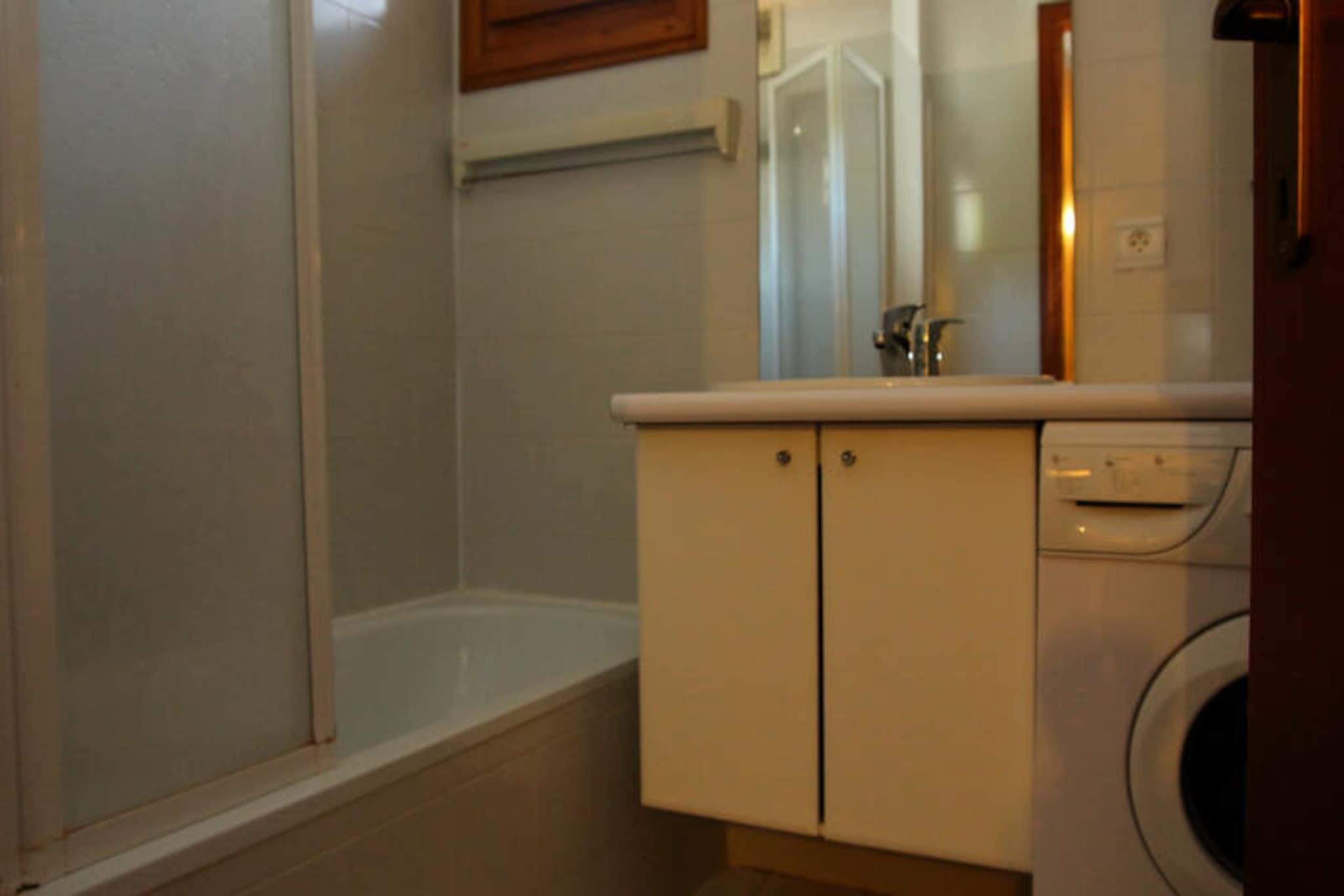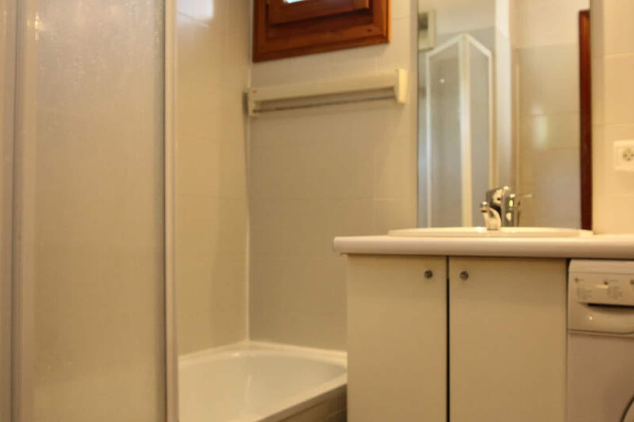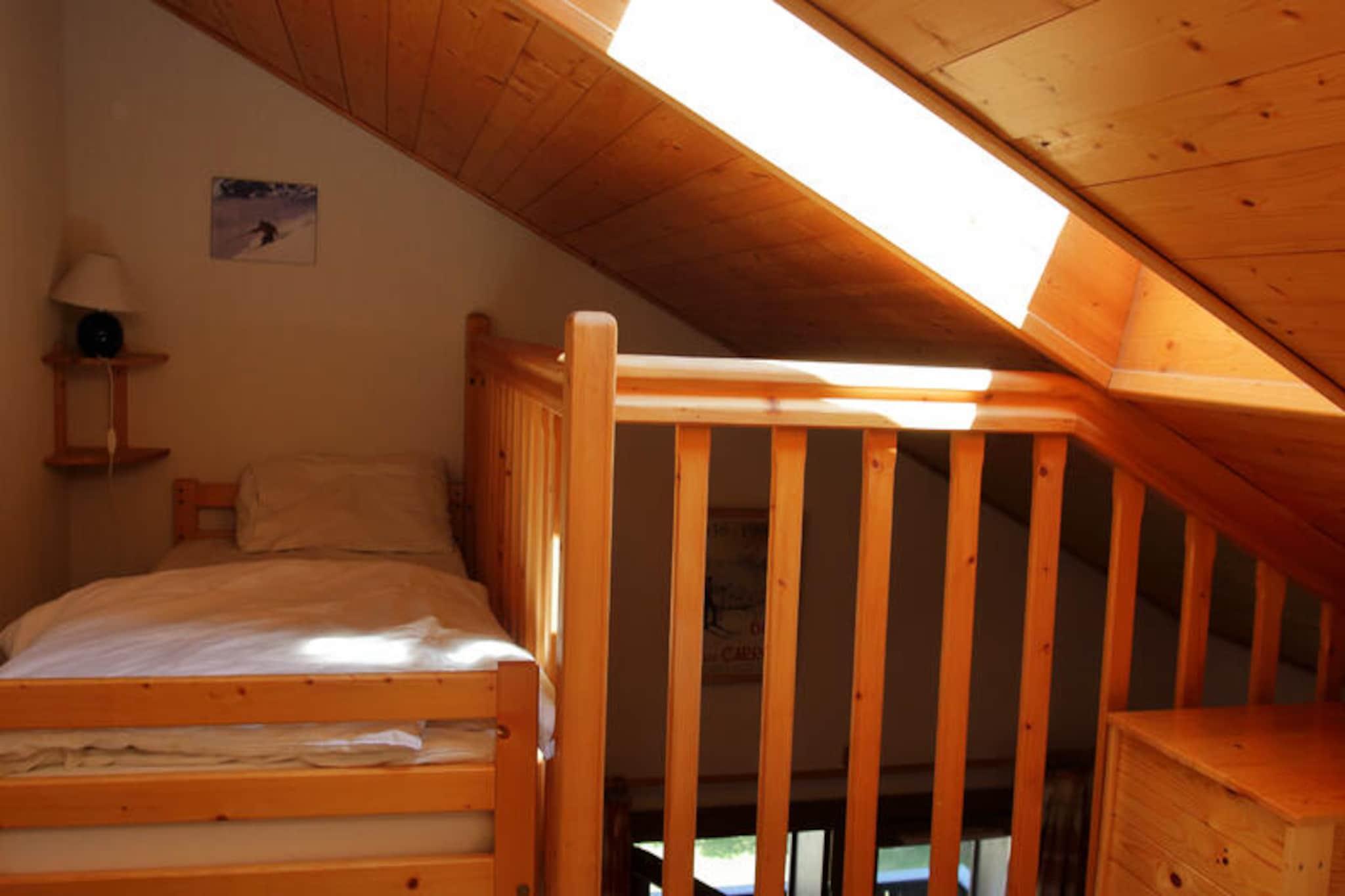 Denne rummelige lejlighed er designet til at rumme op til 6 personer med sine forskellige sovearrangementer, herunder et soveværelse med en 140 cm seng, et kabineområde med 2 køjesenge og en mezzanin med 2 enkeltsenge. Mezzaninen er tilgængelig via en stejl trappe, hvilket kan være usikkert for små børn. En balkon mod øst tilbyder udsigt over landsbyen og Timalets skråning, perfekt til at nyde det omkringliggende landskab. Lejligheden giver også en overdækket parkeringsplads i boligens kælder, hvilket sikrer bekvemmelighed. Ideelt beliggende i hjertet af landsbyen, er lejligheden kun få skridt væk fra lokale attraktioner, herunder en skøjtebane ved siden af ??bygningen. Gæsterne kan nemt få adgang til butikker, caféer og restauranter i landsbyens centrum. Boligen tilbyder en førsteklasses beliggenhed for at udforske udendørsaktiviteter, især vintersport, med pisterne i nærheden for ski- og snowboardentusiaster. Lejligheden har et veludstyret tekøkken med multifunktionsovn, emhætte, opvaskemaskine, 2 kogeplader og køleskab, så gæsterne kan tilberede måltider under deres ophold. Badeværelset er indrettet med vindue til naturligt lys, og der er separat toilet. Yderligere faciliteter omfatter et skiskab til opbevaring af udstyr, hvilket sikrer bekvemmelighed for elskere af vintersport.