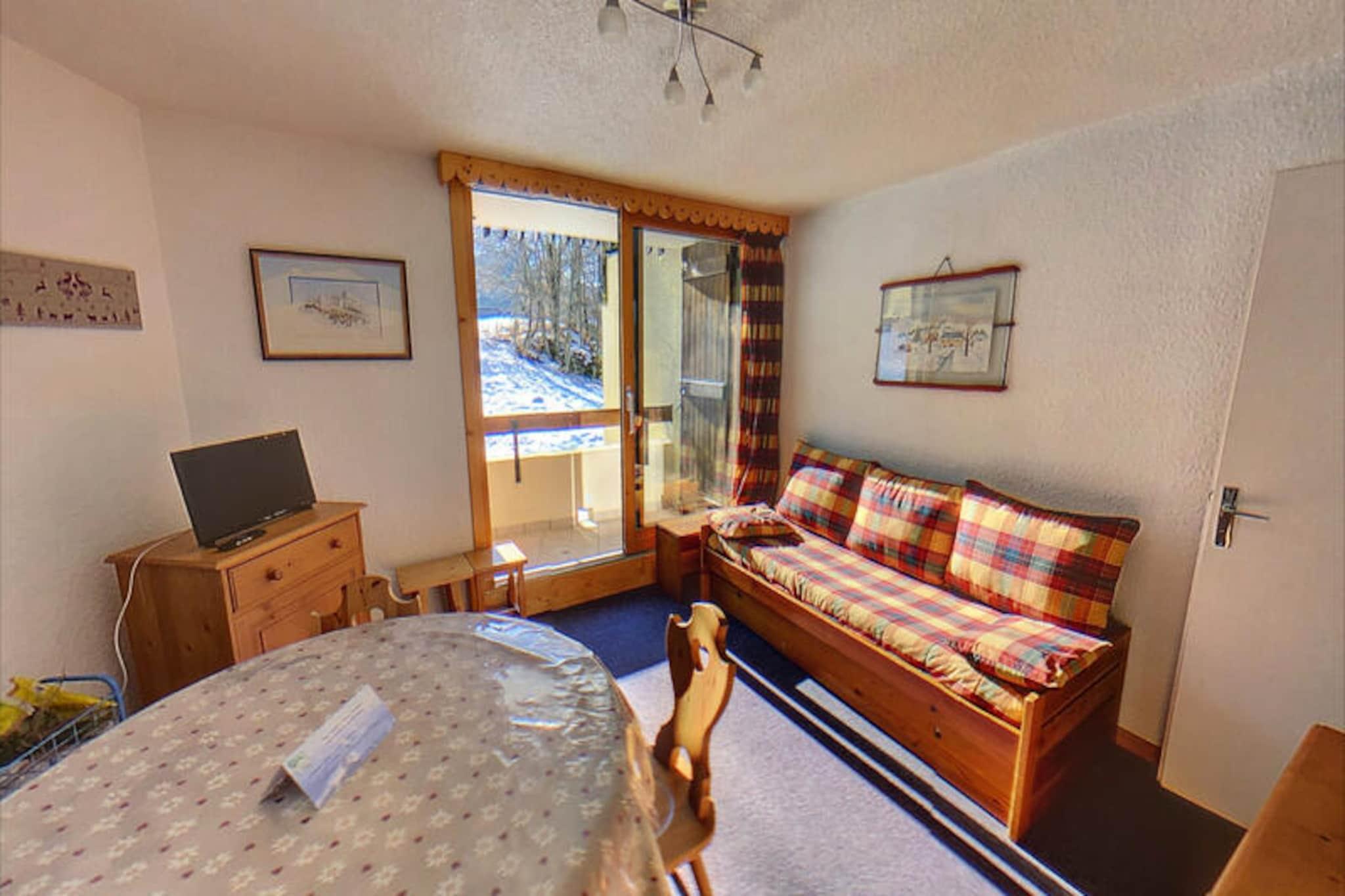 Højt over det maleriske Pré du Bois-distrikt tilbyder denne charmerende toværelseslejlighed et roligt tilflugtssted med betagende udsigt over Aravis-bjergkæden. Perfekt beliggende kun 900 meter fra landsbyens centrum kombinerer den ro med bekvemmelighed, hvilket gør den til et ideelt valg for familier eller små grupper, der søger en mindeværdig alpin ferie. Forestil dig at vågne op til solopgangens gyldne nuancer på den sydøstvendte balkon og nippe til din morgenkaffe, mens de majestætiske tinder udfolder sig foran dig. Uanset om du er her for vinterskiløb eller sommereventyr, lover denne bolig et uforglemmeligt ophold. \n\nIndvendigt er lejligheden omhyggeligt designet til at rumme op til seks gæster. Indretningen inkluderer et hyggeligt soveværelse med en dobbeltseng, en bjergalkove med køjesenge og en stue med to udtrækssenge. Tekøkkenet er fuldt udstyret med moderne apparater, herunder mikrobølgeovn, ovn, vaskemaskine og keramiske kogeplader, hvilket sikrer, at du har alt, hvad du behøver for et behageligt ophold. Et separat badeværelse og toilet bidrager til bekvemmeligheden, mens skiboksen giver nem opbevaring af dit udstyr. \n\nBeliggenheden er et sandt højdepunkt, med et skibusstoppested kun 100 meter væk, der tilbyder hurtig adgang til pisterne og landsbyens centrum. For dem, der foretrækker at gå, gør den sikre og veloplyste vej den 10 minutters gåtur til landsbyen til en behagelig oplevelse. Det nærliggende fritidscenter, kun 300 meter væk, kan prale af en opvarmet swimmingpool, tennisbaner og en trætop-eventyrbane, der sikrer sjov for alle aldre i både sommer- og vintersæsonen. \n\nUanset om du søger spændende skiløjper, naturskønne vandreture eller blot en fredelig flugt omgivet af naturen, er denne lejlighed din port til det bedste af de franske alper. Lad charmen ved Pré du Bois og Aravis-bjergenes tiltrækningskraft skabe varige minder til dit alpine eventyr.