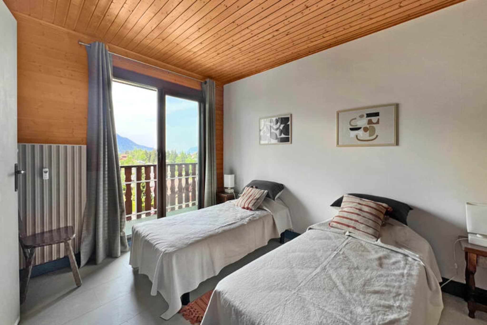 Denne lejlighed i forskudt plan ligger i residensen "Les Aravis" i landsbyens centrum. På 3. sal (ingen elevator) med et areal på 60 m² tilbyder den tre separate soveområder med plads til 6 personer, med to soveværelser adskilt fra stuen, et separat køkken, et brusebad, et separat toilet og en sydvendt altan. Ideelt beliggende med adgang til alle landsbyens faciliteter: butikker, restauranter, biograf osv. Adgang til pisterne sker via en gratis skibus, der stopper mindre end 100 meter fra residensen. Plads til: 6 Soveværelse 1: 1 dobbeltseng Soveværelse 2: 2 enkeltsenge (3 trin for adgang) Stue (TV): 2 lænestole Opholdsstue: 2 enkeltsenge (opholdsstuen kan adskilles med to skydedøre) Køkken (ovn, mikrobølgeovn, opvaskemaskine, køleskab med fryser, vaskemaskine) Badeværelse - Separat toilet Skiboks: Kælder - 1. etage til højre + Parkeringsplads nr. 14 (yderst til venstre) Yderligere ydelser betales på stedet: Depositum (refunderbart) EURO225,00 pr. booking
