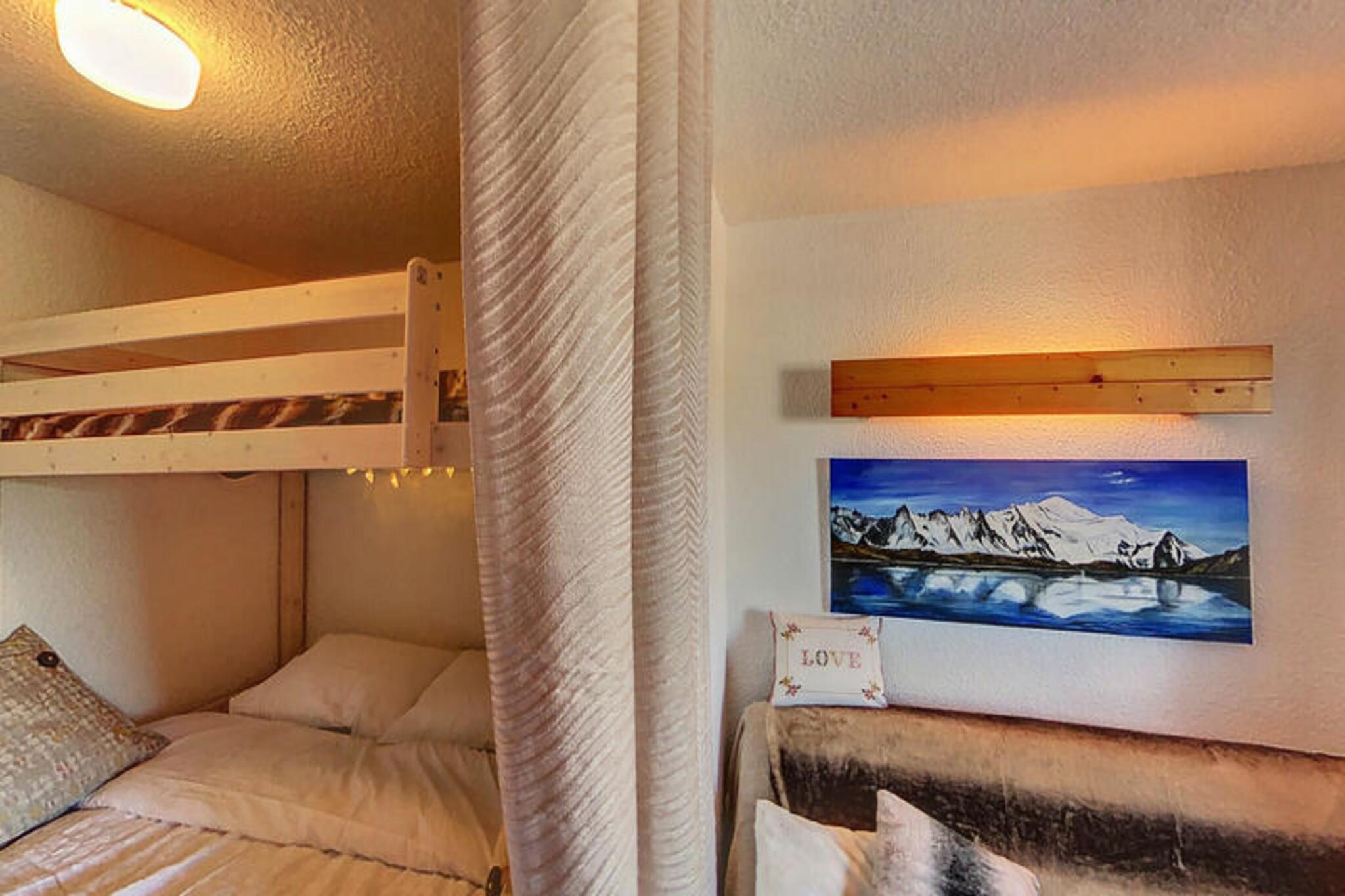 Midt i Les Carroz' rolige charme tilbyder denne smukt møblerede studiolejlighed et hyggeligt tilflugtssted kun en kort gåtur fra landsbyens centrum. Med sin vestvendte balkon kan du sole dig i eftermiddagssolen, mens du nyder udsigten over de maleriske omgivelser. Denne ejendom har en perfekt beliggenhed kun 300 meter fra landsbyens centrum og blot 80 meter fra shuttlebusstoppestedet og sikrer nem adgang til pisterne og lokale faciliteter, hvilket gør den til et ideelt valg for både skiløbere og bjergentusiaster. Den dekorative pejs tilføjer et strejf af alpin varme og skaber en indbydende atmosfære under dit ophold. \n\nStudiolejligheden er designet til at rumme op til fem gæster og har en smart planløsning med en entré udstyret med indbyggede skabe, en delvist lukket sovealkove og en stue/spisestue, der problemfrit forbinder med tekøkkenet. Alkoven, adskilt af et forhæng, giver privatliv og inkluderer en enkelt køjeseng og to enkeltsenge ved siden af ??hinanden, mens stuen tilbyder en komfortabel sovesofa. Tekøkkenet er fuldt udstyret med moderne apparater, herunder ovn, køleskab, keramisk kogeplade, opvaskemaskine, vaskemaskine og mikrobølgeovn, hvilket sikrer bekvemmeligheden ved at tilberede måltider efter en dag med eventyr. \n\nLes Carroz er kendt for sin pulserende landsbyatmosfære og nærhed til skiområdet Grand Massif, der tilbyder uendelige muligheder for skiløb, snowboarding og vandreture. Det nærliggende shuttlebusstoppested gør det nemt at udforske pisterne, mens landsbyens centrum kan prale af charmerende butikker, restauranter og afterski-muligheder. Uanset om du besøger stedet om vinteren eller sommeren, lover regionens naturlige skønhed og udendørsaktiviteter uforglemmelige minder. \n\nVælg dette dejlige studie for dets blanding af komfort, bekvemmelighed og autentisk alpin charme. Det er den perfekte base for at skabe dyrebare øjeblikke i de franske alper.