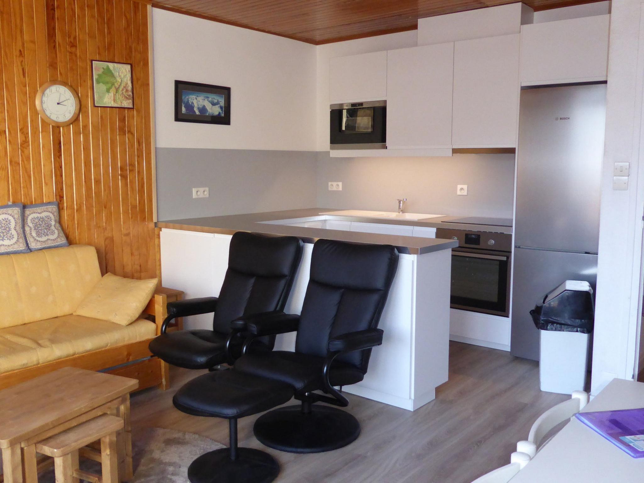 "Ecureuils B", 3-room apartment 59 m2 on 5th floor. Object suitable for 6 adults. 1 room with 1 french bed and TV. 1 room with 1 x 2 bunk beds. Living room with 2 sofabeds. Kitchen (oven, dishwasher, 4 induction hot plates, microwave, freezer). Shower/WC. Balcony. View of the mountains and the ski run. Facilities: washing machine. Please note: non-smokers only. Smoke alarm. Offer by a commercial proprietor according to Art. 155, IV, CGI 38253000543MX