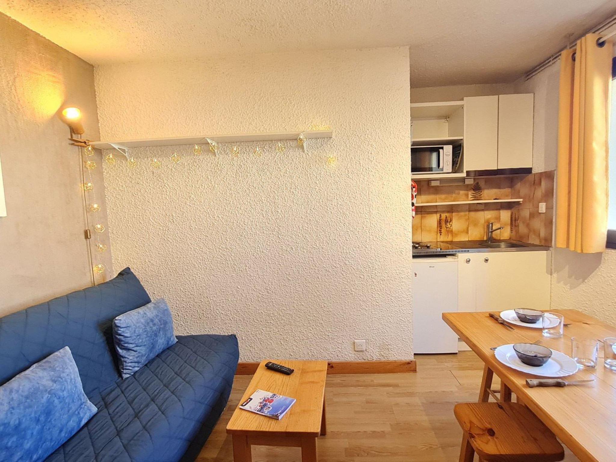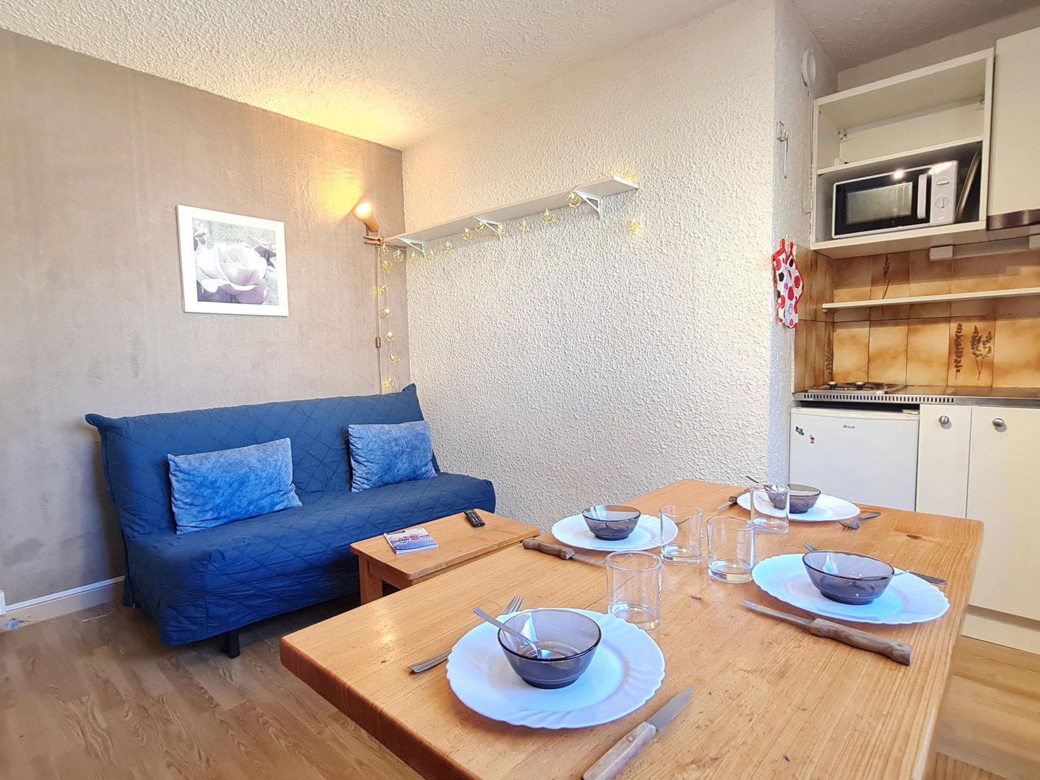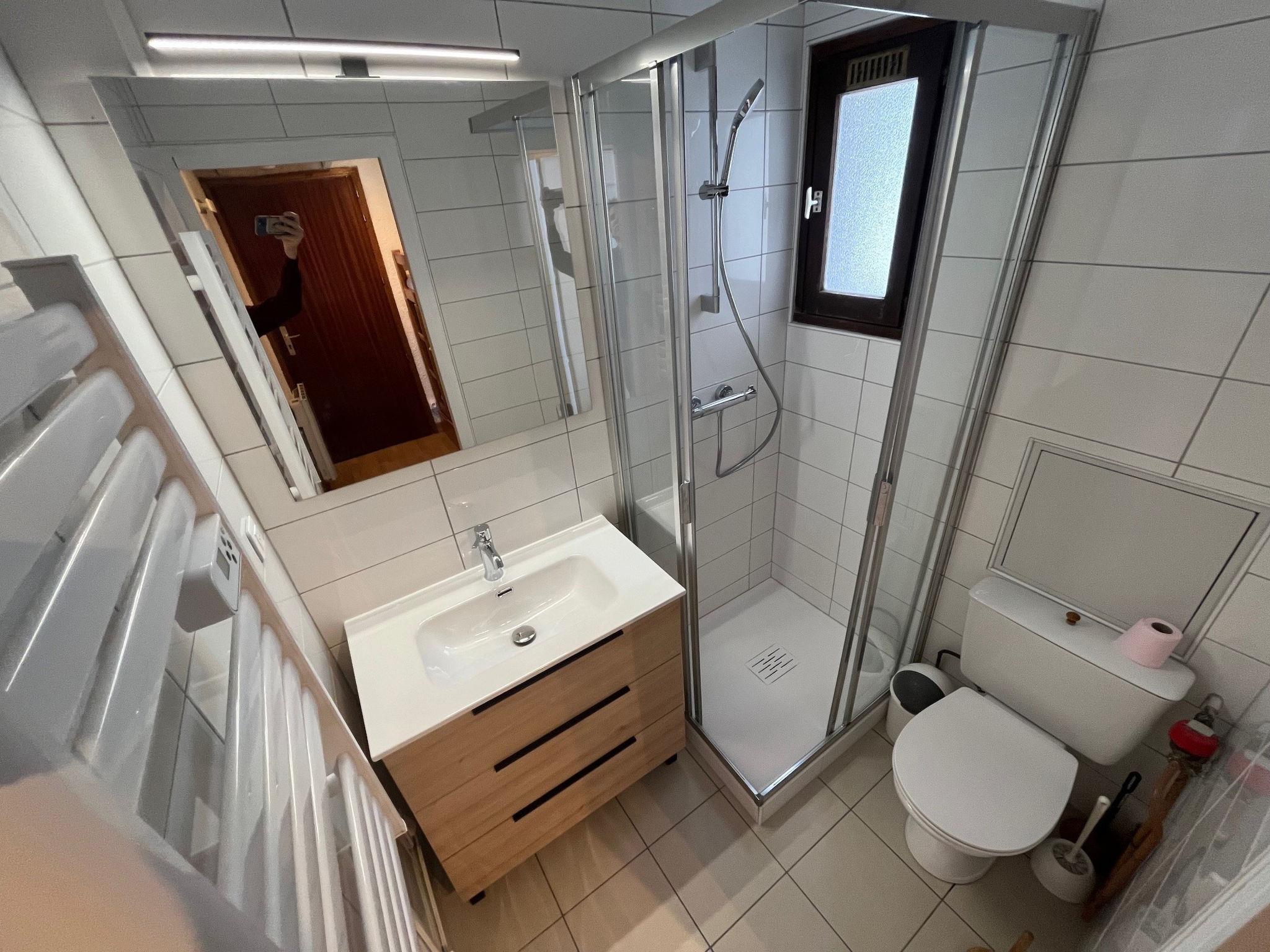 "St Christophe", 1-room studio 18 m2 on 2nd floor. Object suitable for 4 adults. Living room with 1 sofabed and 1 x 2 bunk beds, 1 pull-out bed and TV. Kitchen (2 hot plates, toaster, kettle, microwave, electric coffee machine). Shower/WC, sep. WC. Please note: non-smokers only. Offer by a commercial proprietor according to Art. 155, IV, CGI 38253003804AK