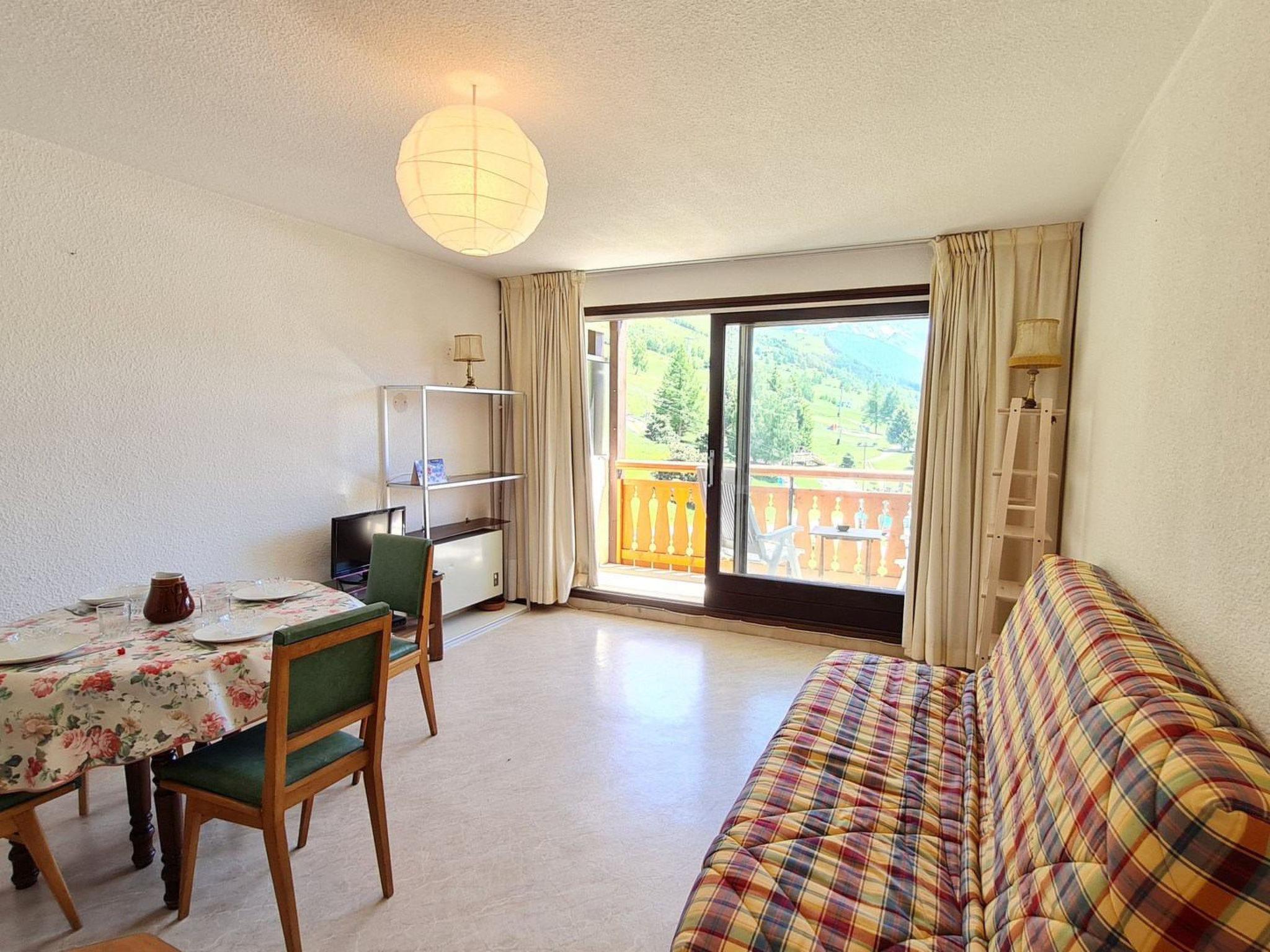 "Gioberney", 1-room studio 28 m2 on 3rd floor. Object suitable for 4 adults. Living room with 1 sofabed and 1 x 2 bunk beds, 1 pull-out bed and TV. Open kitchen (2 hot plates, oven, dishwasher, kettle, microwave, electric coffee machine). Bath/WC. Balcony. View of the mountains and the ski run. Please note: non-smokers only. Smoke alarm. Offer by a commercial proprietor according to Art. 155, IV, CGI 38253003806HT