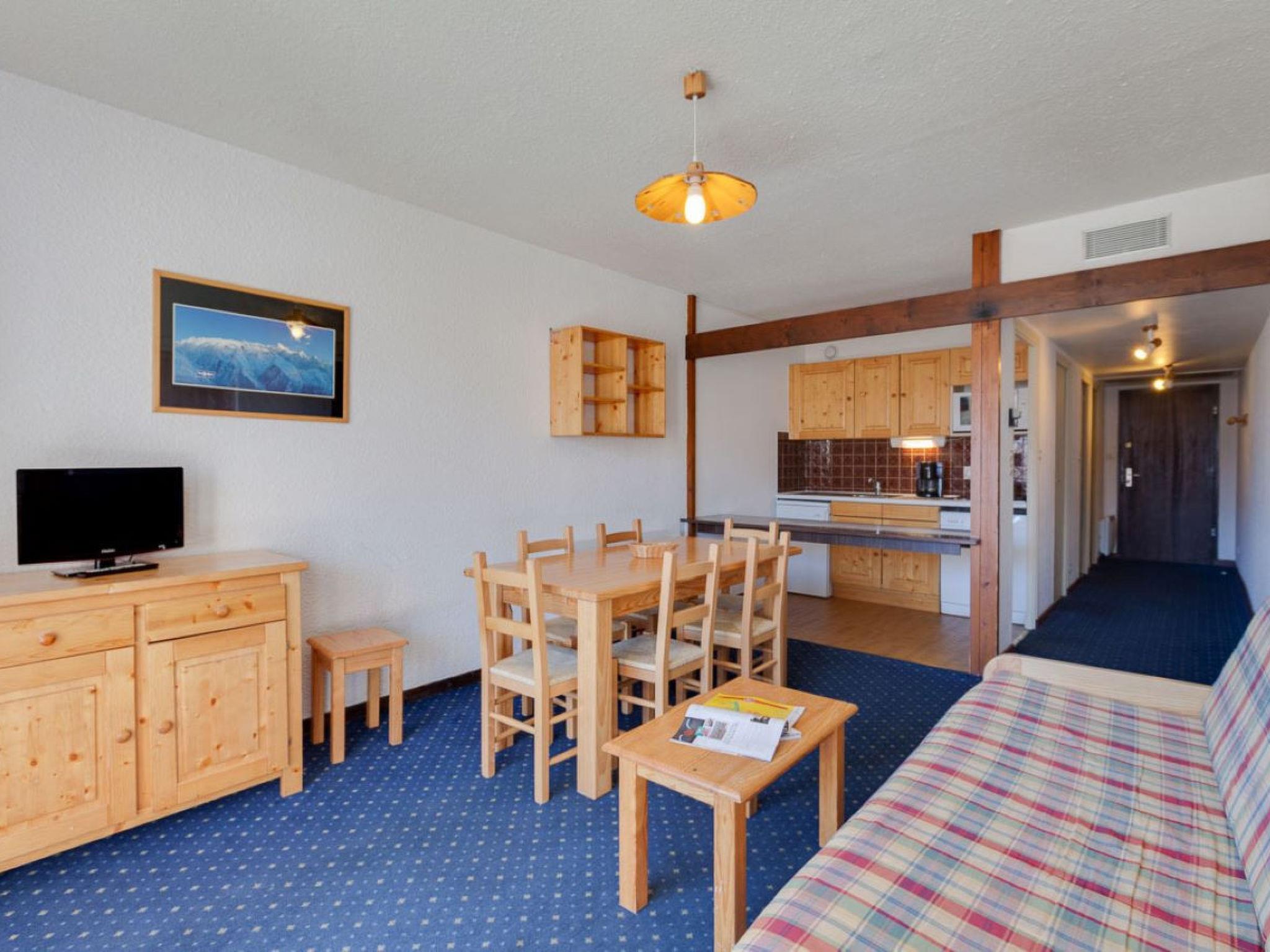 "Cabourg B", 3-room apartment 58 m2 on 2nd floor. Object suitable for 6 adults. 1 room with 2 beds and TV. 1 room with 1 double bed. Living room with 2 sofabeds. Open kitchen (4 hot plates, oven, dishwasher, electric coffee machine). Bath/WC. Balcony. View of the mountains and the ski run. Please note: non-smokers only. 1 pet/ dog allowed. Smoke alarm. Offer by a commercial proprietor according to Art. 155, IV, CGI 38253002959DP