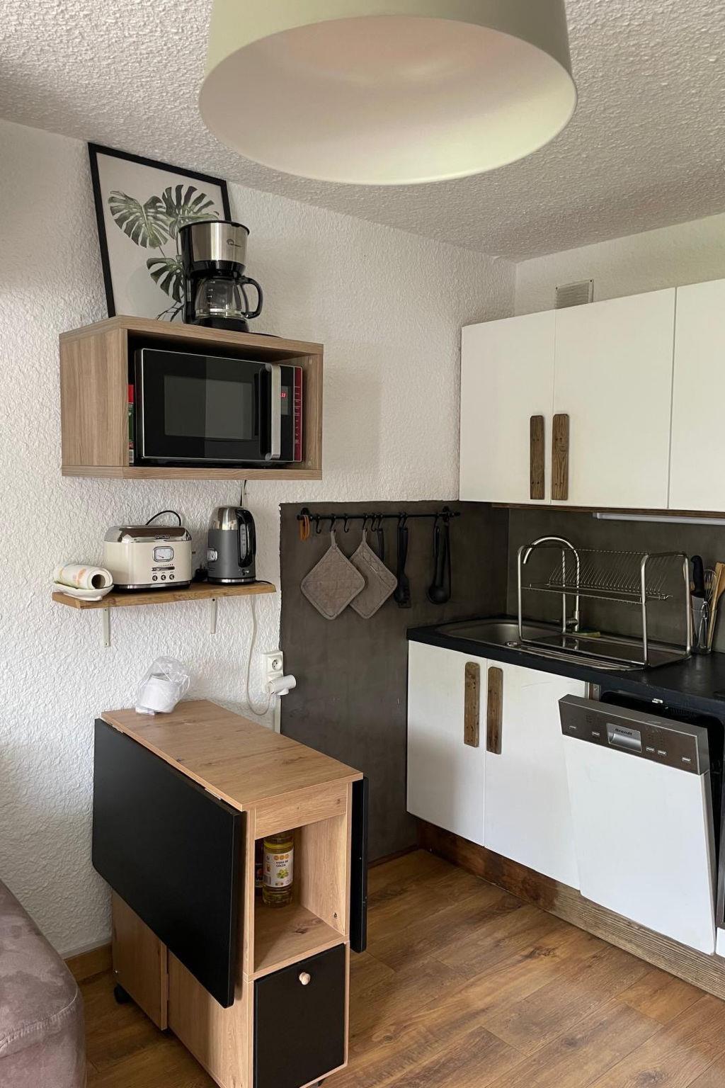 "Meijotel A", 1-room studio 35 m2 on 2nd floor. Object suitable for 4 adults. Living room with 1 sofabed, 1 double bed, 1 pull-out bed and TV. Kitchen (2 hot plates, oven, toaster, kettle, microwave, freezer, electric coffee machine). Bath/WC. Balcony. View of the mountains and the ski run. Facilities: washing machine. Please note: non-smokers only. Smoke alarm. Offer by a commercial proprietor according to Art. 155, IV, CGI 38253004310HT