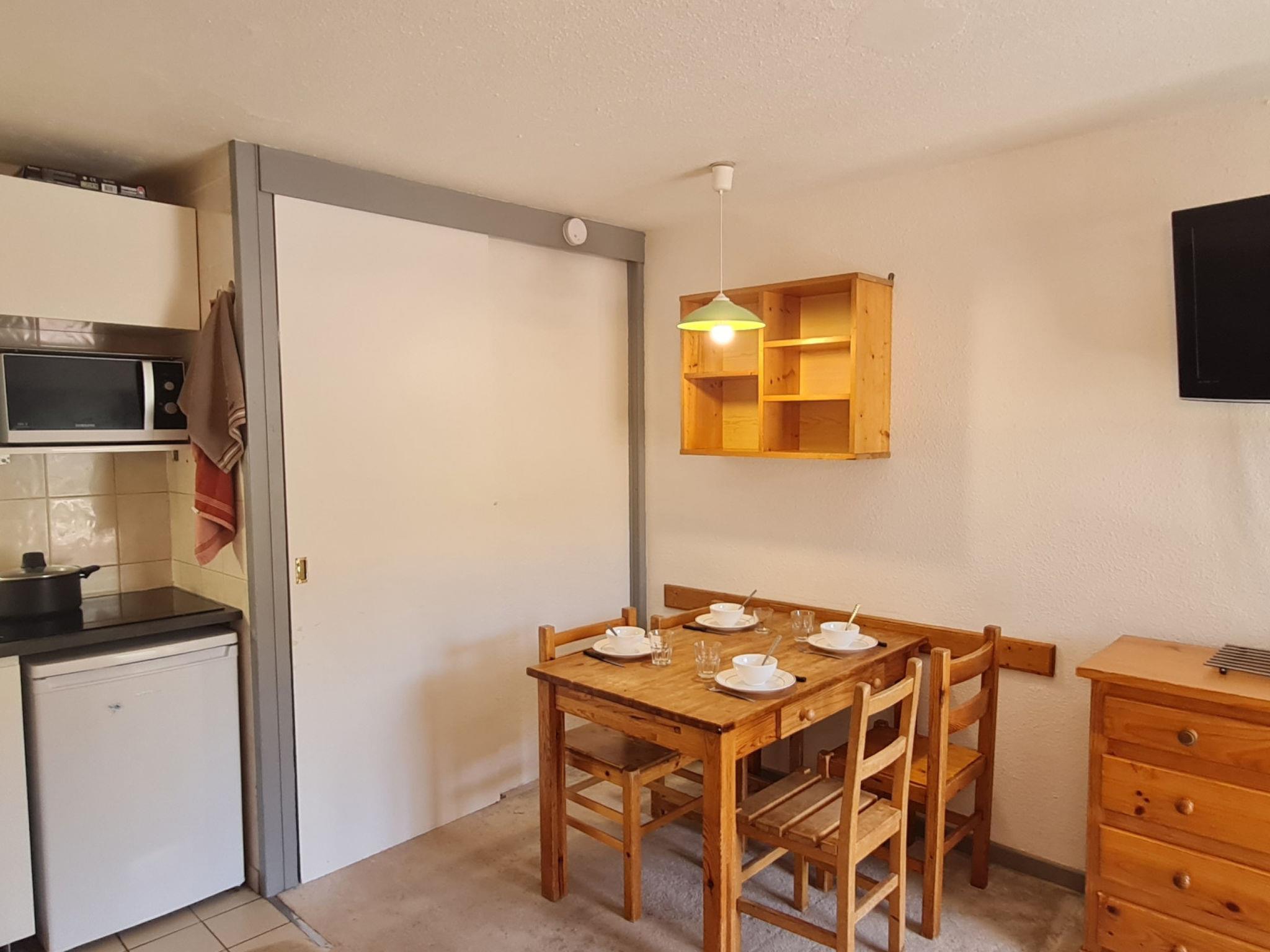 "Meije 7", 1-room studio 25 m2 on 1st floor. Object suitable for 4 adults. Living room with 1 sofabed and 1 x 2 bunk beds, 1 pull-out bed and TV. Open kitchen (2 hot plates, microwave). Shower/WC. Balcony. View of the mountains. Please note: non-smokers only. 1 pet/ dog allowed. Offer by a commercial proprietor according to Art. 155, IV, CGI 38253002619MX