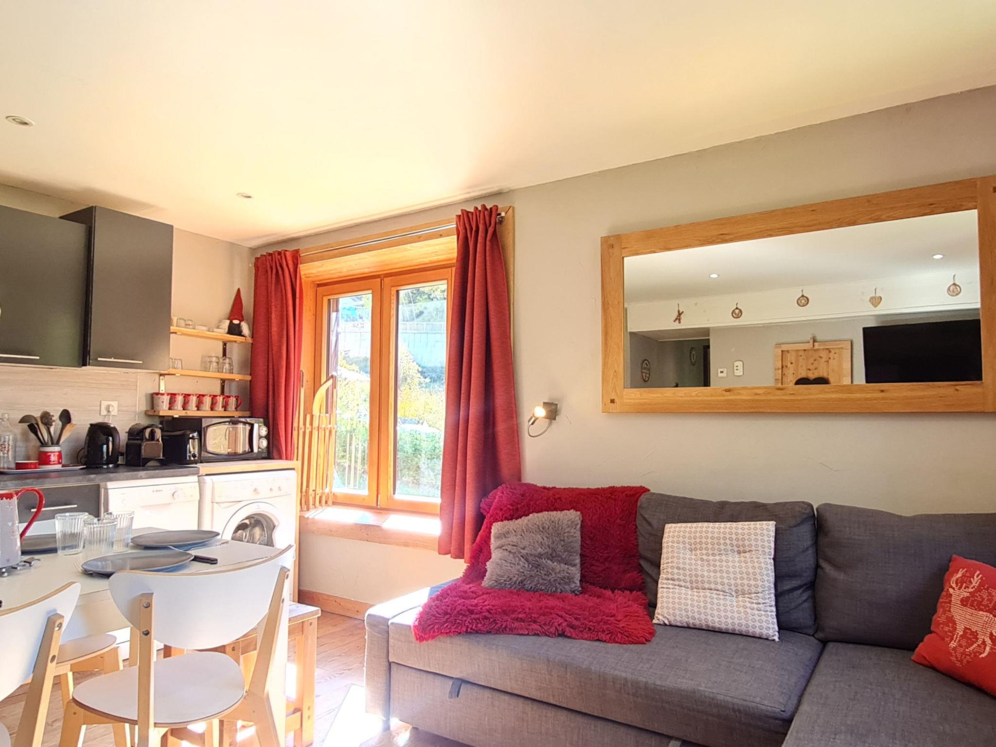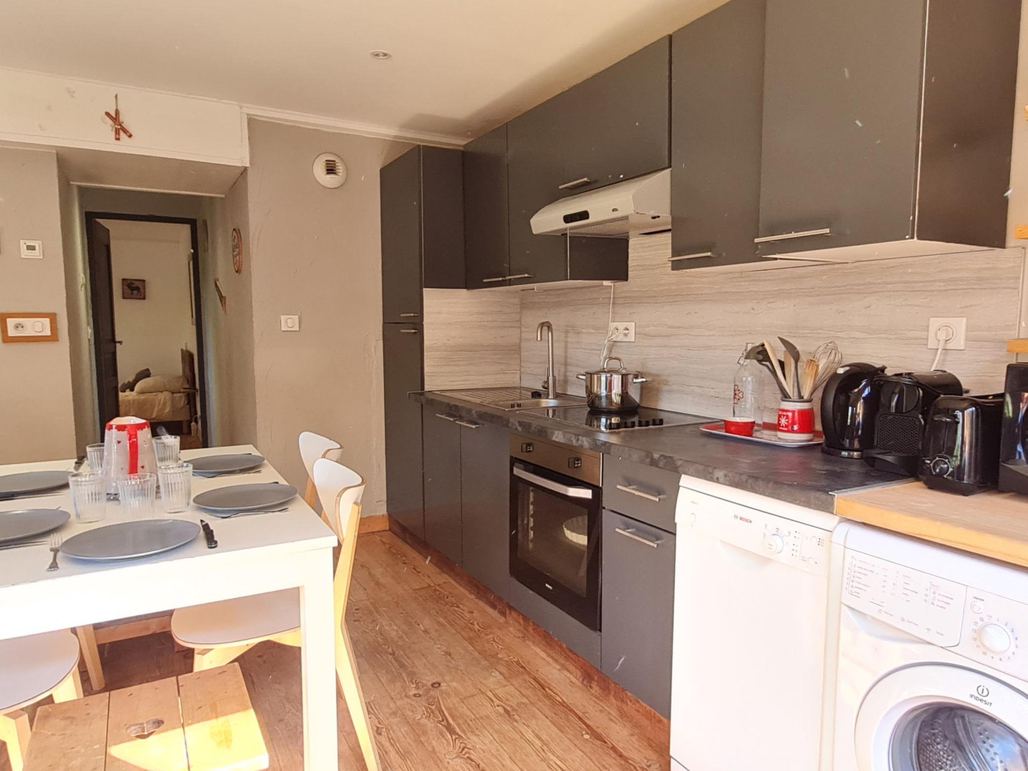 "Chalet Coop", 2-room apartment 40 m2 on 1st floor. Object suitable for 6 adults. 1 room with 1 x 2 bunk beds, 1 double bed and TV. Living room with 1 sofabed and 1 pull-out bed. Open kitchen (4 hot plates, oven, dishwasher, toaster, kettle, microwave, freezer, electric coffee machine). Shower/WC. Balcony. View of the mountains and the ski run. Facilities: washing machine. Please note: non-smokers only. 1 pet/ dog allowed. Offer by a commercial proprietor according to Art. 155, IV, CGI 38253003106SB